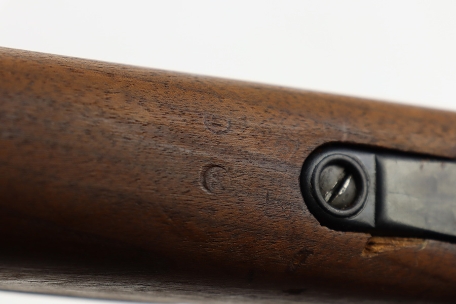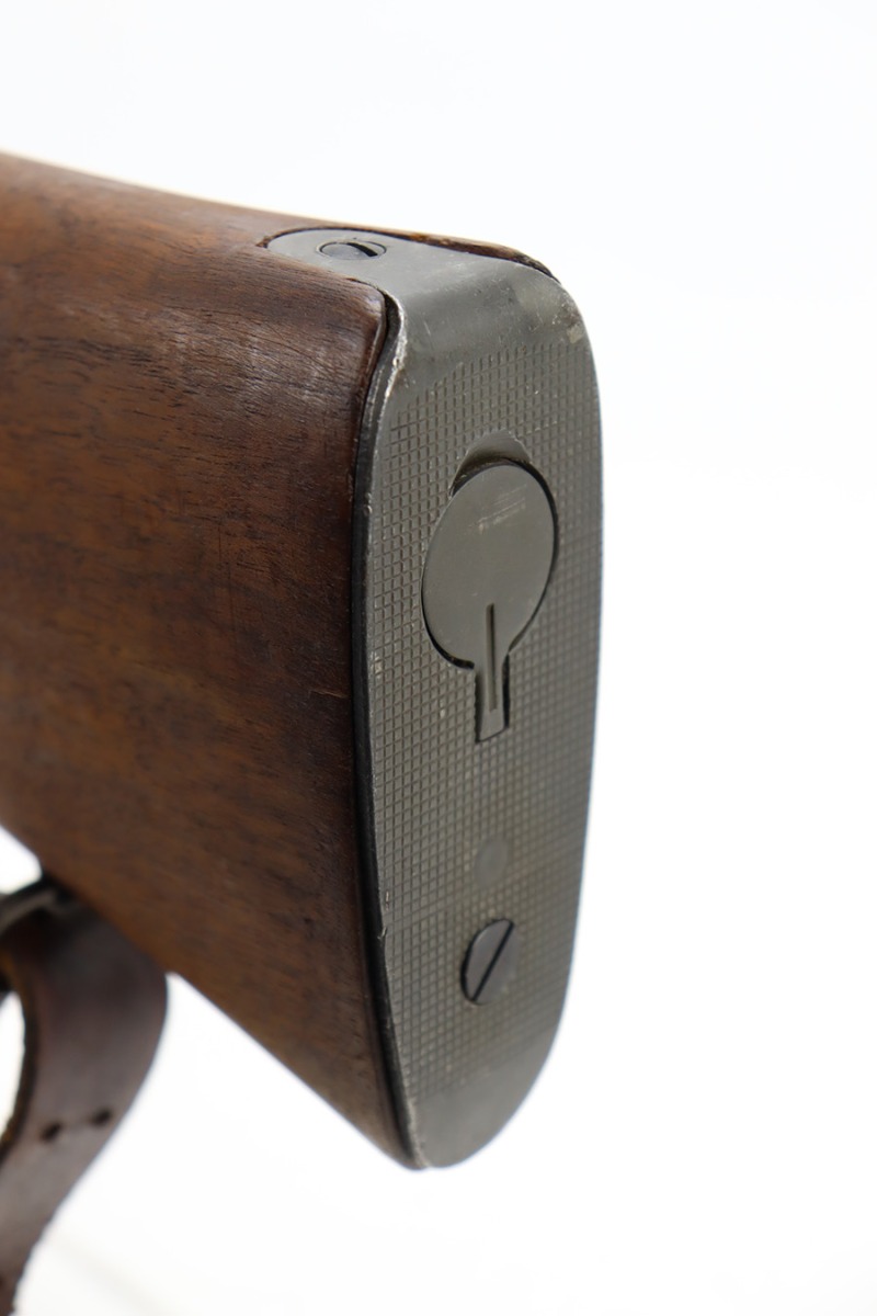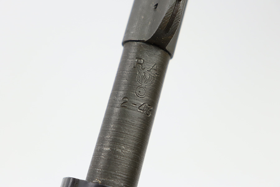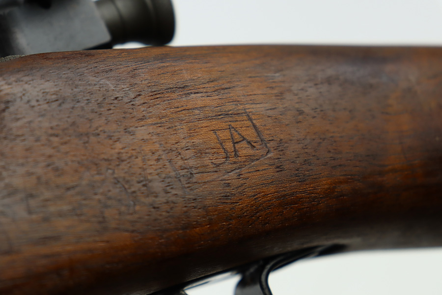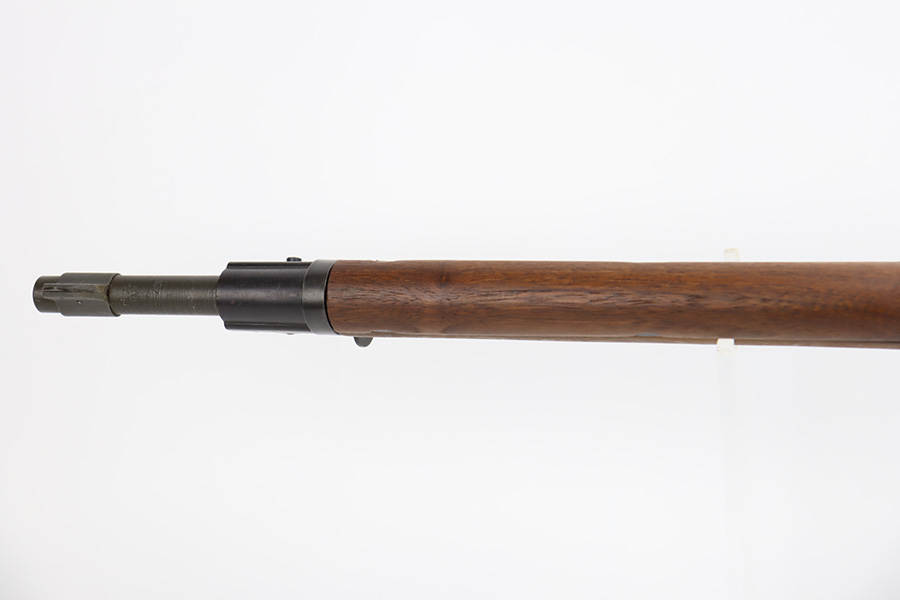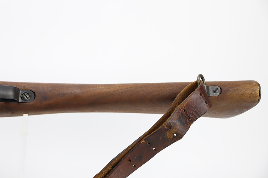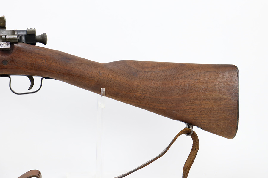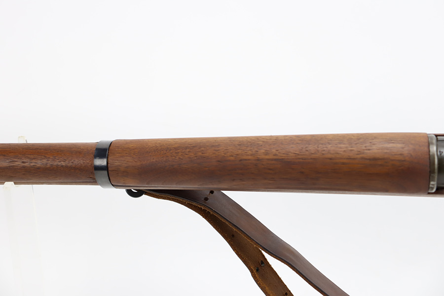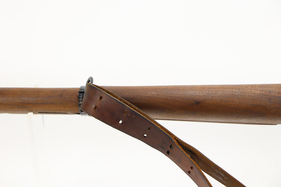 12/4/23 – This is a fantastic example of a US Model 1903a3 made by Remington Arms during World War 2. The Model 1903a3 is an update to the 1903 rifles used during WW1 and is simplified for manufacturing with stamped parts. The rifle retains the majority of its finish and has no blemishes to note. The bore is very bright with some frosting in the bore. The rear barrel band looks to be a replacement as it’s a polished blue and does not match with the rest of the rifle. The stock has a “FJA” inspection stamp on the left side. There is some finish wear on the bore. The bayonet lug has surface rust around it which can be cleaned up. The rifle comes with a brown leather sling.