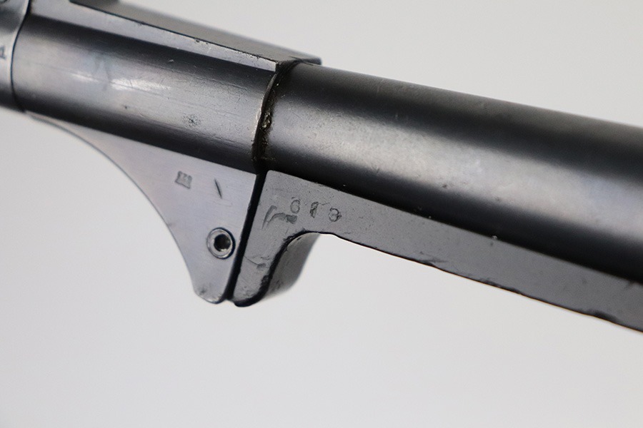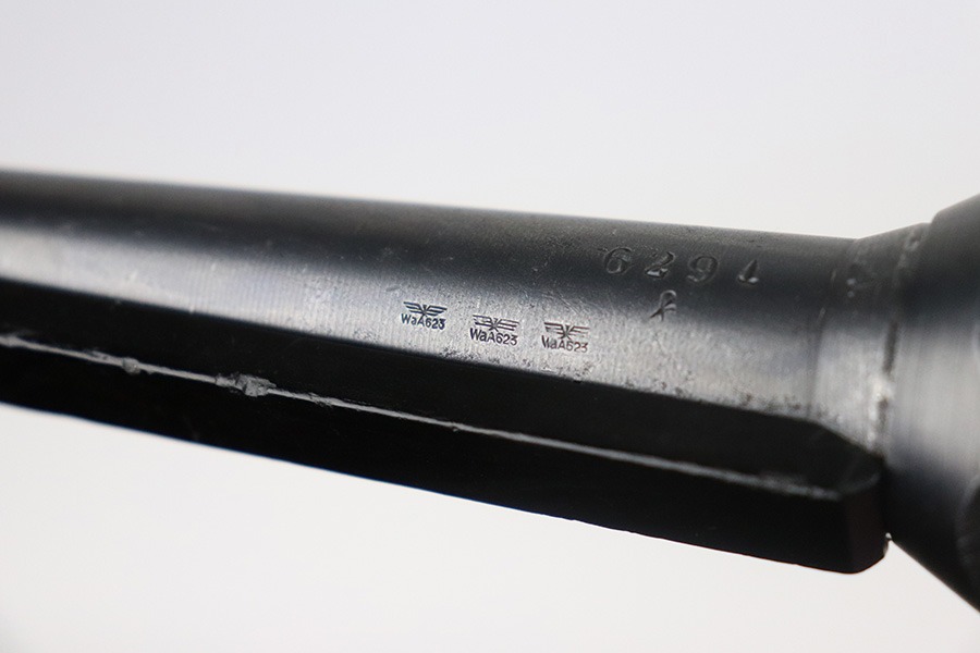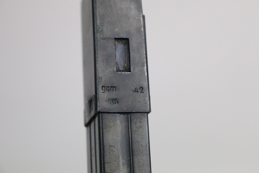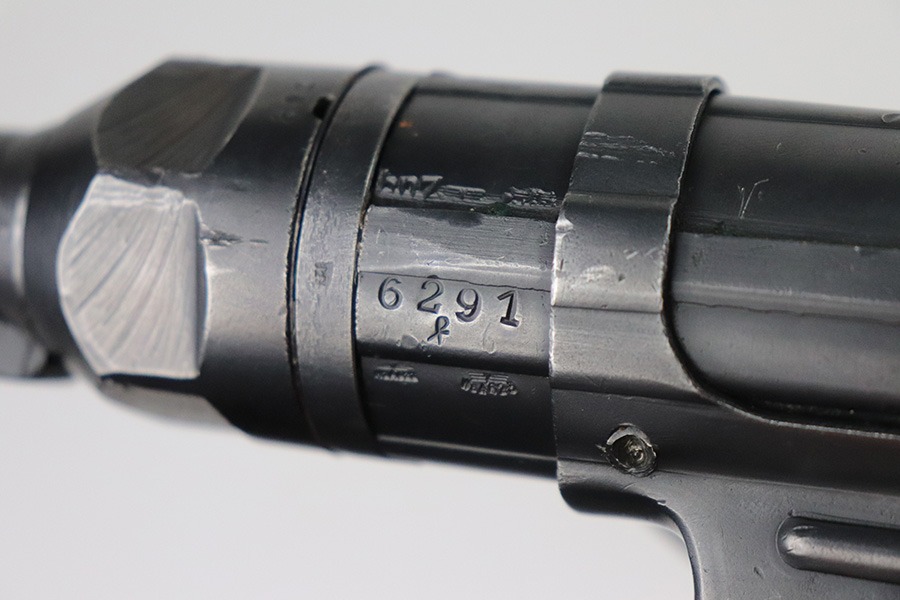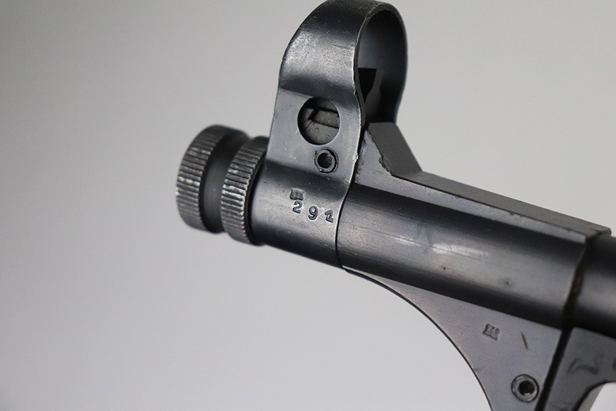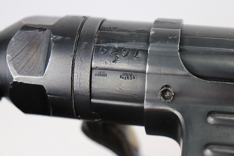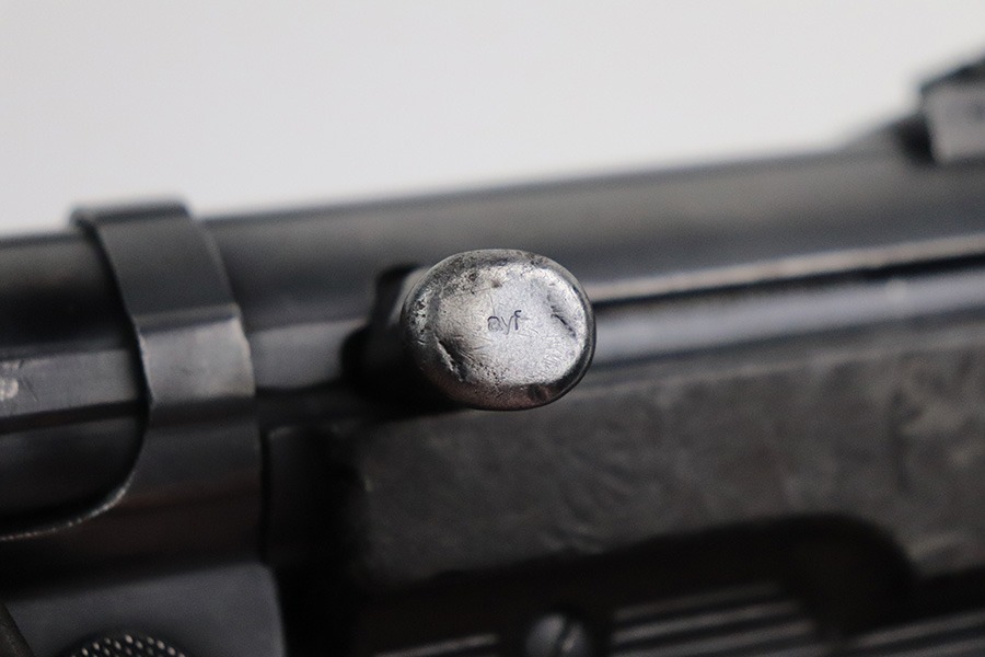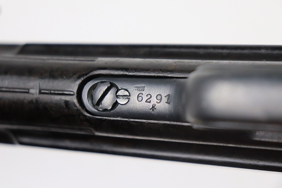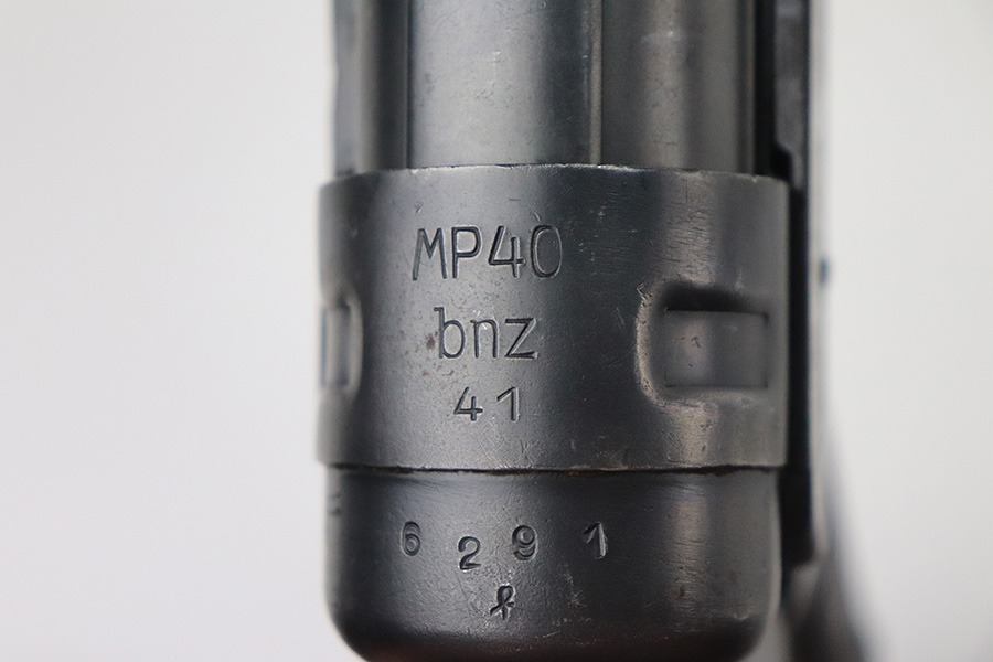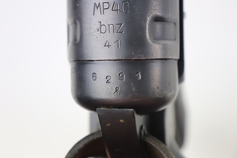 11/7/24 – This is the finest example we’ve seen of the iconic MP40 submachine gun, as made by Steyr in 1941. The MP-40 was the successor to the MP-38 model. Both were intended to be compact bust fire power weapons especially suited for dismounted vehicle troops but was issued in ever increasing numbers to troops of all kinds. It is slow firing, comfortable to shoot, durable, with readily available parts. This particular example is all matching numbers throughout except for the barrel rest. The original finish is excellent, with minimal bluing loss overall and just a couple minor areas of pitting. WaA623 proofs found all over this one. Shoulder stock employs properly and quite tight when extended. Strong, shiny bore with only minor signs of use. Includes original sling. Receiver is ’41 dated with ‘bnz’ maker code. Listing includes a total of FOUR magazines. This weapon is fully transferable on ATF form 3 or form 4 as C&R eligible.
