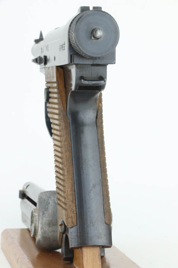 07/24/2024 – For sale is an Excellent Type 14 Nambu rig with 2 matching magazines. the overall condition of the pistol is near mint but there is some oxidation on the rear of the grip, and edge wear around the frame and slide. The bore is excellent and very bright. The pistol is nearly all matching except for the firing pin extension. The grips have the initials “PH” scratched into both panels on the inside. The rubberized canvas holster is in great condition with some fraying on some of the stitching but nothing major. The right has the shoulder strap and is also in good condition. The holster comes with a spare (mismatched) firing pin and a cleaning rod.