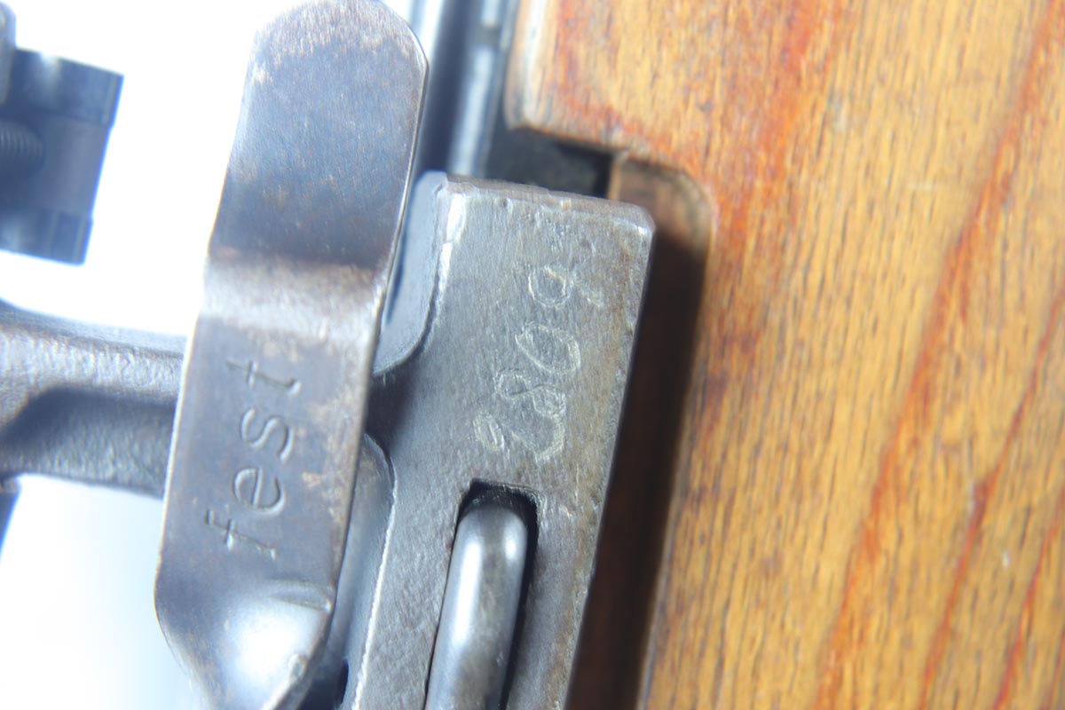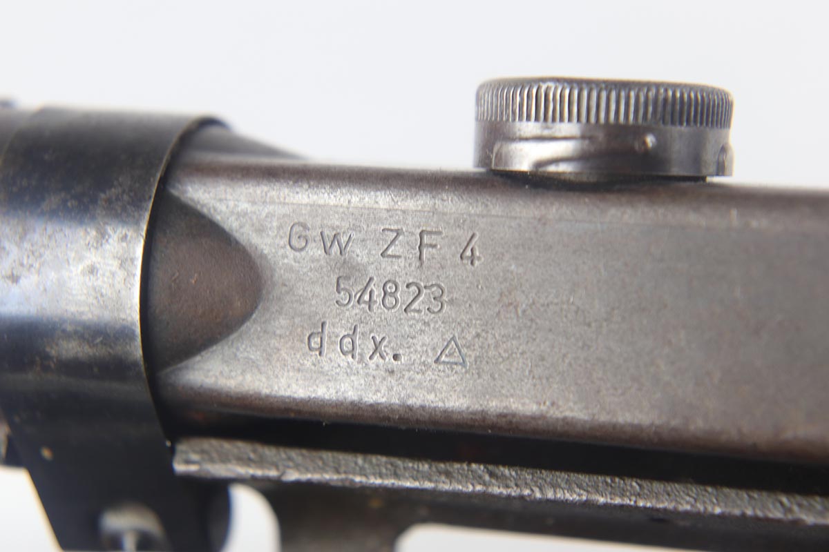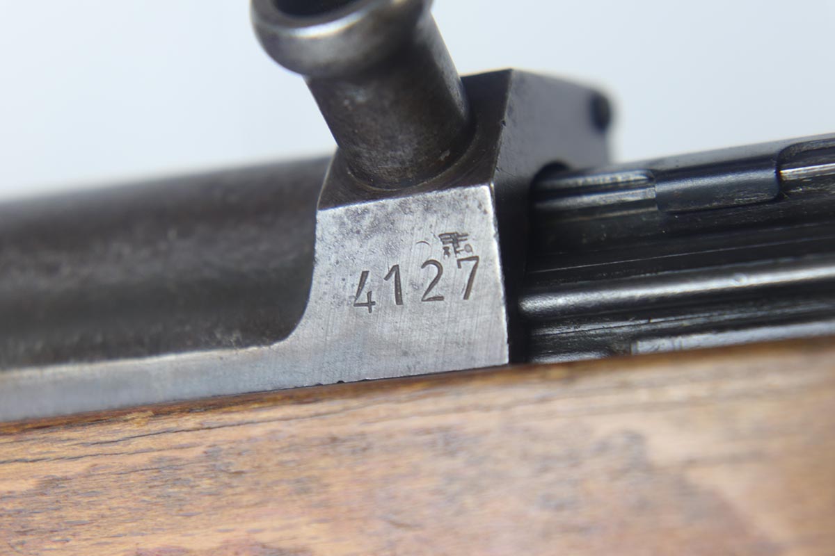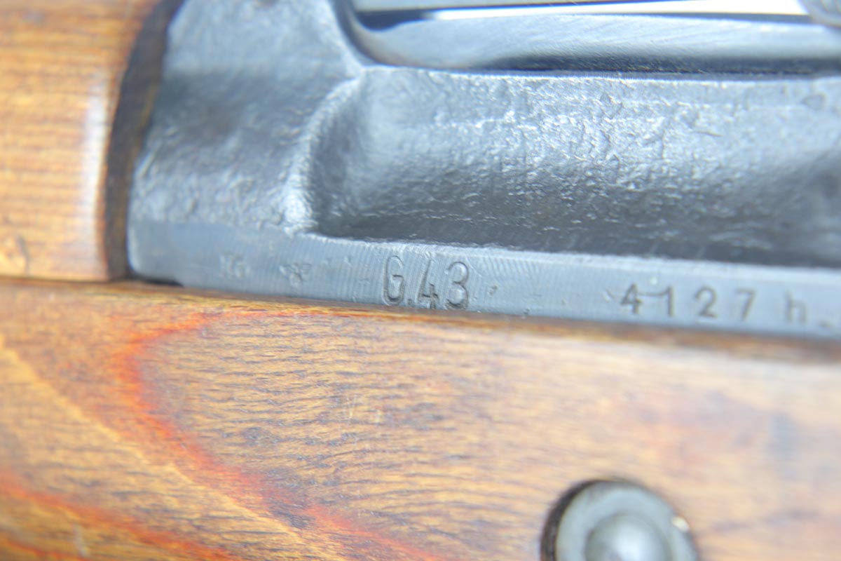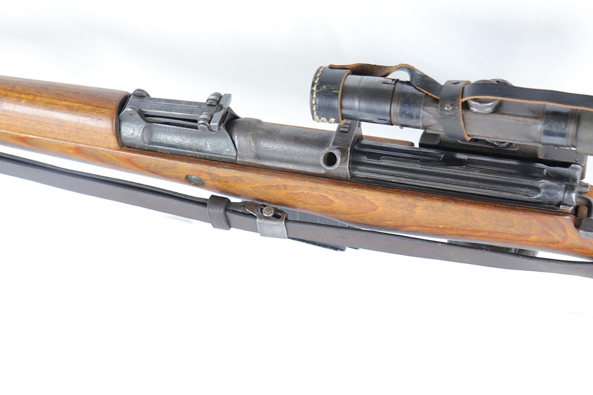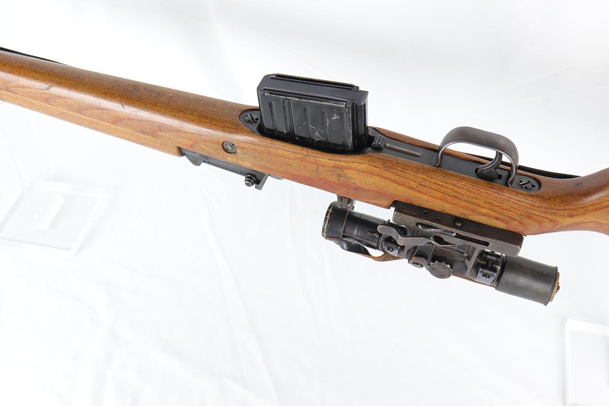 9/18/18 – This is a terrific Walther G43 sniper rifle, marked ac 44 on the receiver. All numbered parts are matching, including the stock. The rifle is all original and correct, with multiple proper waffen proofs on the stock, receiver and scope mount. Rifle has proper cleaning rod and site hood present. Original magazine is K43 marked with maker ‘aye’ and WaA843 markings on left side. The mount is original and has Walther WaA359 proofs. Scope is WW2 original, with excellent optics. Marked GW ZF 4, then ddx. Lens cap covers included. The stock is in fantastic original condition no major cracks or chips, and has never been sanded. The bore has strong rifling with only minor frosting. The butt stock includes the original manual and a couple small parts. This is one of the nicest Gewehr 43s we’ve ever come across!