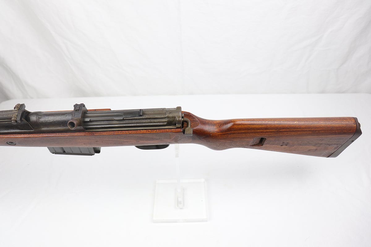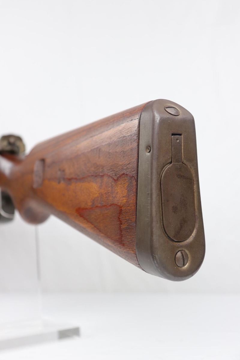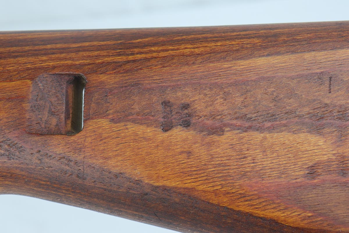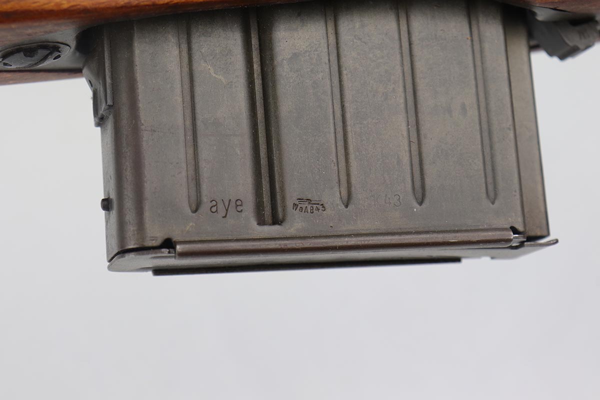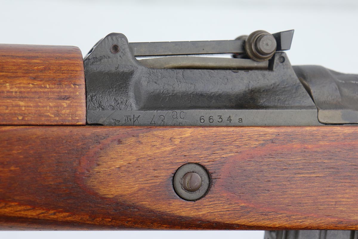 4/9/19 – This is one of the finest examples we’ve ever offered of an all matching and original Walther K43, made in 1945. This is a particularly interesting example as many parts feature a phosphate finish, and the rifle overall shows very little wear. Fantastic stock with multiple sharp waffenamts. Only very minor dings, no cracks or chips. Mint bore, hardly looks fired. Magazine is ‘aye’ maker marked, with WaA843 proof. Original sight hood and cleaning rod.