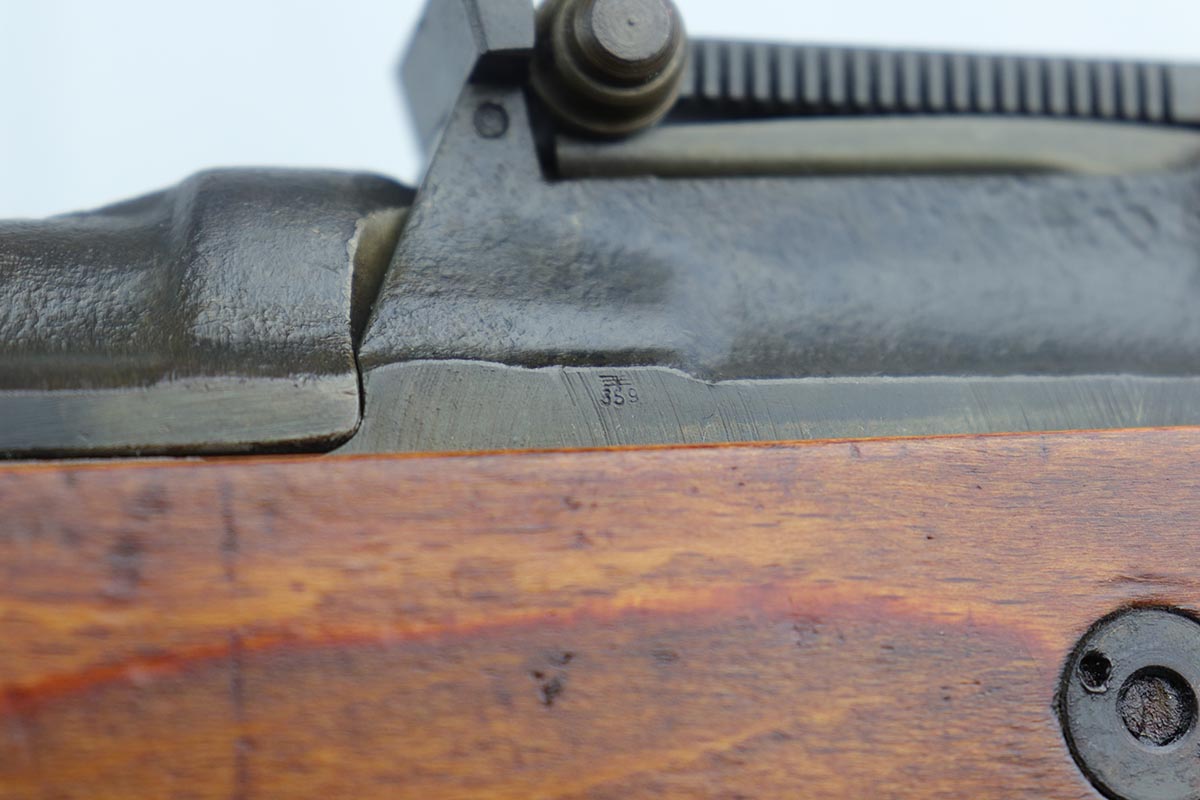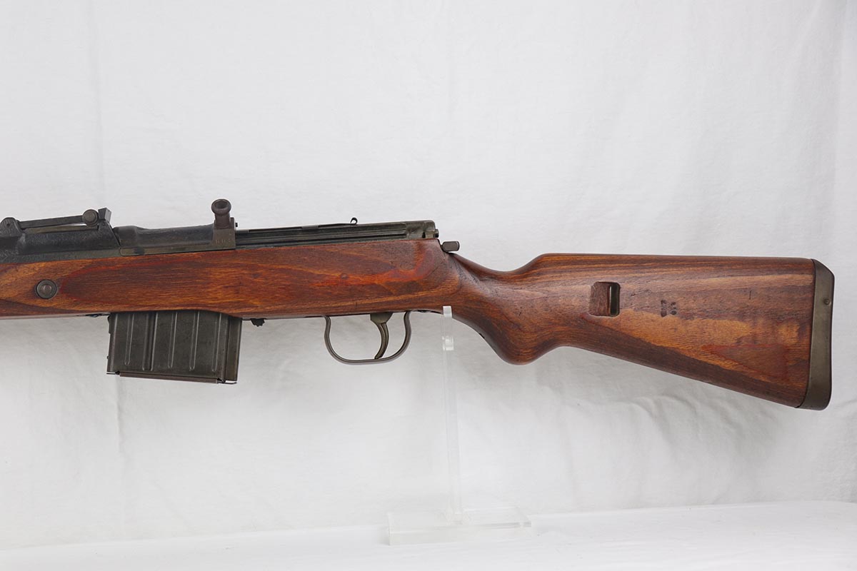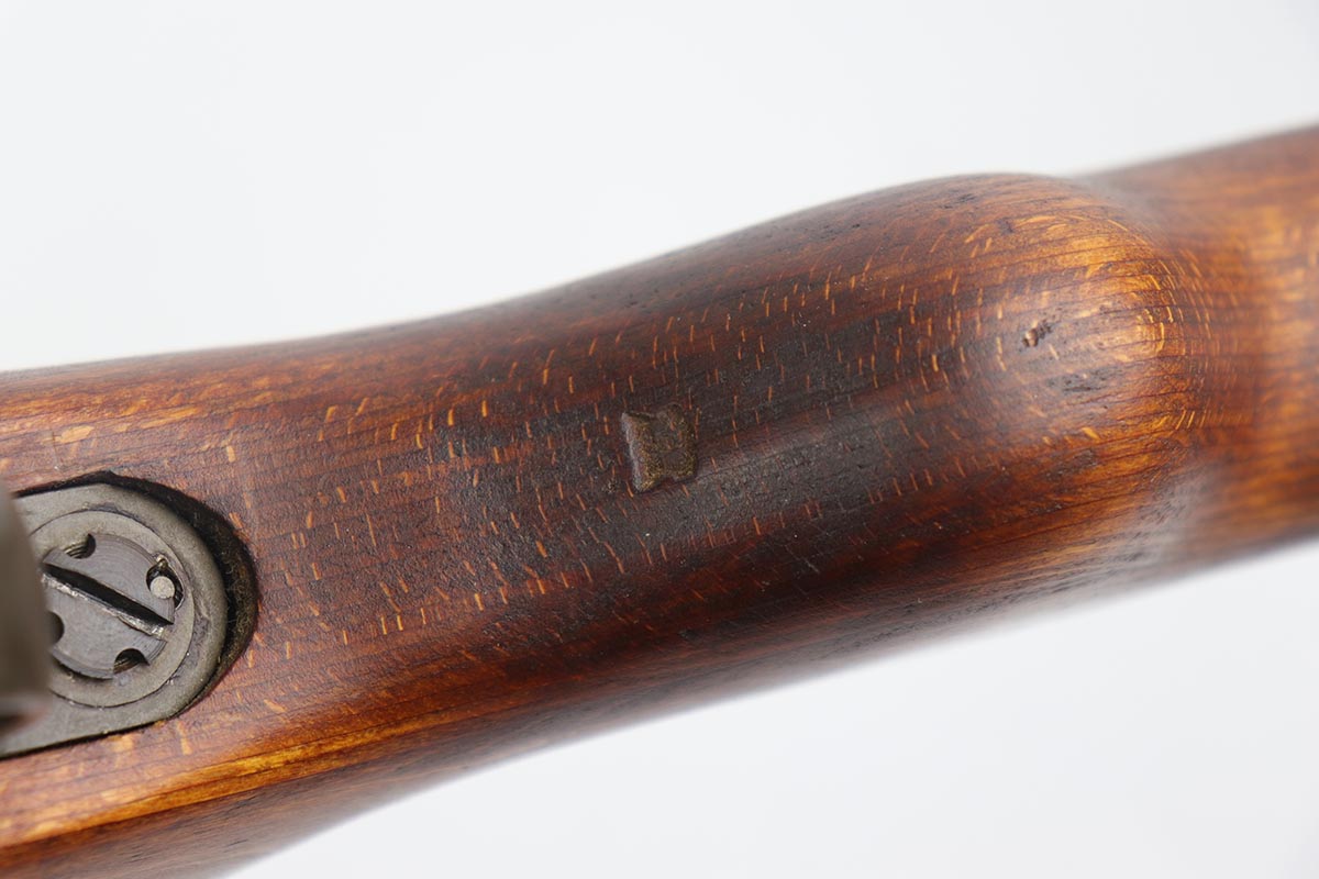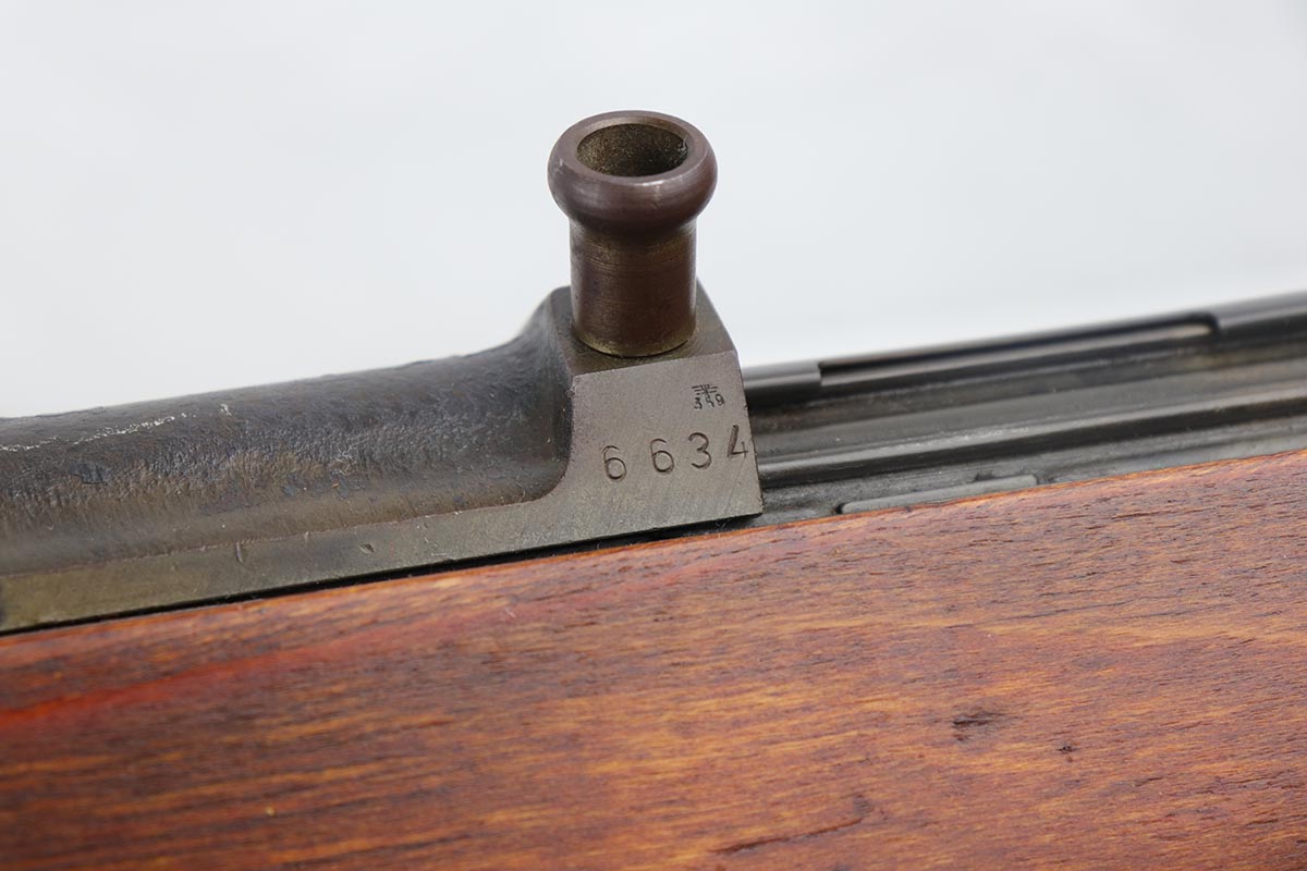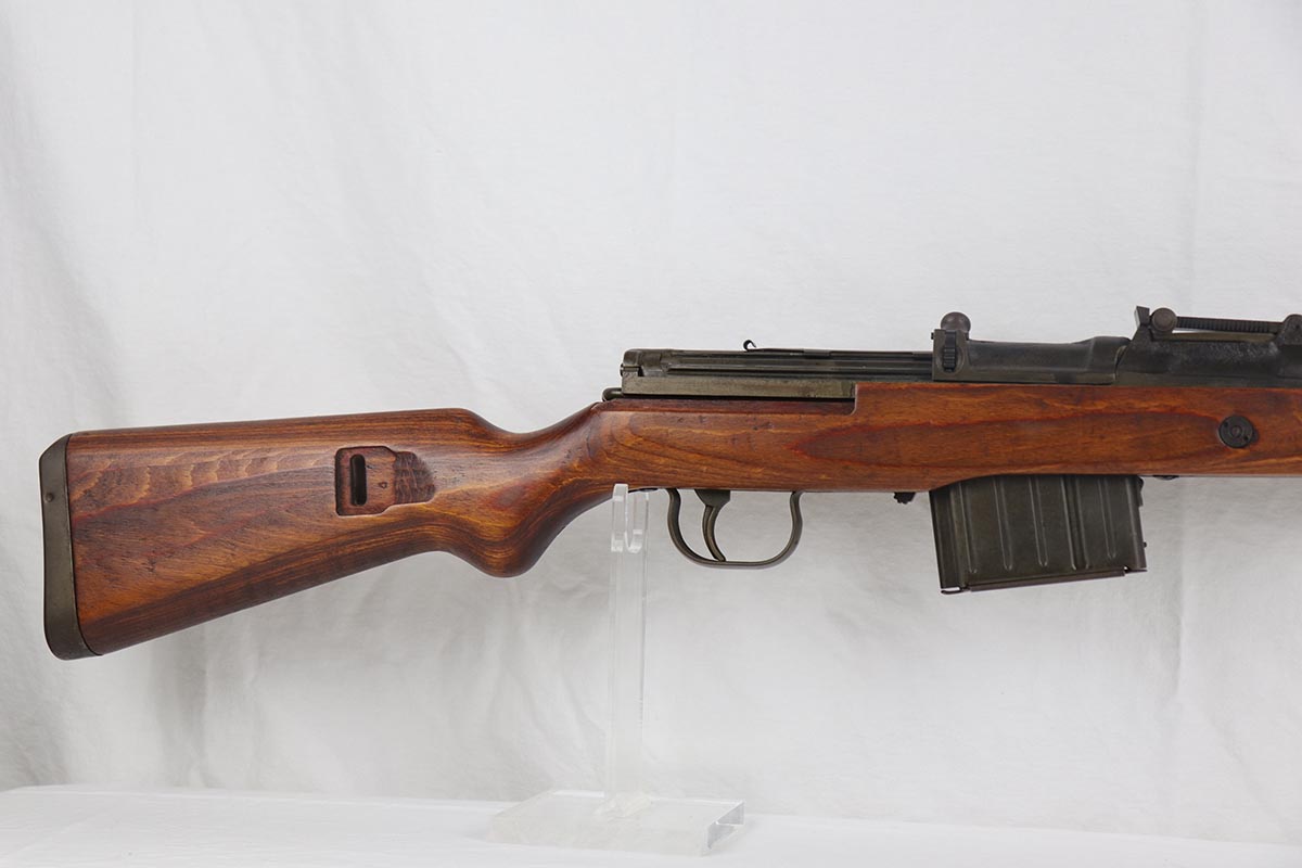 4/9/19 – This is one of the finest examples we’ve ever offered of an all matching and original Walther K43, made in 1945. This is a particularly interesting example as many parts feature a phosphate finish, and the rifle overall shows very little wear. Fantastic stock with multiple sharp waffenamts. Only very minor dings, no cracks or chips. Mint bore, hardly looks fired. Magazine is ‘aye’ maker marked, with WaA843 proof. Original sight hood and cleaning rod.