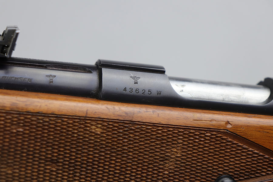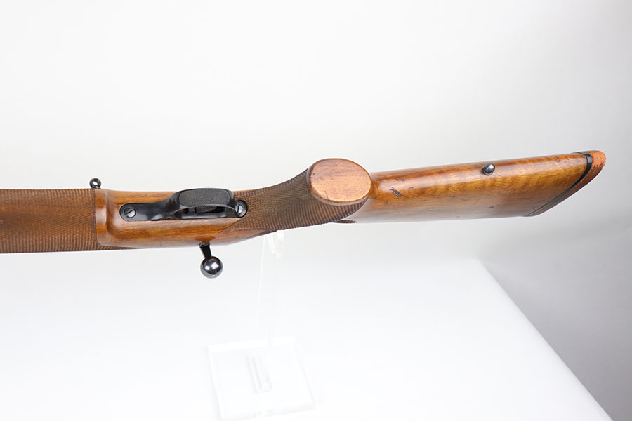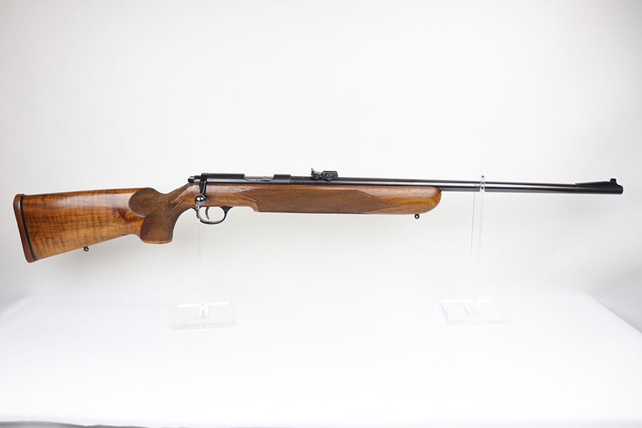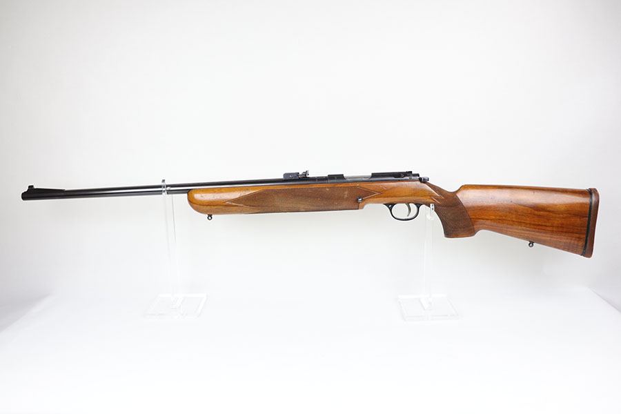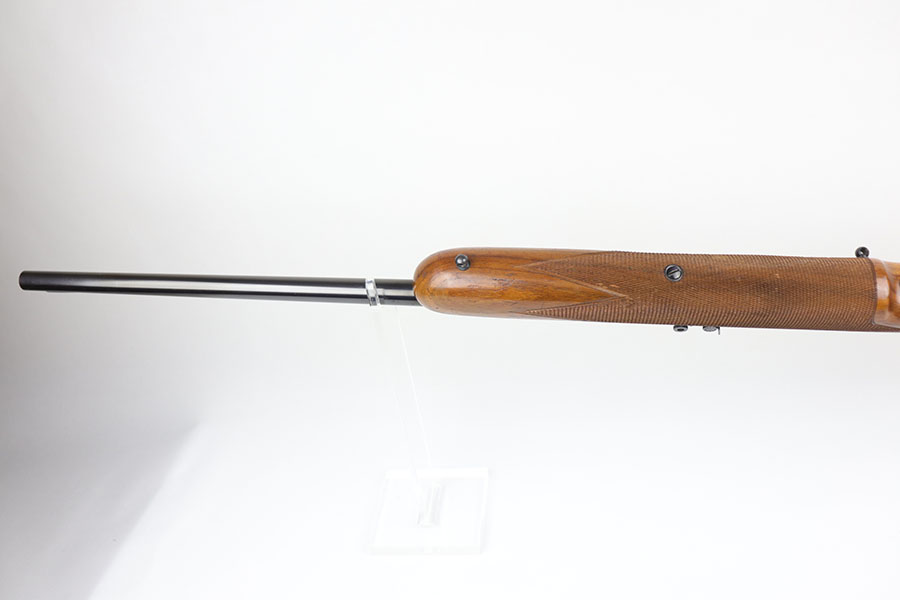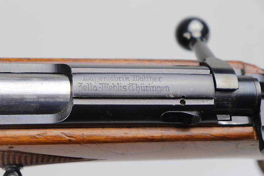 5/8/20 – This is a near-mint Walther Sportmodell Meisterbuchse target rifle that was made during the Nazi era, likely around 1940, as indicated by the Eagle/N proofs. It has hardly any finish loss, just a hint of muzzle wear and a thin mark from the sight being moved. Mint bore. Terrific checkered stock with just a few dings. The butt pad does show a bit of wear at the corners. All original.