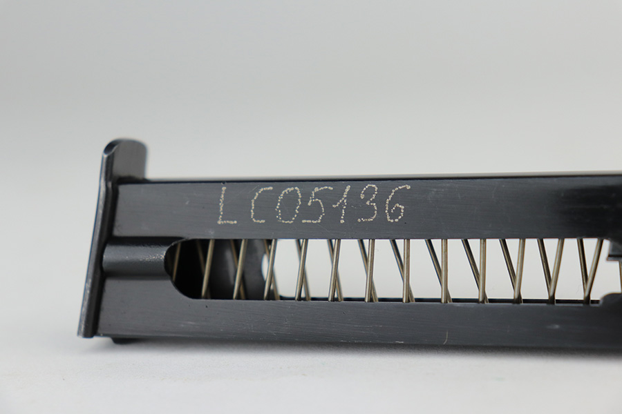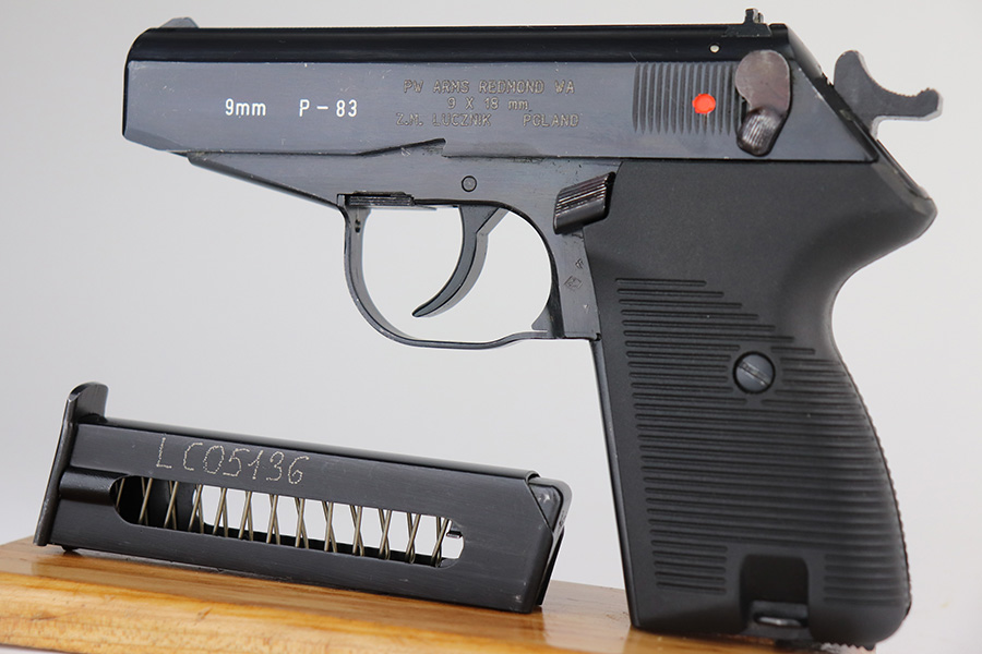 5/7/21 – The FB Radom P-83 Wanad succeeded the P-64 as the sidearm for the Polish Army and police. This one is in near-mint condition, with just a hint of wear on the right side of the slide. Slide is 1986 dated. Matching numbers throughout. Minty bore. The military/police variation is partly distinguished by the hammer design. Import mark on slide.