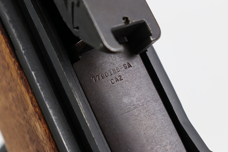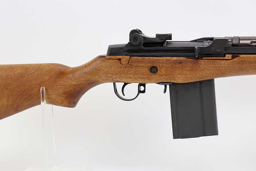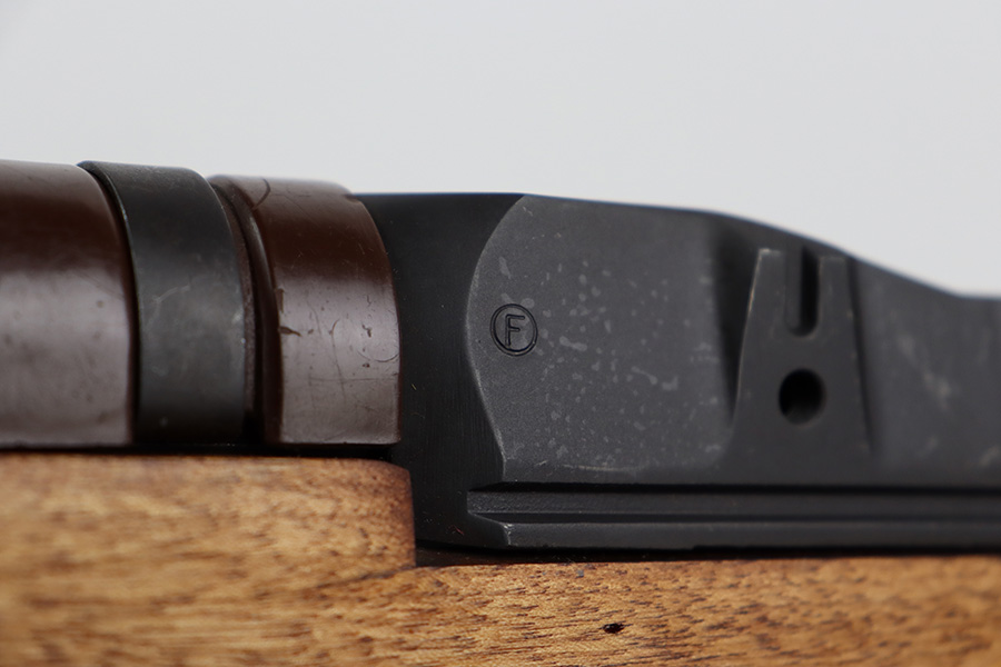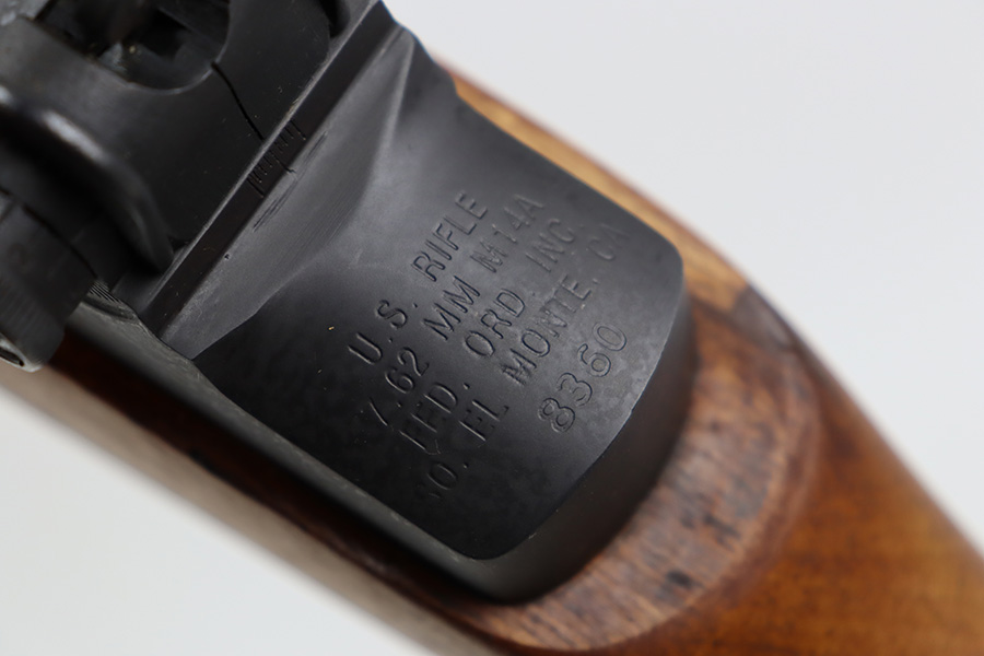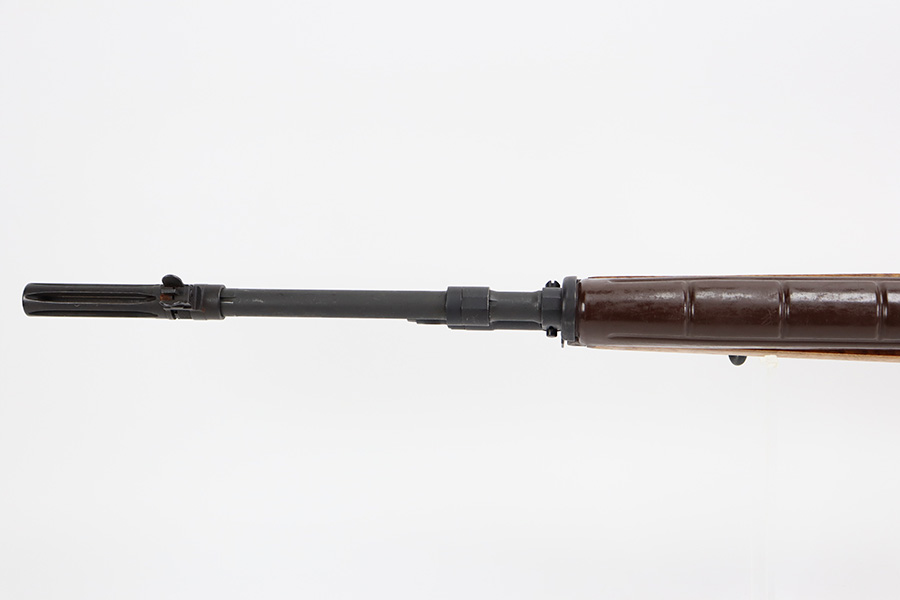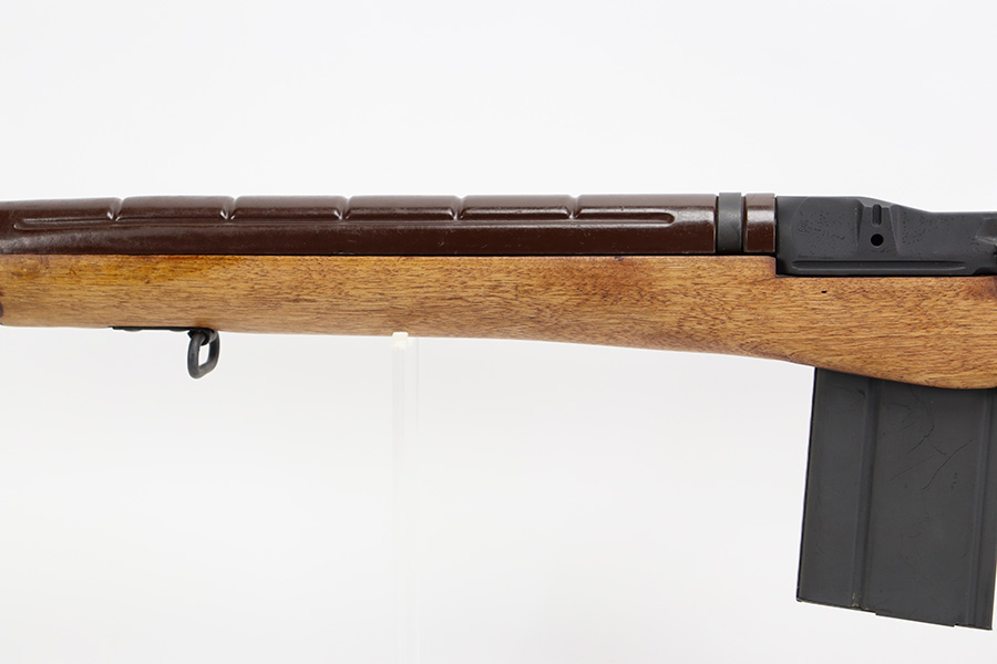 7/26/23 – This is a near-mint example of a Fed Ord M14A. It is assembled using a Fed Ord receiver and mixture of new and refurbished government parts. It comes with one magazine, test fire casing, and its original Fed Ord hang tag. The metal parts have retained virtually all of their finish with just some very light scuffs here and there. Minty wood stock, but there are a couple of repaired chips in the wood near the right side of the receiver. The upper handguard fits a bit loosely. Mint bore.