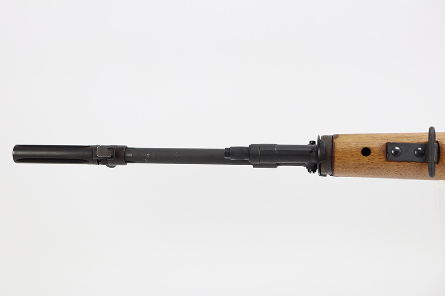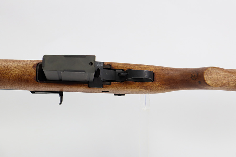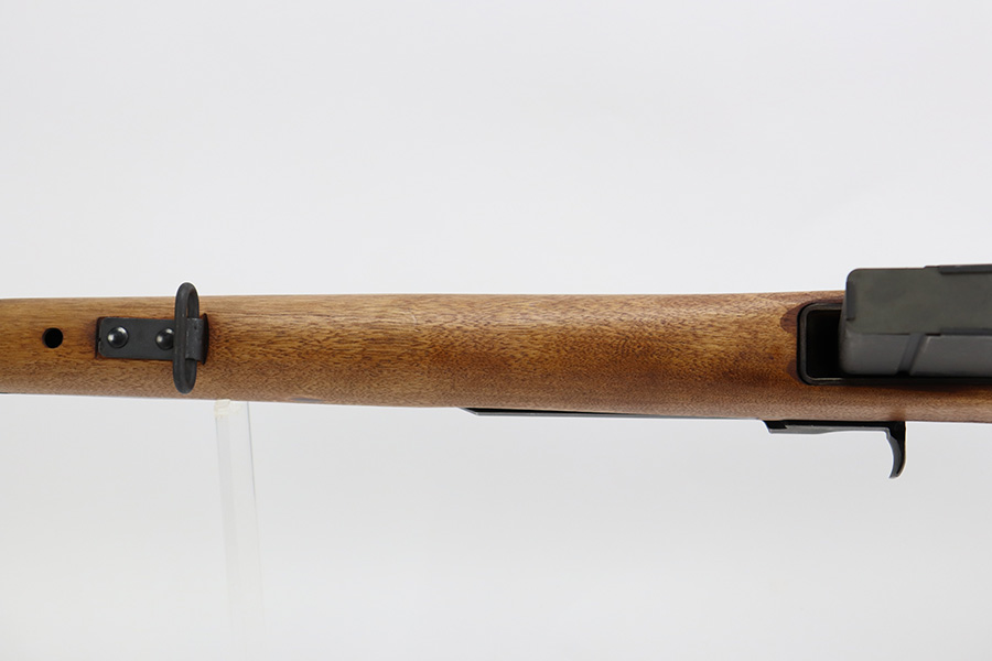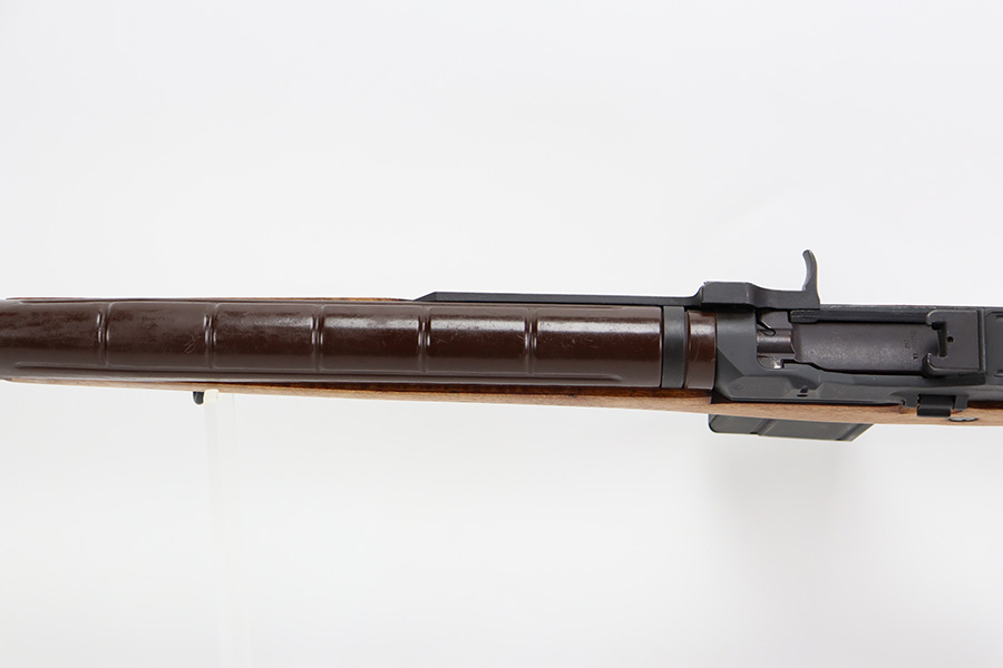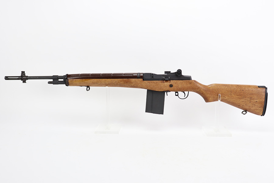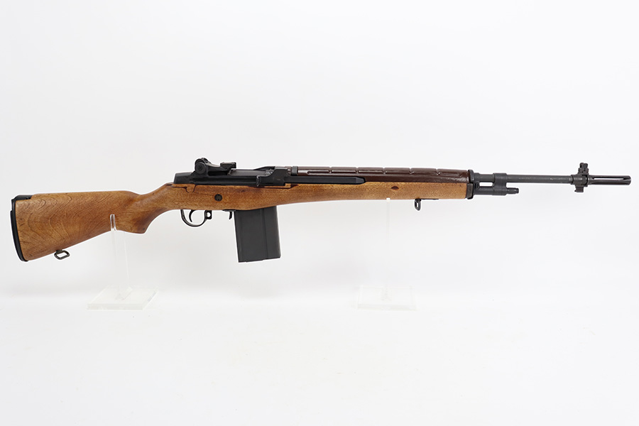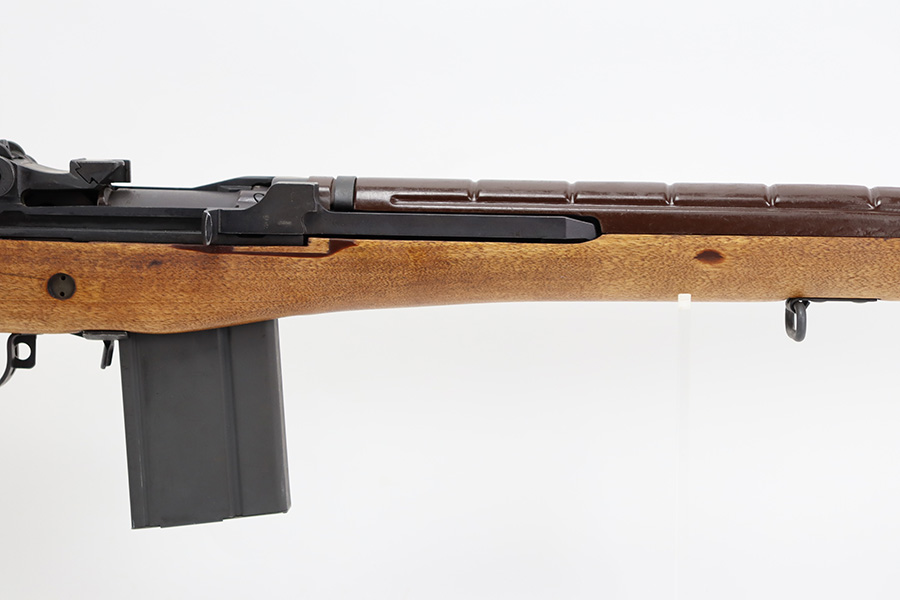 7/26/23 – This is a near-mint example of a Fed Ord M14A. It is assembled using a Fed Ord receiver and mixture of new and refurbished government parts. It comes with one magazine, test fire casing, and its original Fed Ord hang tag. The metal parts have retained virtually all of their finish with just some very light scuffs here and there. Minty wood stock, but there are a couple of repaired chips in the wood near the right side of the receiver. The upper handguard fits a bit loosely. Mint bore.