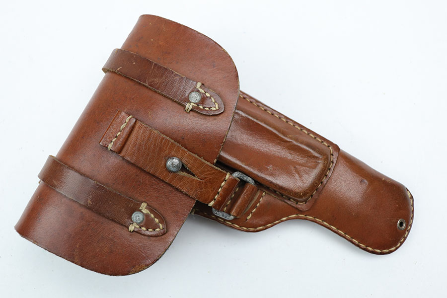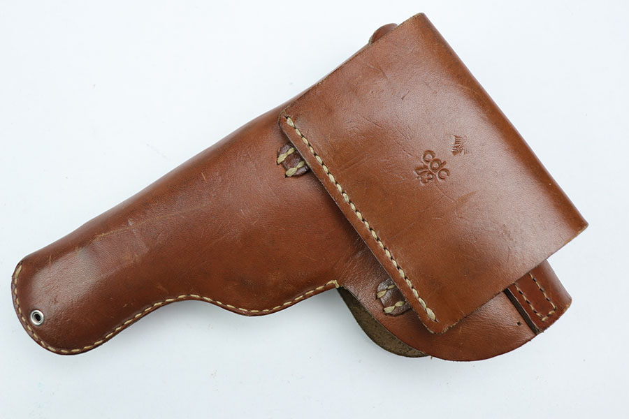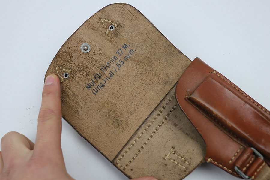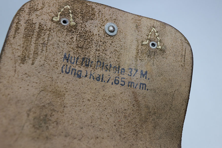 1/18/21 – This is an original Femaru model 37 Holster from WW2. The back leather is maker stamped, droop eagle/7 proof stamped, and date coded “43”. The leather is extremely clean and excellent. Clean interior leather that has an ink stamp to indicate for pistol “37 M” which is the Femaru pistol. No stitching issues. Overall a beautiful holster.