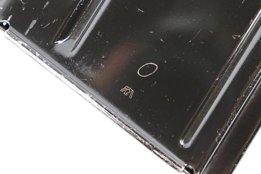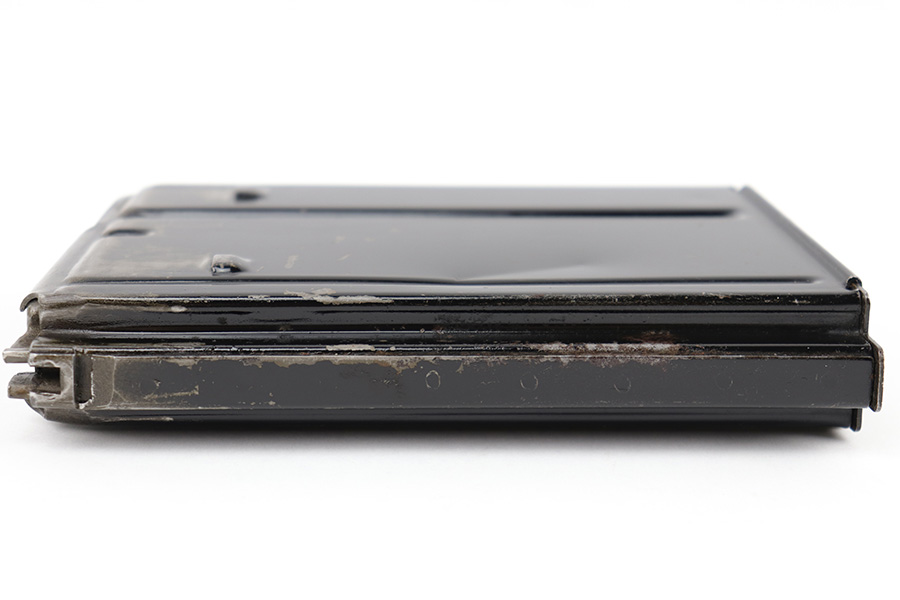 5/23/23 – This piece is a rare WW2 production FG-42 assault rifle magazine. Capable of holding 20 rounds of 8mm Mauser (7.92x57mm), it is identified as a Type G variation magazine. The magazine features a black finish that exhibits high edge wear and mild signs of use and aging throughout. However, there is no rust or pitting present. Its spring remains robust and fully functional. A Luftwaffe proof stamp can be seen on the left side of the magazine, as depicted in photos.