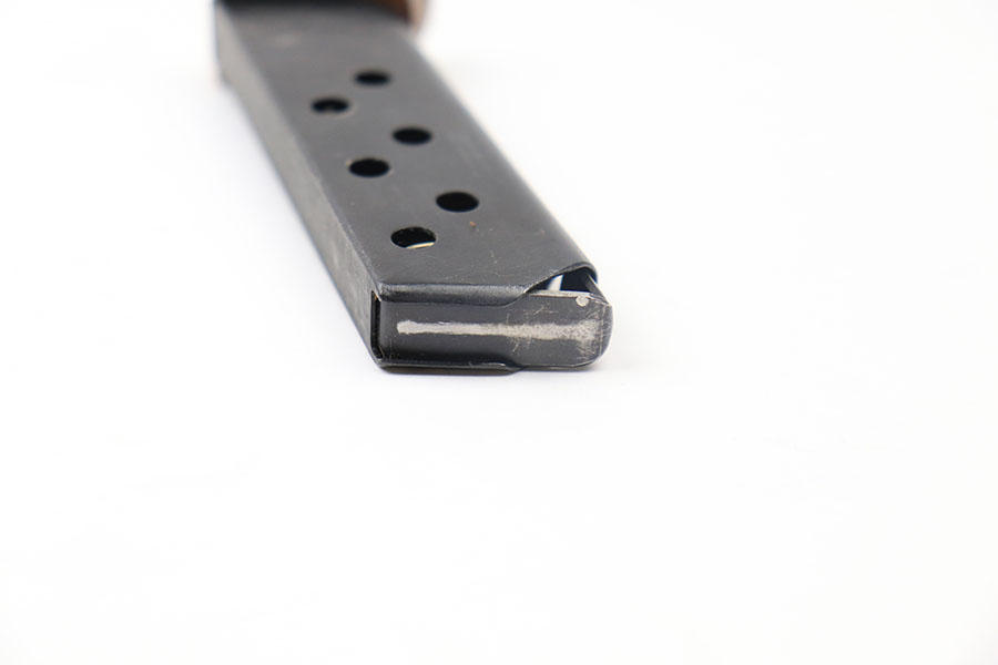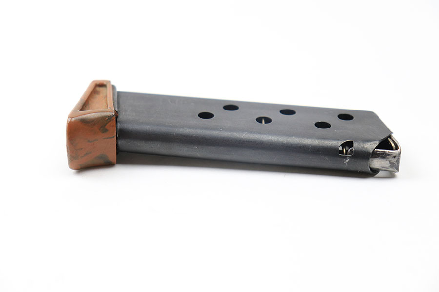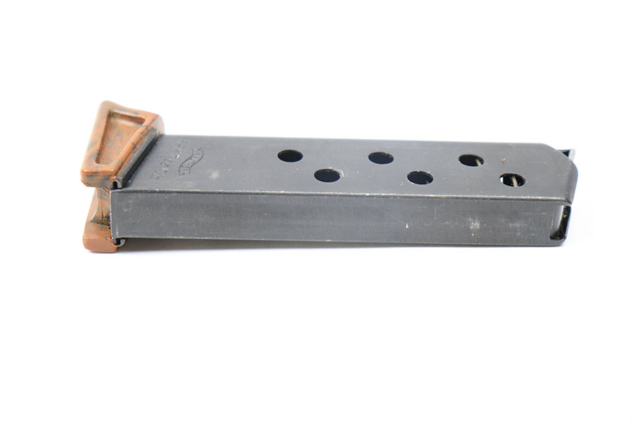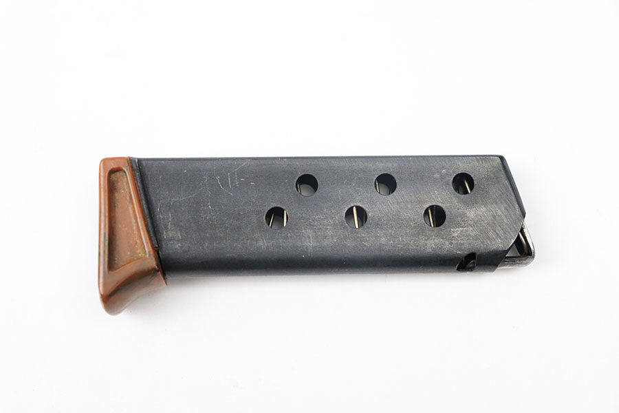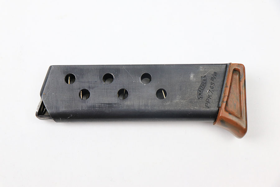 11/17/21 – This is an original wartime production PPK finger extension magazine. The magazine has a great blued finish on the tube and no cracks or chips on the bakelite finger extension. No rust or pitting. Strong, functional spring. A wonderful wartime example.