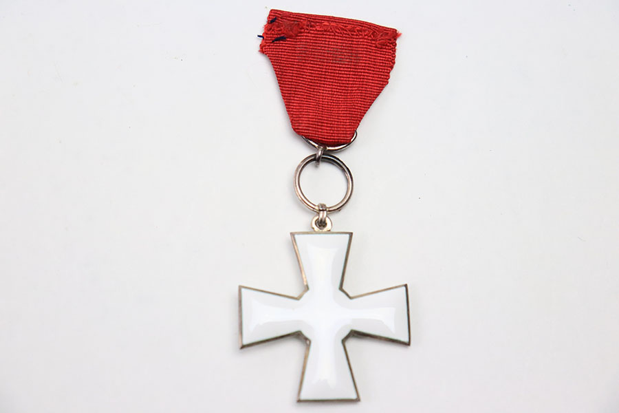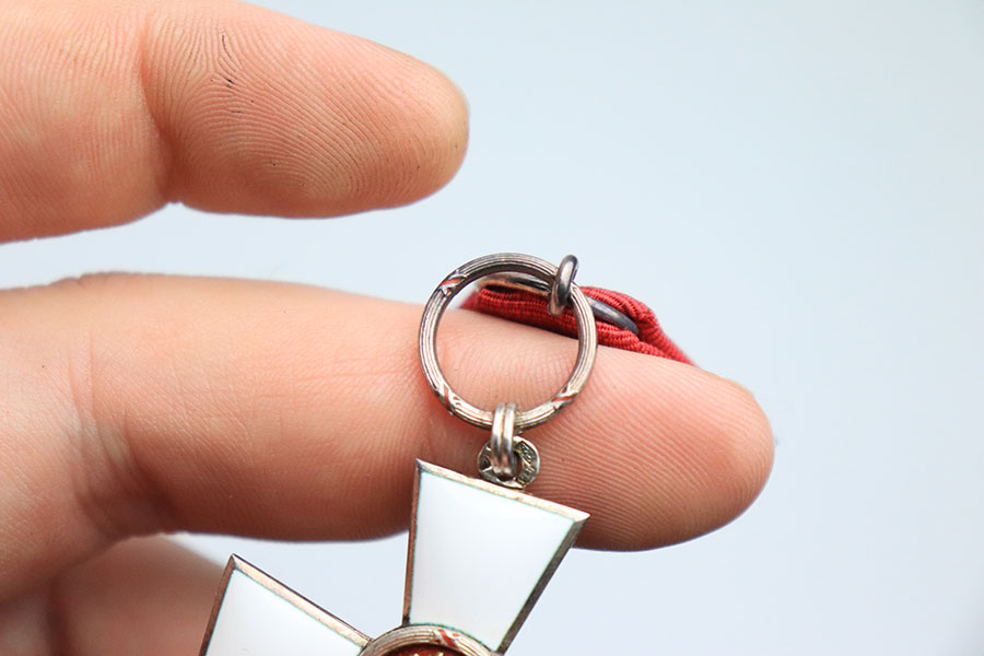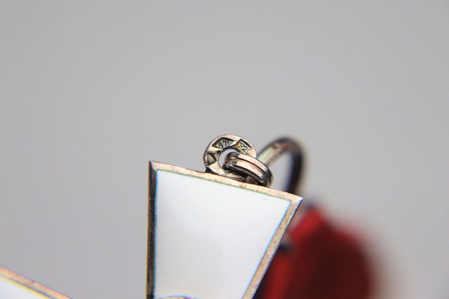 10/12/22 – This is an excellent example of a Finnish Order of the Lion medal from WW2. The metal is in excellent condition with no major blemishes or minimal signs of age. The enamel of the cross is in excellent condition as well with no cracking and only minimal signs of wear. The ribbon is in great condition with minimal fraying although some of the stitching at the top of the back is frayed. The cross measures approximately 1 5/8″ from side to side and the whole medal measures approximately 4″ from the end to end. The medal is nonmagnetic throughout. Overall an excellent example of a WW2 era Finnish medal.