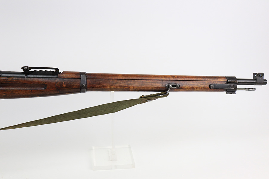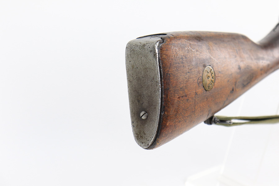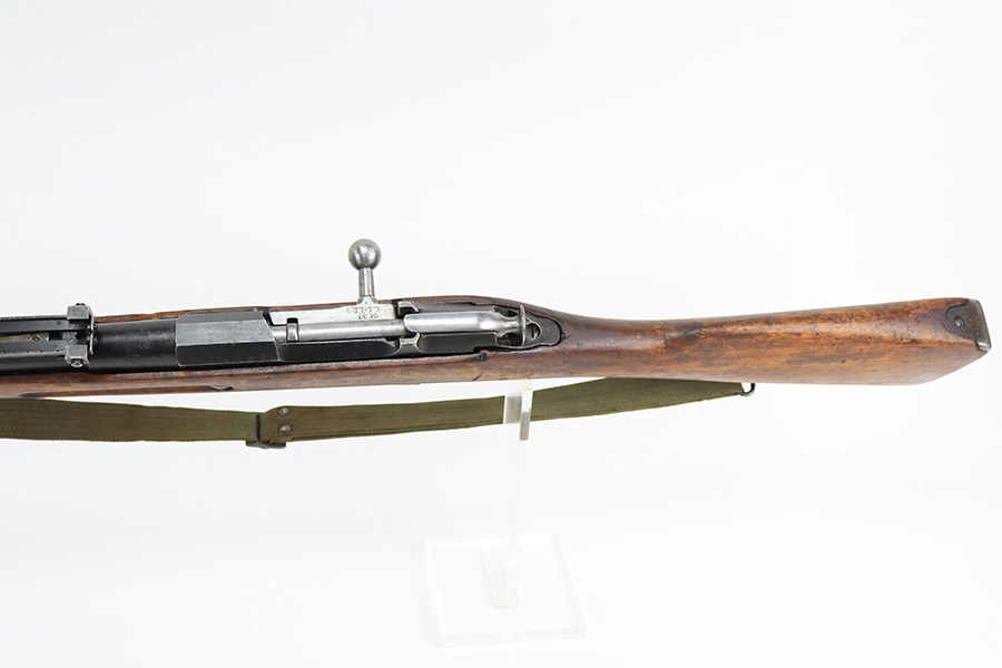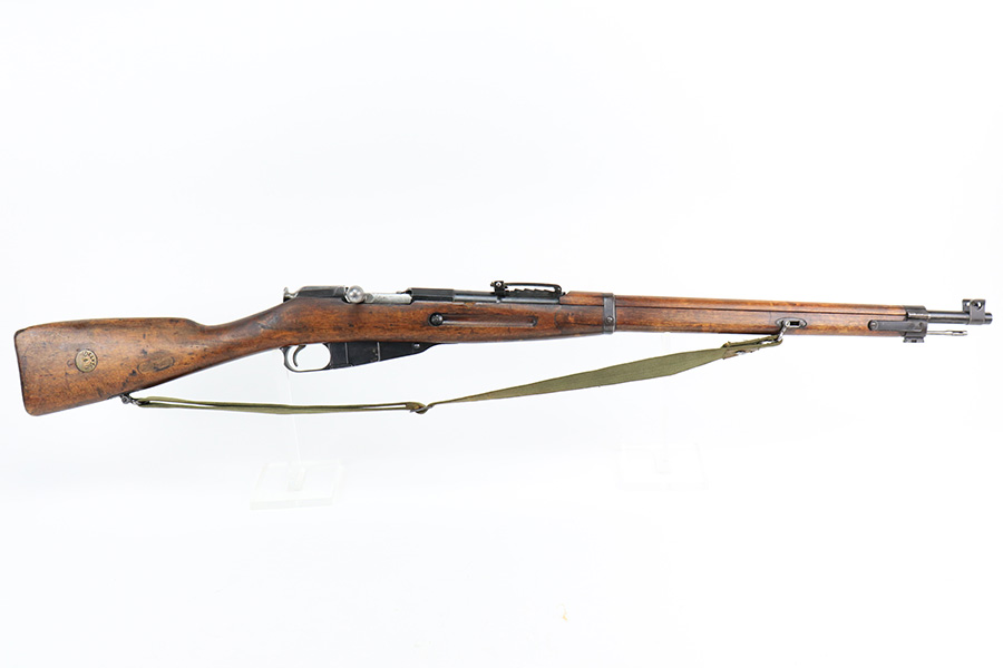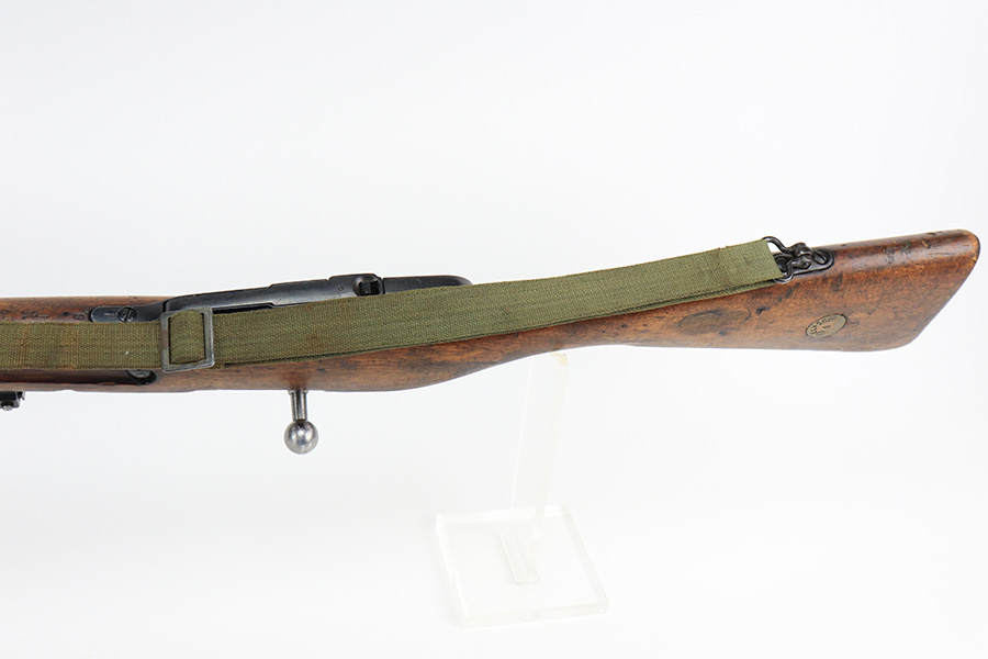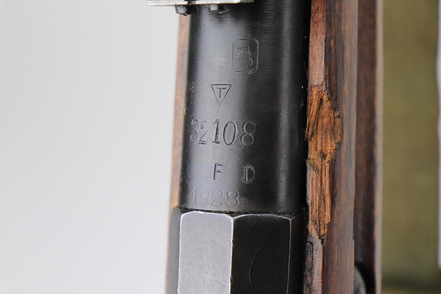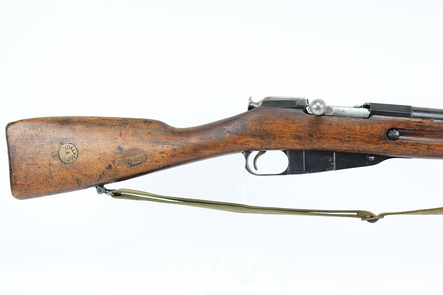 5/5/22 – This is a very nice example of a Finnish Mosin manufactured by Tikka in 1928. The gun has the proper Finnish “SA” markings on the receiver, but the bolt and receiver are mismatched. Import mark on the barrel. This one is apparently unique because it still has a unit marking on the brass disc on the right side of the stock. Comes with a cleaning rod and green canvas sling. There is light scratchy wear on the barrel and around the muzzle and very minor high edge wear throughout. Some tiny dots of discoloration on the receiver and right side of the receiver. The stock has minor scratches throughout and appears to have been lightly sanded. The bore has good rifling, but there is minor frosting in the grooves throughout.