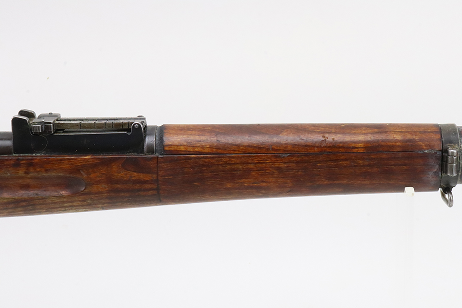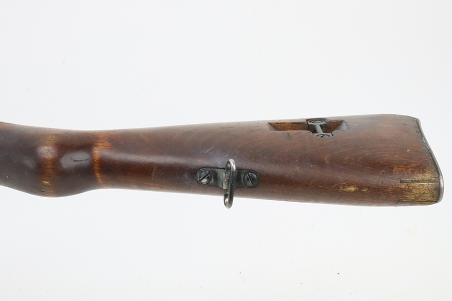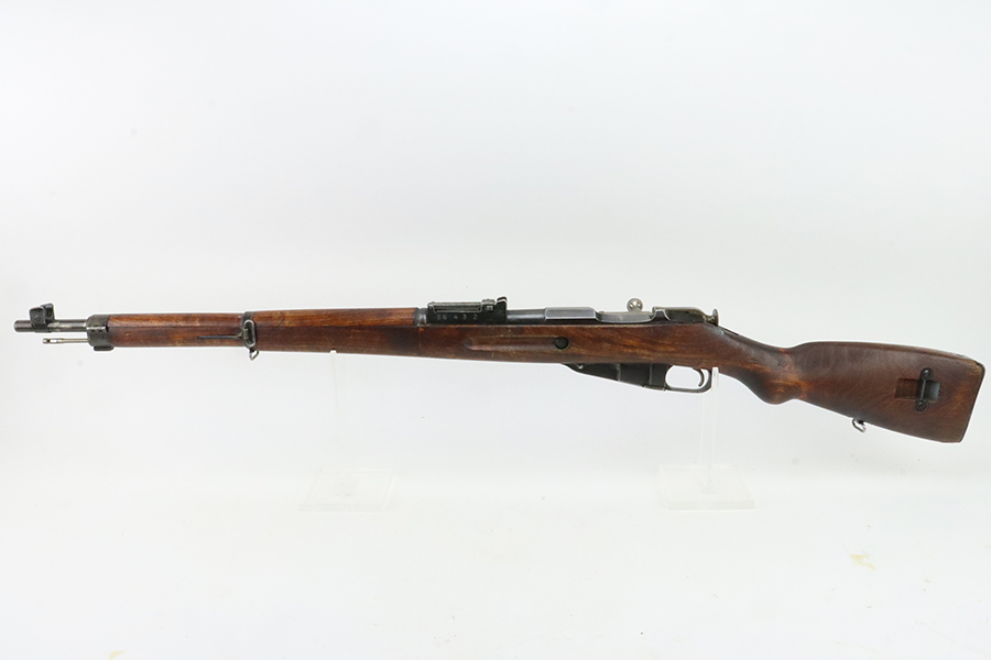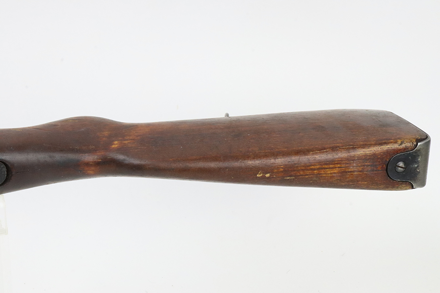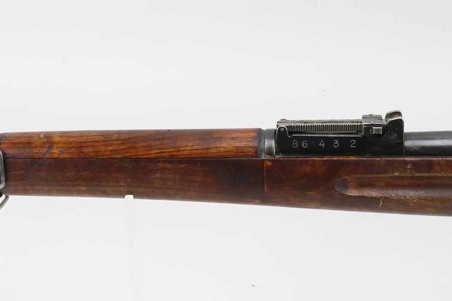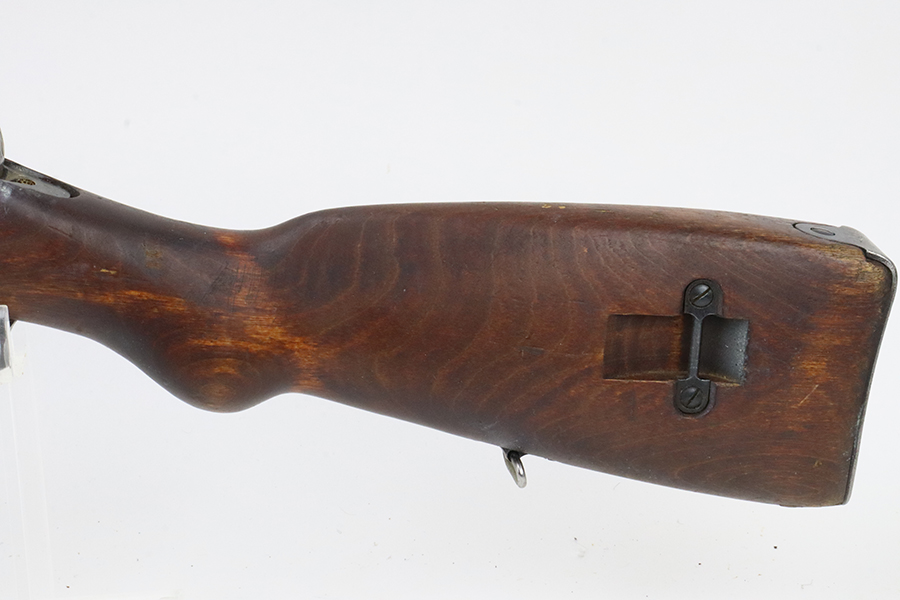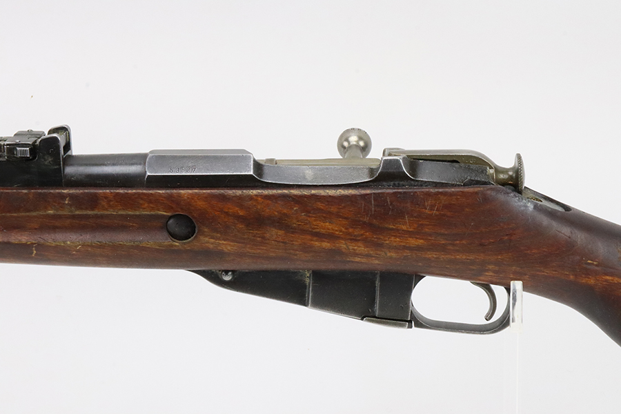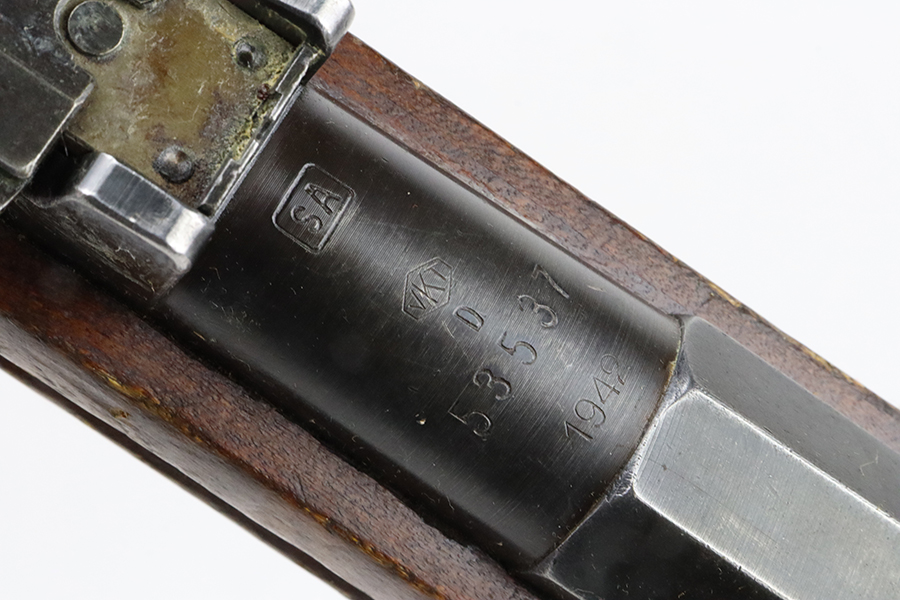 03/12/2024 – For sale is a VKT M39 Mosin Nagant made in 1942. The metal on the rifle is free from pitting or rusting but the bluing is faded and worn. The rifle was re-stocked into a post-war stock and the upper handguard has a large crack between the nose cap and barrel band. The rifle has remnants of being stored in a dusty area and needs to be cleaned. There is an import mark on the right side of the barrel. The rifle matches the barrel shank, bolt, and receiver (which is correct for VKT M39s) but the magazine floor is unmarked. The bore is slightly dark and fully frosted over. The rifling is good and some light shines through.