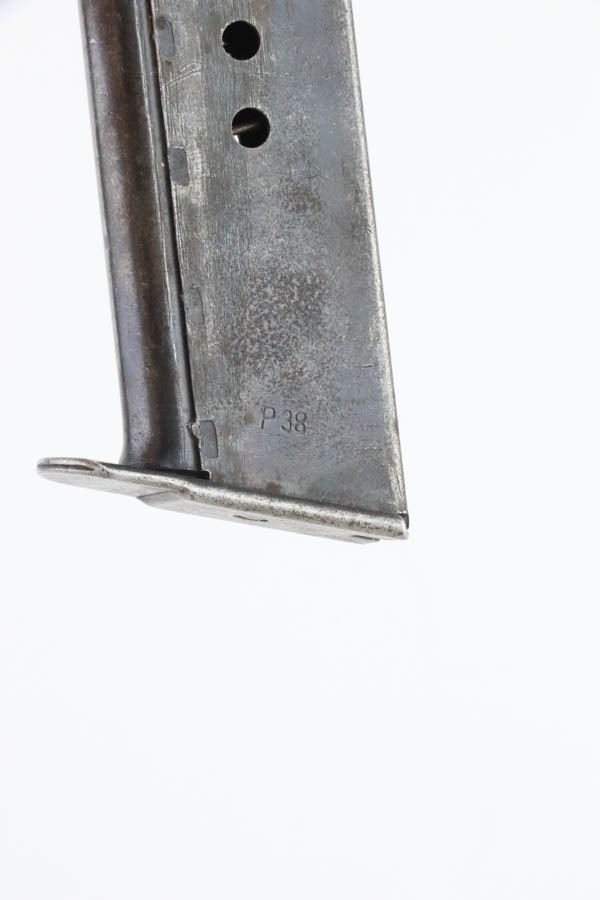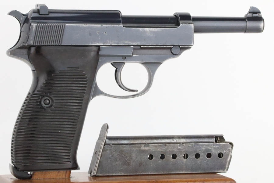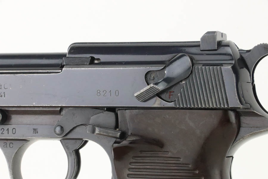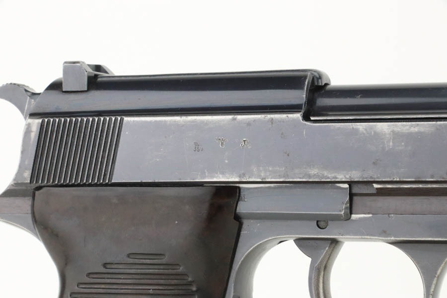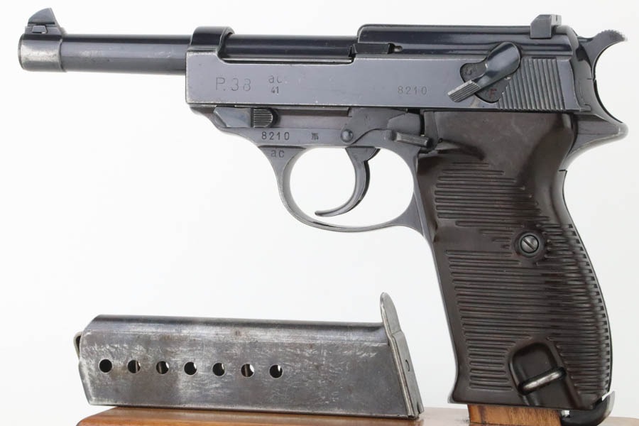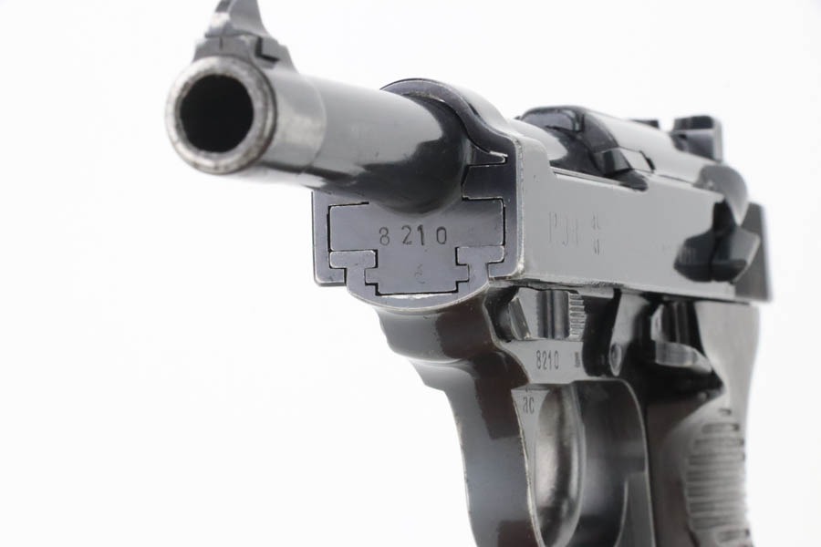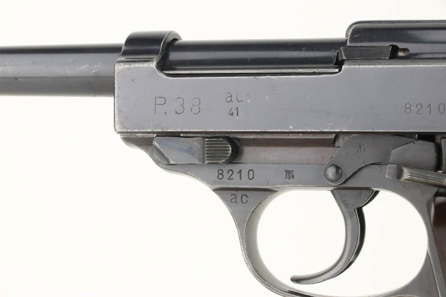 10/30/24 – This is a nice, high-polish ac 41 Walther P.38 from WW2. It is a first variation with ac on trigger guard and high-polish finish. All matching and “Eagle 359” proofed. The grips are also matching-numbered and “Eagle 359” proofed. The original finish rates roughly 85%. The majority of the finish loss is on the front strap, but there is also muzzle wear, and some minor high edge wear on the slide. Comes with a “Waffen 708” jvd magazine. The bore has great rifling, but there is light freckling throughout. De-cocker is functional.