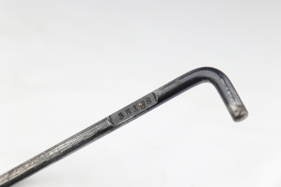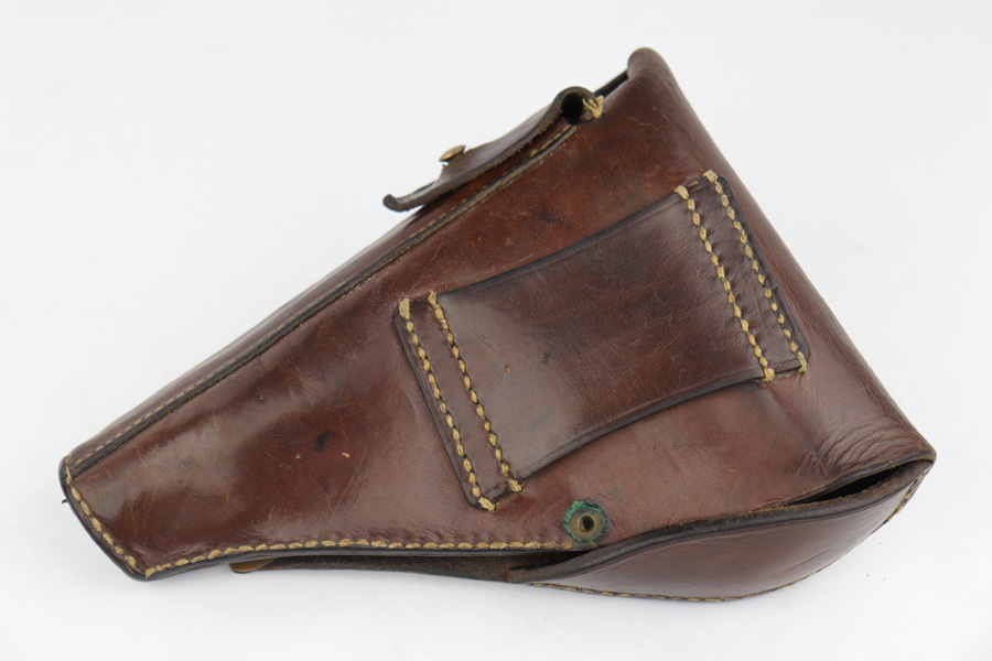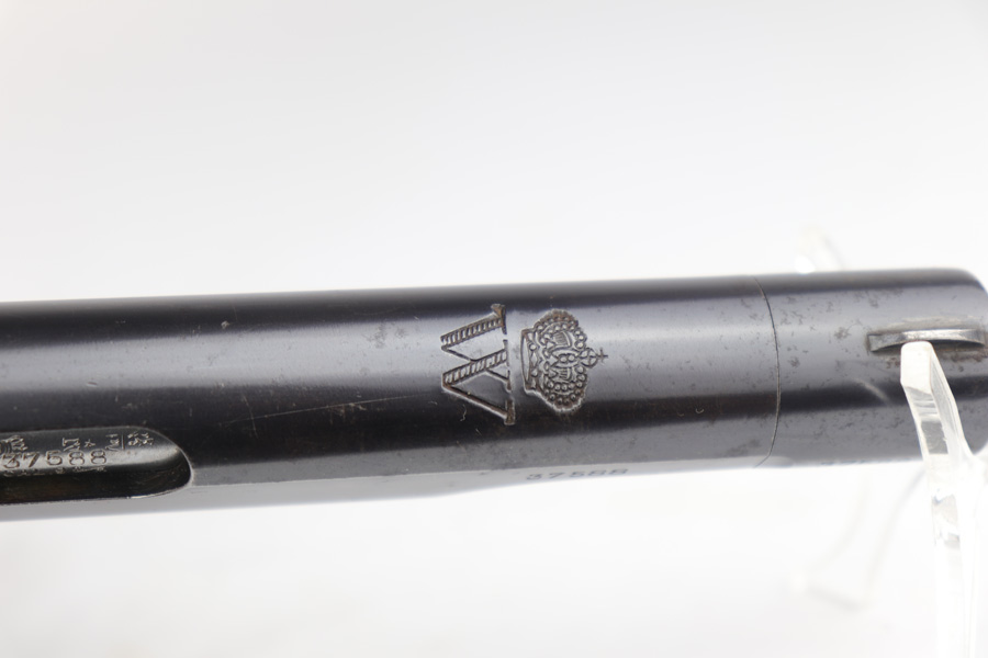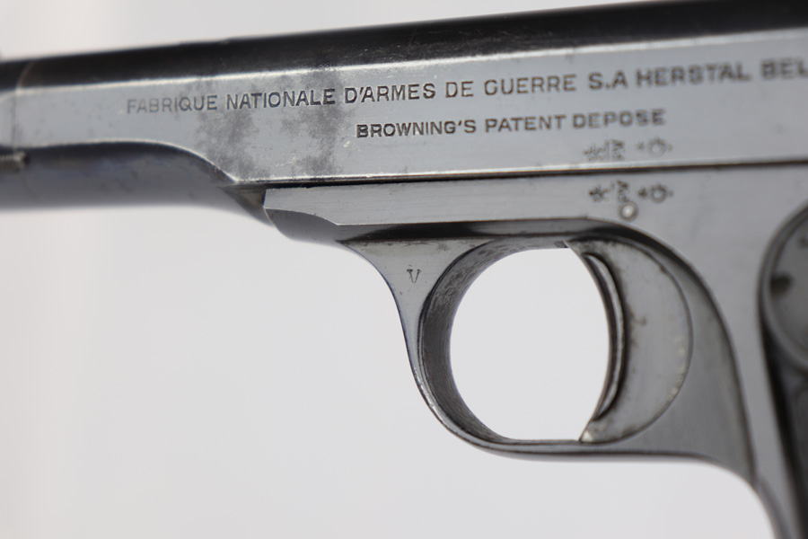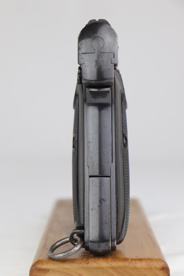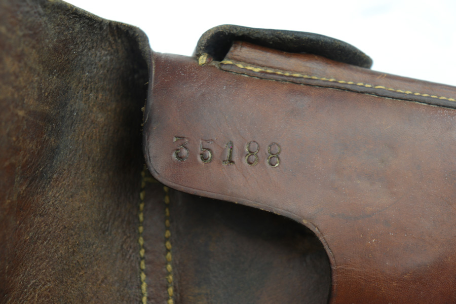 6/4/18 – This is an original Dutch contract FN model 1922 pistol made prior the WW2. The pistol comes with an original holster, cleaning rod, and matching serial numbered magazine. The holster and cleaning rod are both original Dutch issued as well, but have a different serial number than the gun and magazine. The holster & cleaning rod do however match each other (35188). The pistol is in about 92% original condition with some discoloration and beginning signs of pitting on the slide as well as a few spots on the frame, most namely the front and back straps. The pistol is all original and matching serial numbered 37588 including one factory original numbered magazine. The holster and cleaning rod are in excellent condition. The bore has some normal wear and light patina, an 8 out of 10 overall. Guaranteed original.