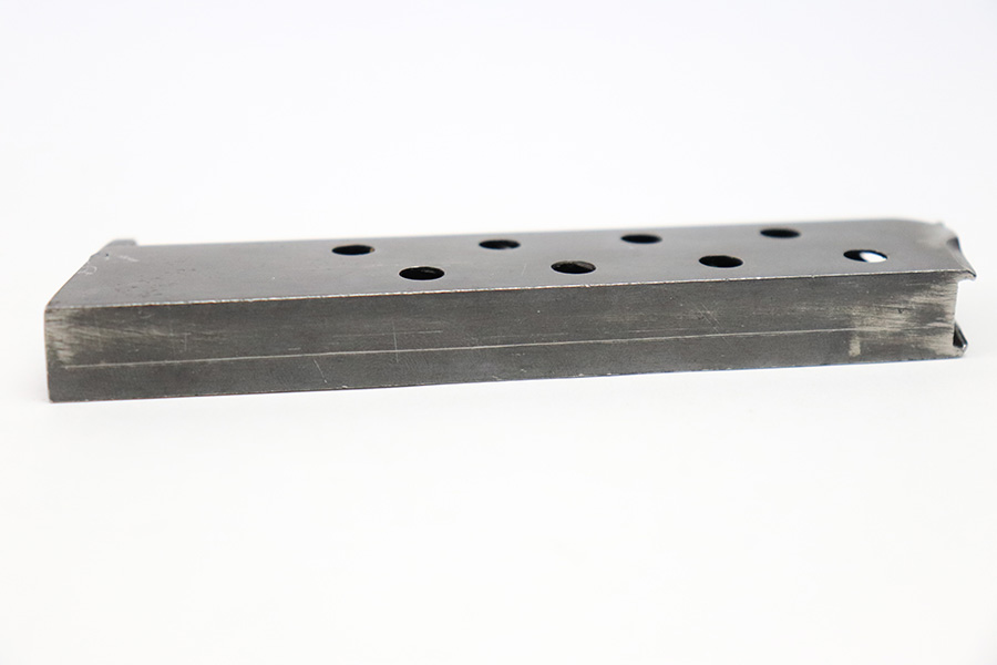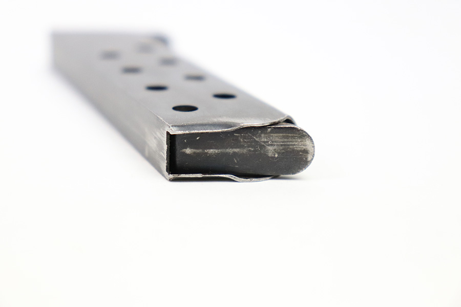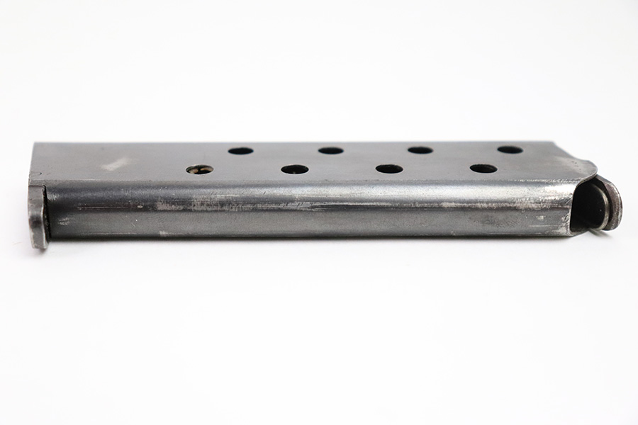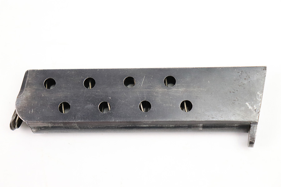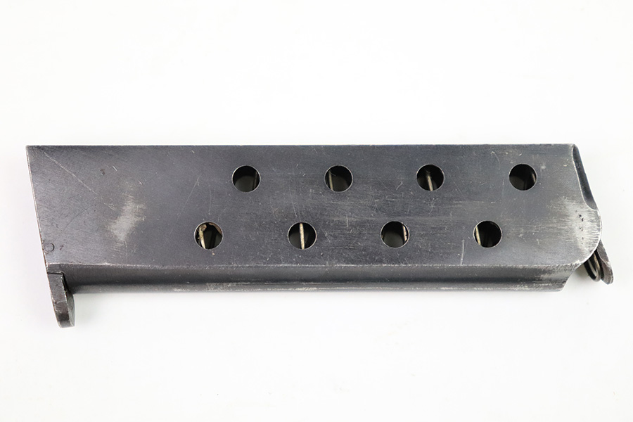 12/7/22 – This is a FN 1922 magazine. The magazine has a blued finish with some mild thinning and finish loss throughout, but no rust or pitting. The spring is strong and functional.
