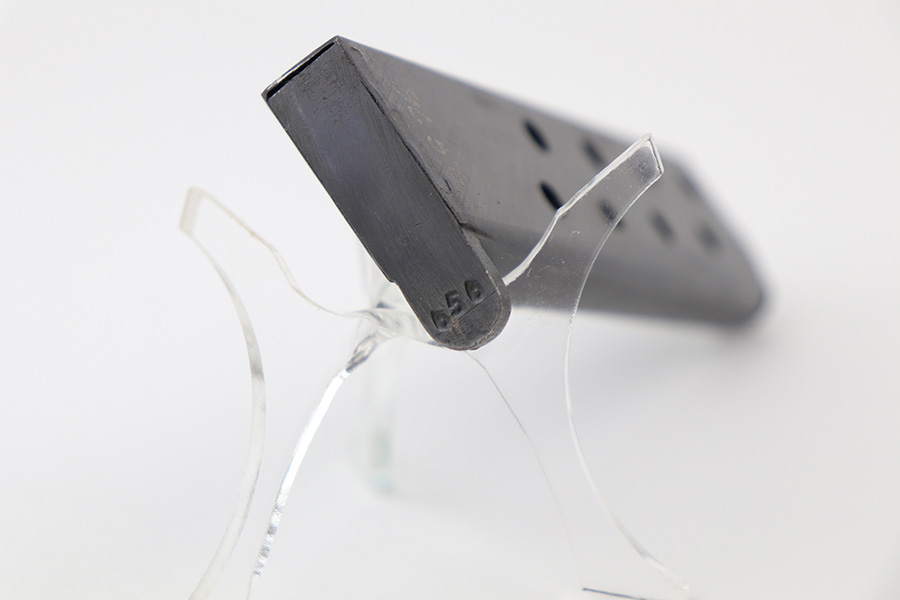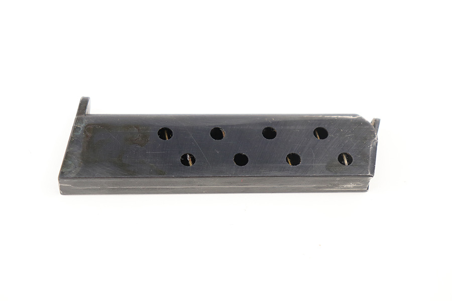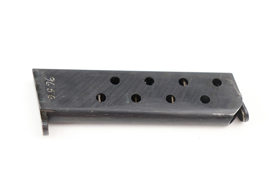 10/4/21 – This is an FN model 1922 magazine made during the WW2 era. The finish is mostly retained and despite some mild discoloration is in great overall condition. Fully functional spring. The bottom and side of the magazine have been numbered post war, most likely by a police arsenal.