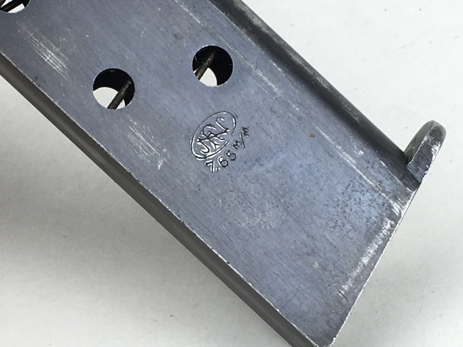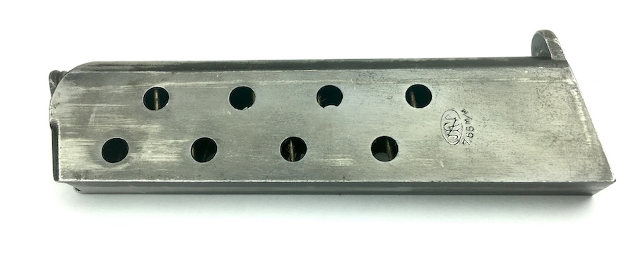 10/24/19 – This is an original WW2 era FN Browning model 1922 magazine. The right side of the magazine is FN stamped with 7.65m/m underneath. The magazine is in great shape, but there is some minor wear. The spring is strong and fully functional. Guaranteed original.