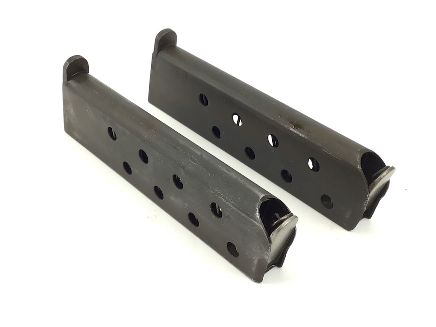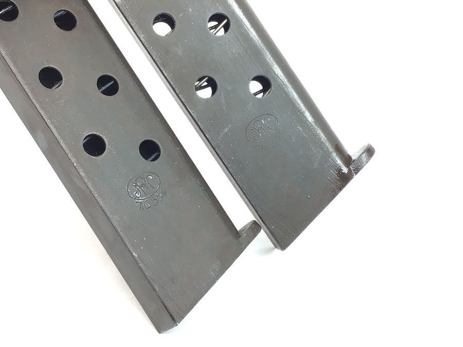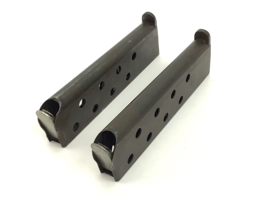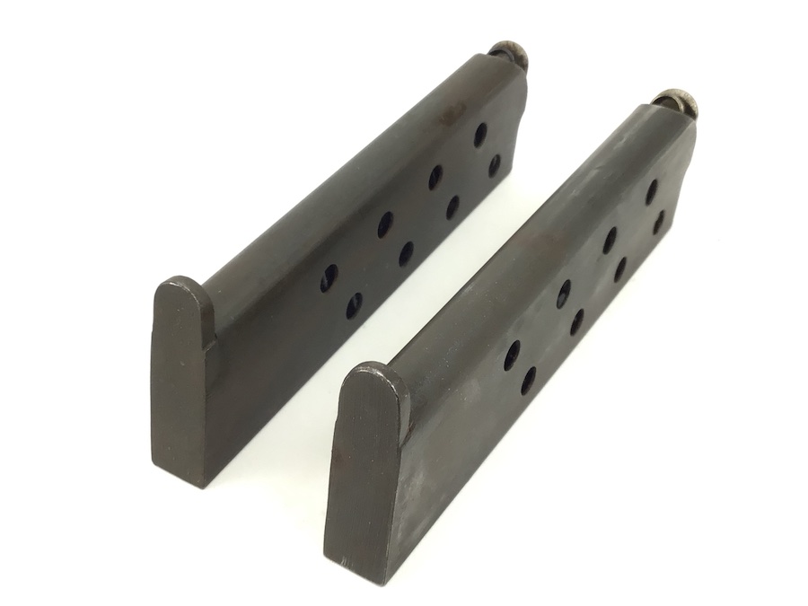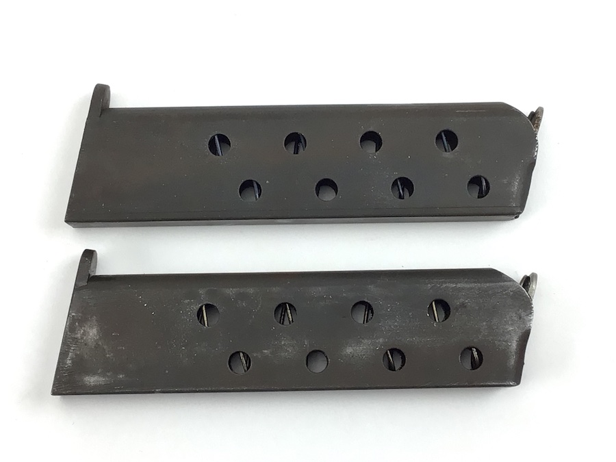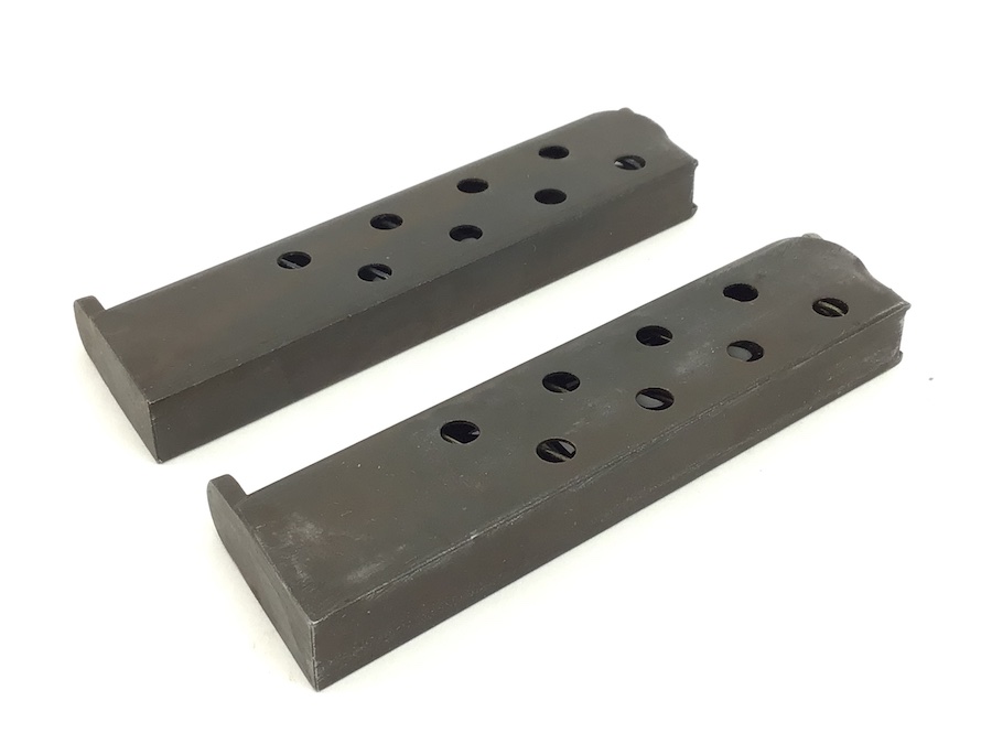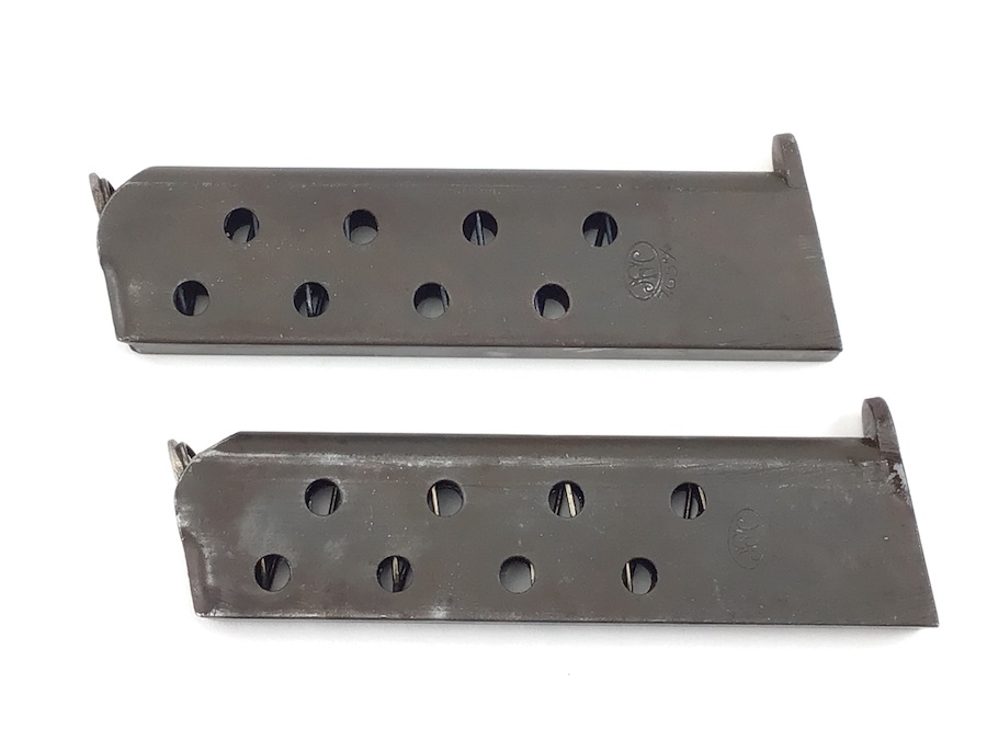 4/23/21 – Set of 2. These are original pre WW2 era FN Browning model 1922 magazines. The right side of the magazines are FN stamped with 7.65m/m underneath. The magazines are in great shape, but there is some minor wear. The springs are strong and fully functional.