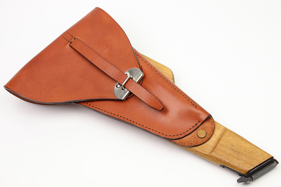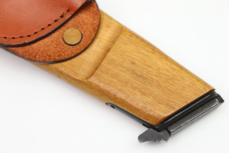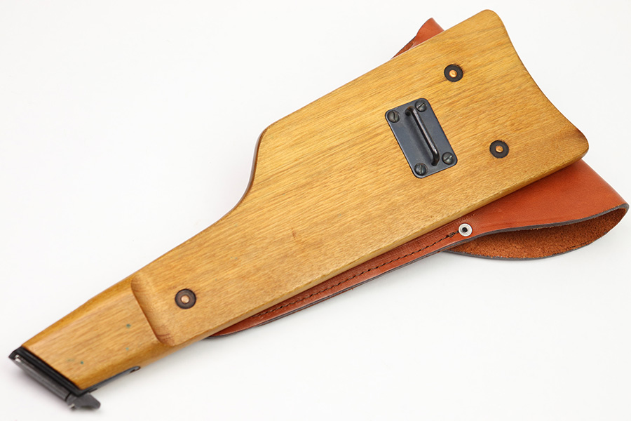 11/7/22 – This is a 1980s production FN Browning Hi-Power shoulder stock and leather holster. Excellent condition with no markings or stamps. Made by Odin International for FN Browning pistols, these were made using original FN parts. The wood stock has no cracks or chips and the metal fittings are all in excellent condition as well. The leather holster has normal pliability and minimal signs of use. No stitching or leather issues.