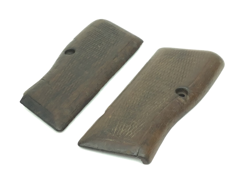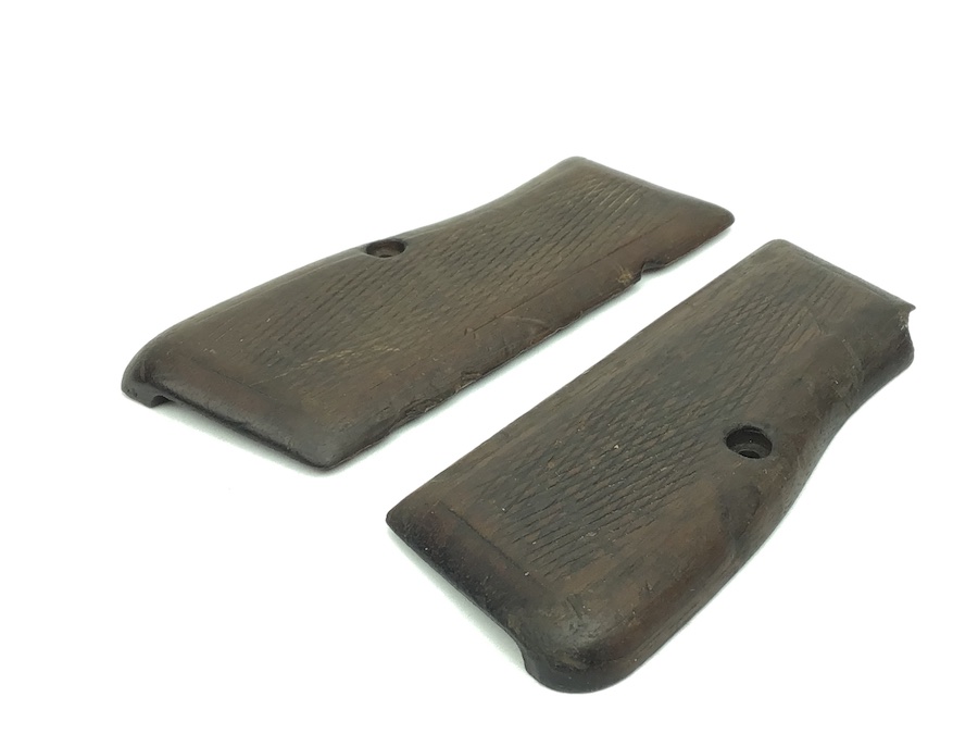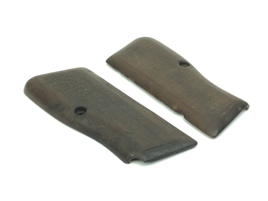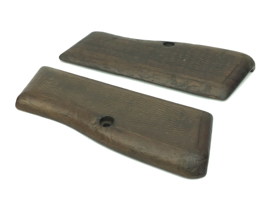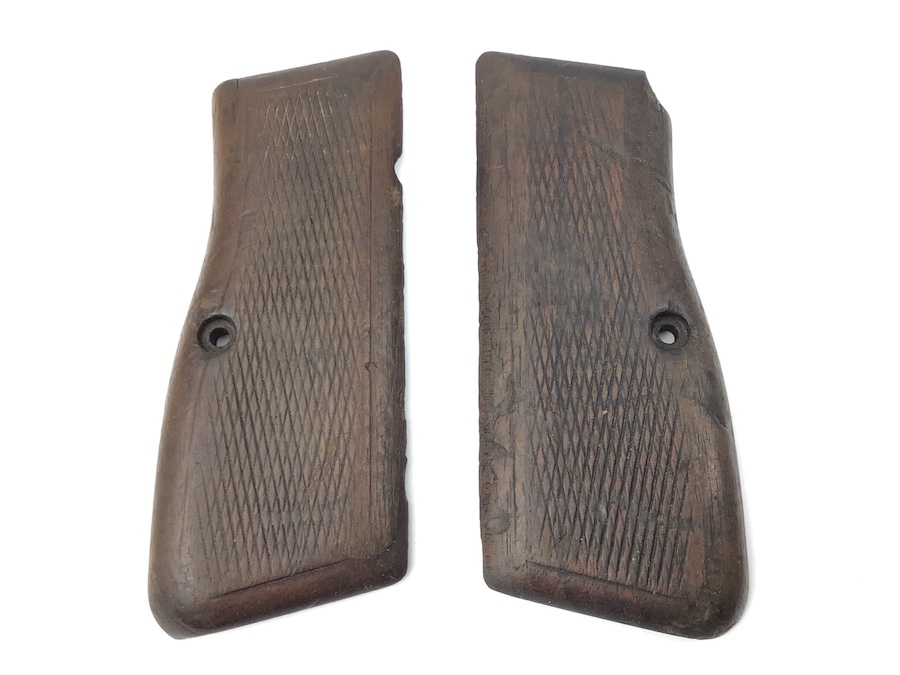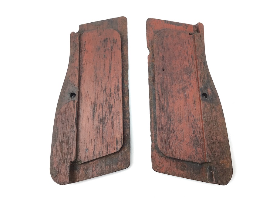 12/3/21 – Original and good condition. FN Browning High Power Wood Grip Panels. No screw. Showing honest wear overall, but no cracks. Still useable grips.
