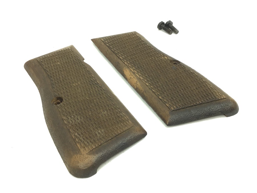 3/2/22 – Original and great condition. FN Browning High Power Wood Grip Panels. Includes screws. Minimal wear. Distinct checkering. Nice color. No cracks.