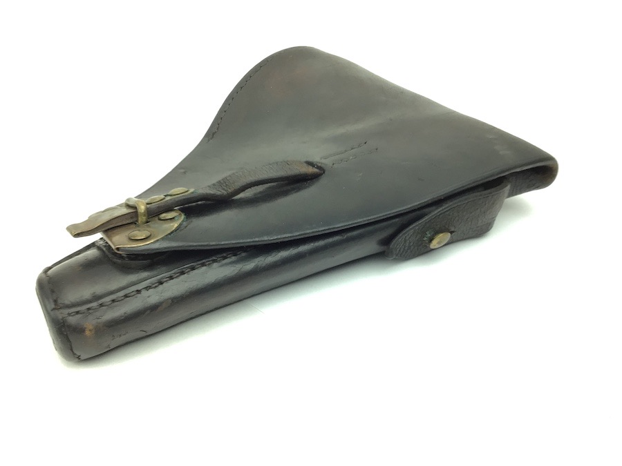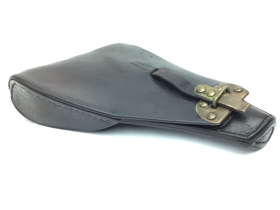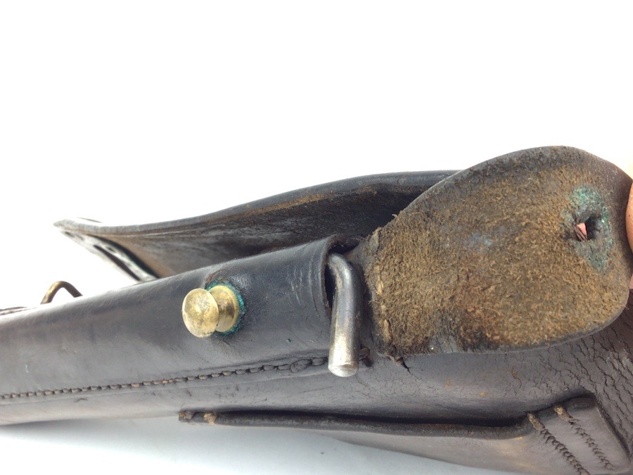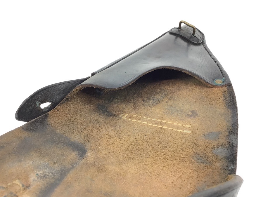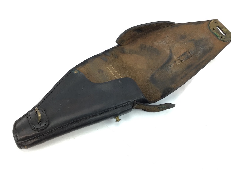 7/14/22 – Original and very good condition. FN Browning M1910 / 1922 Holster & Cleaning Rod. Stitching and rivets are intact with strong leather. Minor age wear with fairly clean interior. There are no markings on the holster. The cleaning rod is stamped with the numerals ‘47982’.