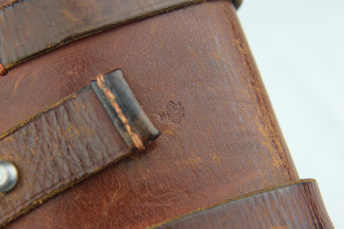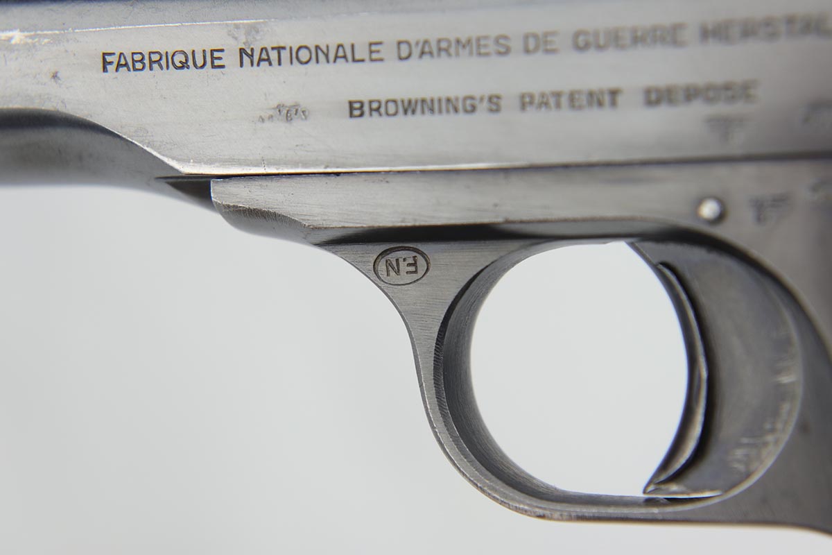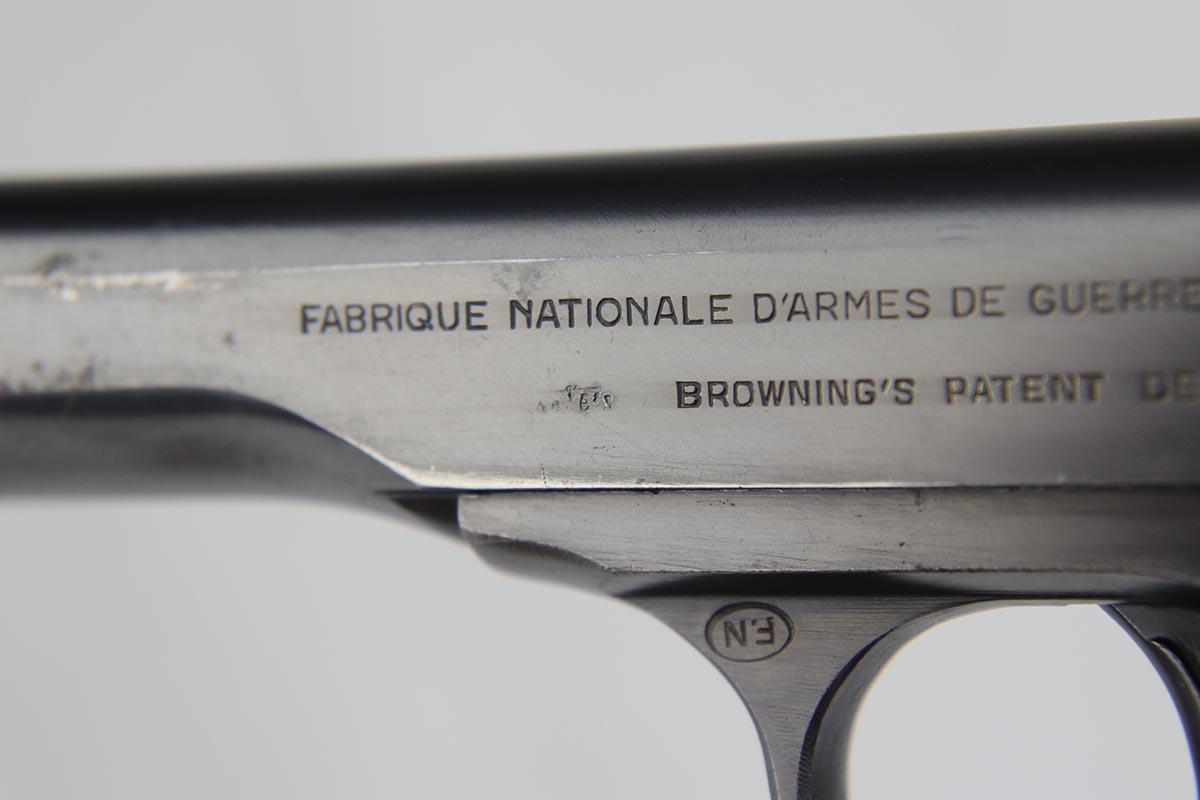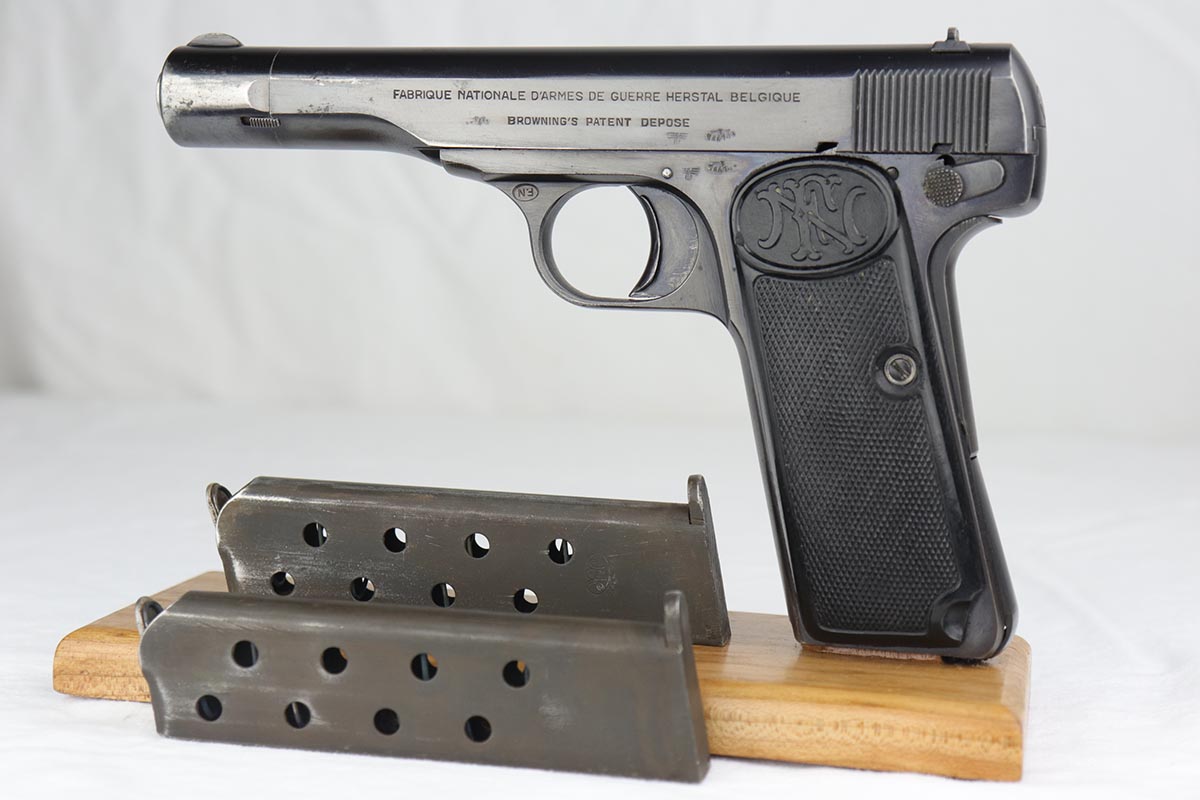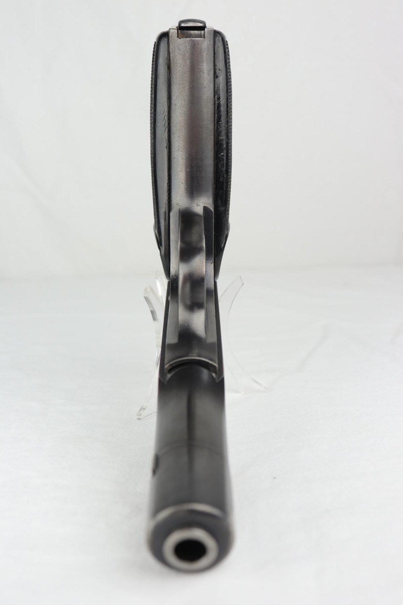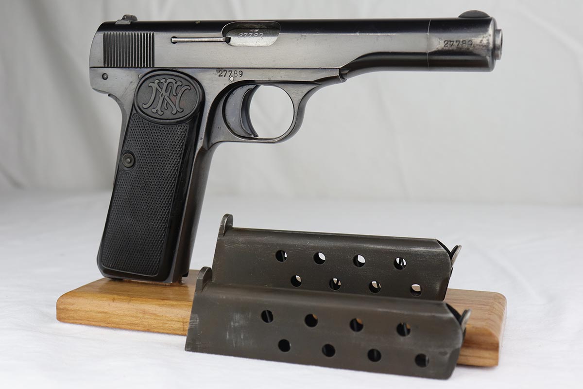 12/20/18 – This is a complete, “as issued” early FN 1922 rig that comes with two original magazines and a scarce Krieghoff marked and Luftwaffe Eagle/2 proofed holster. The gun is all original with no import markings. It retains around 95% of its original blue with majority of finish loss on either side of the muzzle, which is super common due to the holster shape for these pistols. Also has some light toning of the grip straps as per pictures. The bore and the grips are excellent as well. All numbers match. The holster is a rarely seen late war variation, made with pressed paper body and a leather flap. Great Krieghoff Anchor marking on the belt loop and a luftwaffe Eagle/2 on the flap. Sharp markings inside the flap as well. The gun has desirable early WaA103 waffenamts.