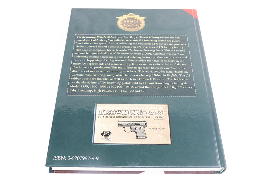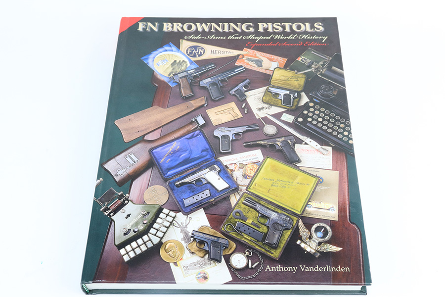 6/11/21 – This is an example of Anthony Vanderlinden’s “FN Browning PIstols: Side-Arms that Shaped World History Expanded Second Edition”. The book is in good condition with well kept pages, only minor wear on the covers and their edges. Pages 267, 325, and 327 had their top right corners folded over, but no other signs of damage to the page edges. This edition is currently out of print and is a great resource for collectors when it comes to FN Browning pistols. 368 pages in total. Hard Cover Book.