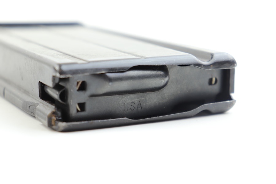 1/12/24 – This is a great condition FN-Fal/L1A1 all steel inch pattern magazine. There are light surface scratches on the body and minor finish loss on both sides near the feed lips. Spring has excellent retention and smooth operation. “Made In USA” is stamped across the floor plate with no other markings present.