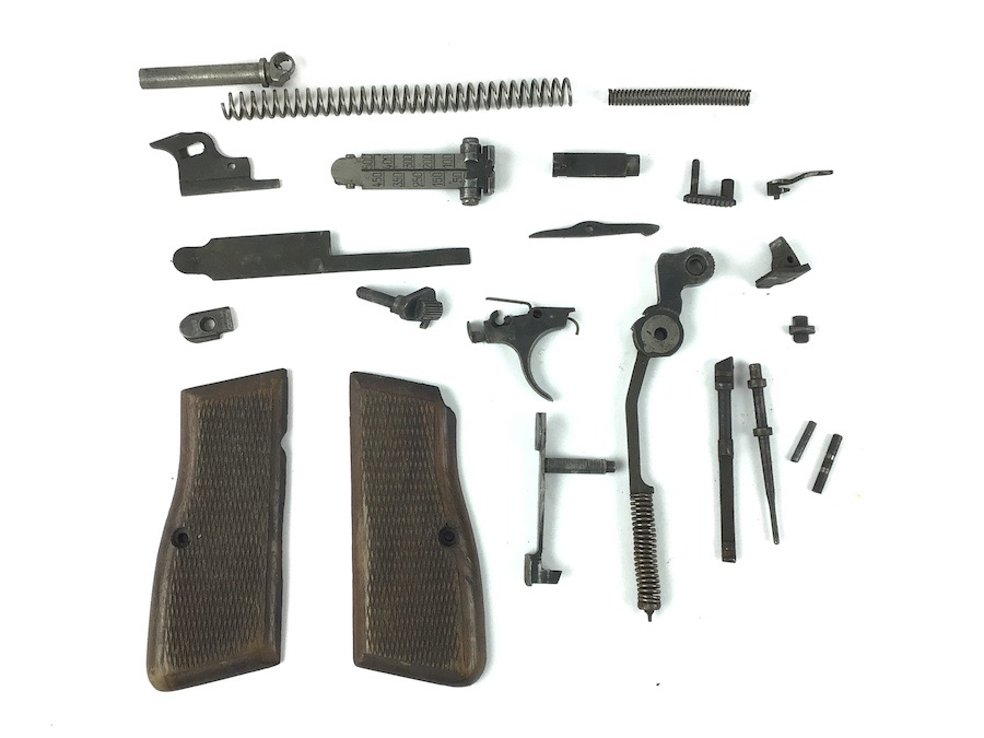 4/22/22 – Original and excellent condition. FN Browning 9mm High power parts kit including the tangent site. The grips are in great condition with no cracks or chips. Distinct checkering with nice color.