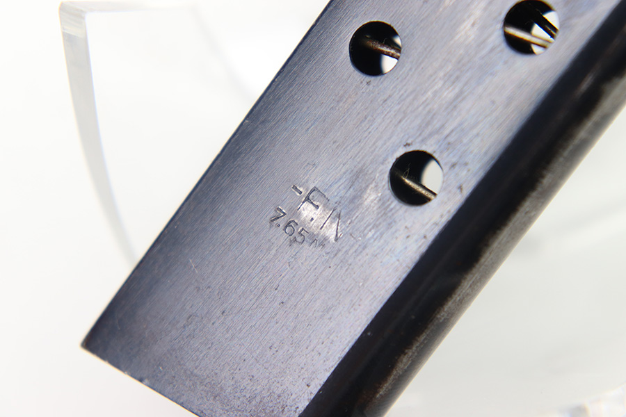 11/8/22 – This is an original FN Browning model 1910 magazine in 7.65mm. The magazine is in great condition with most of the original finish still in tact. The spine has some finish loss and there’s mild patina throughout the tube. Fully functional spring.