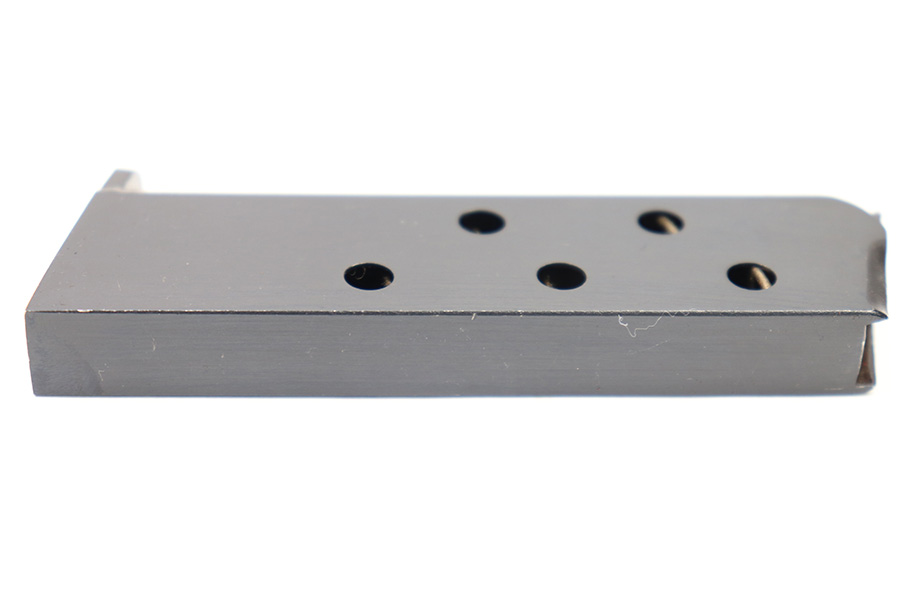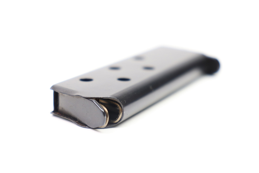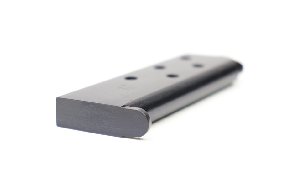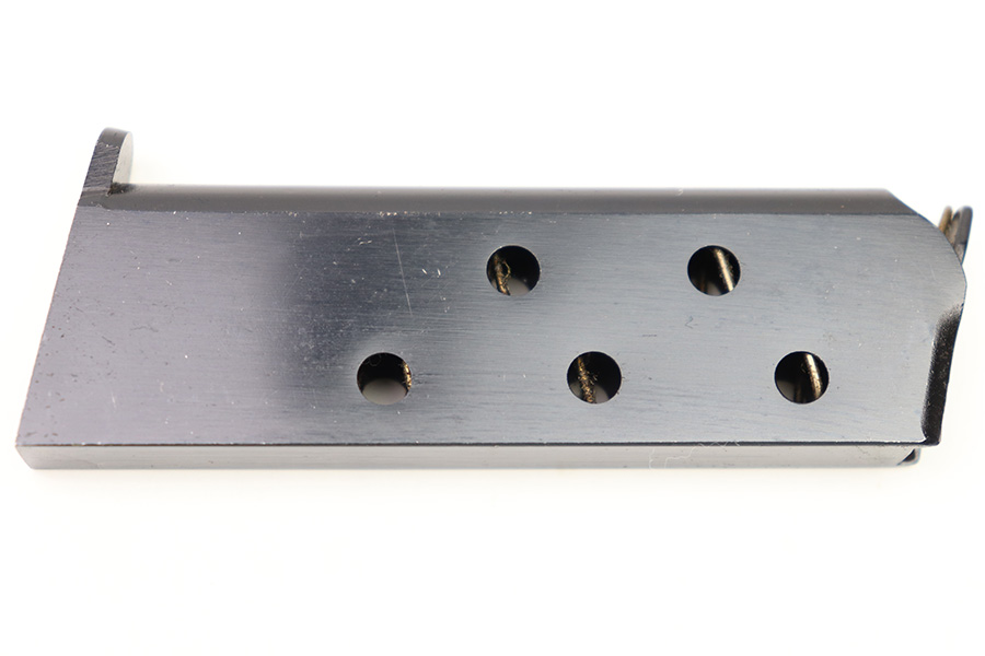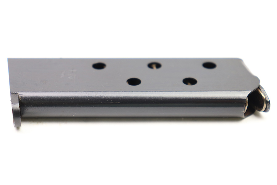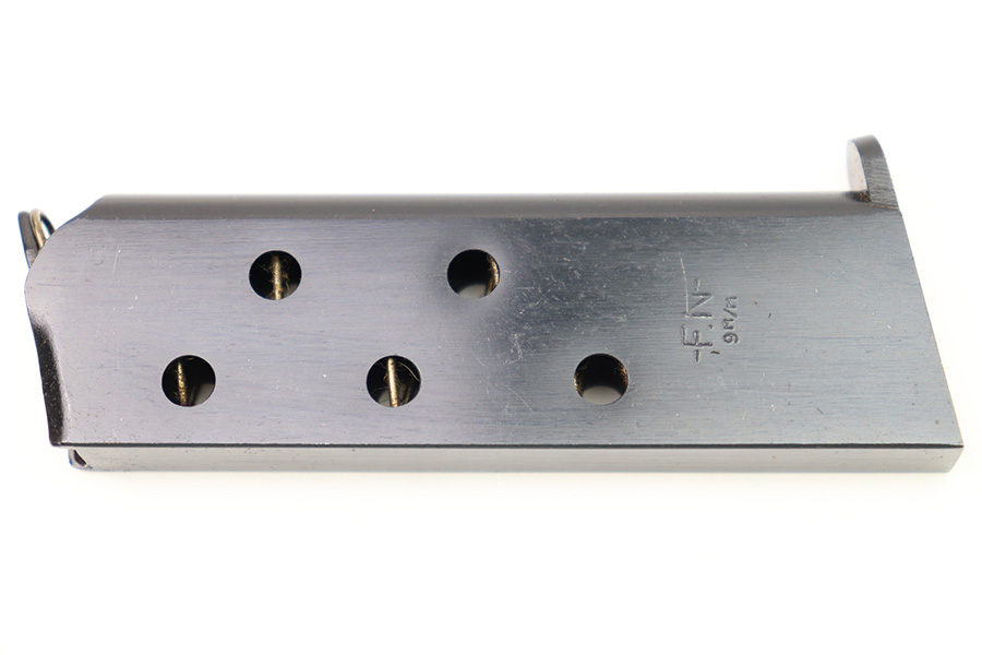 10/6/22 – This is an original FN model 1910 magazine in .380 ACP, also known as 9mm Kurz. The magazine is stamped on the right side of the tube with “FN 9mm” and there are no other markings. The finish is excellent and clean throughout. The spring is strong and fully functional.