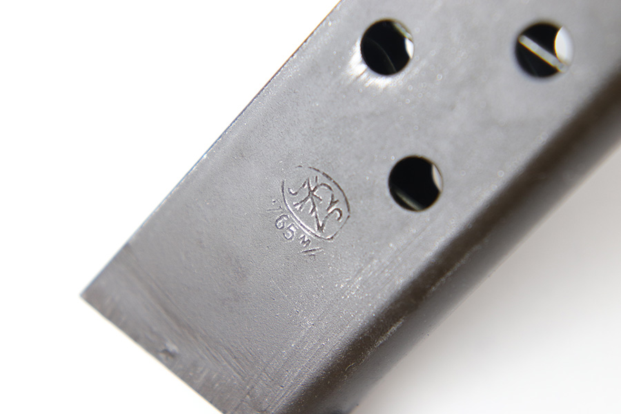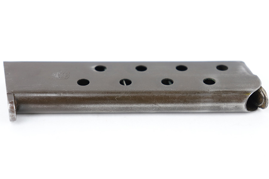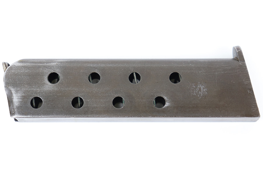 5/8/23 – This is an original WW2 era manufactured FN model 1922 magazine. The magazine has a phosphate finish with a FN logo on one side with caliber information underneath. There’s light surface patina and mild finish loss but great overall condition. Strong, fully functional spring.