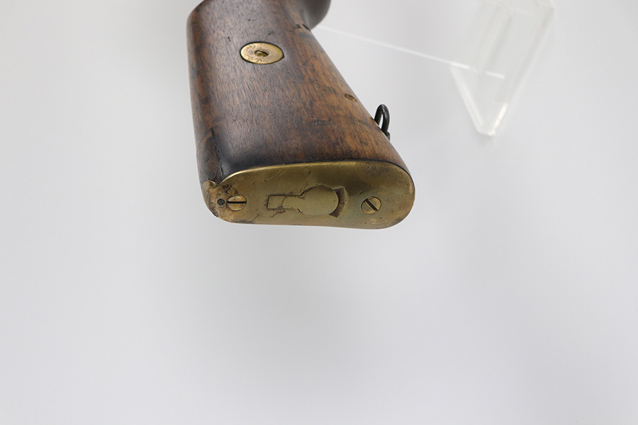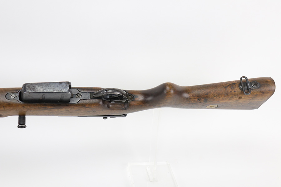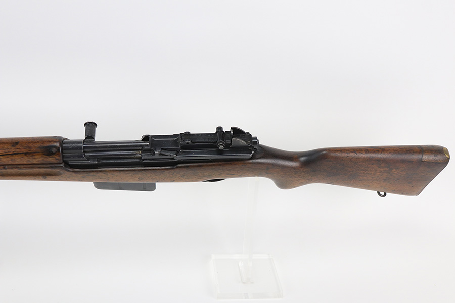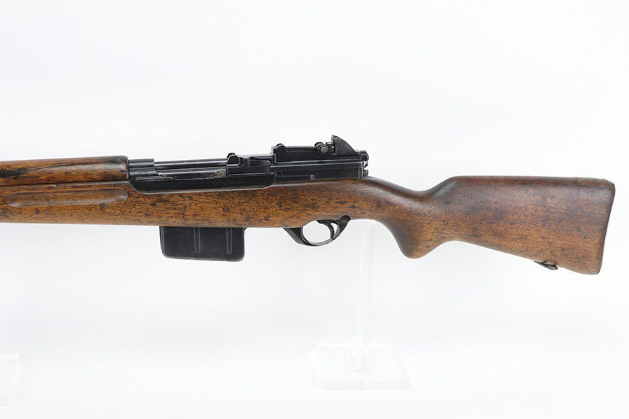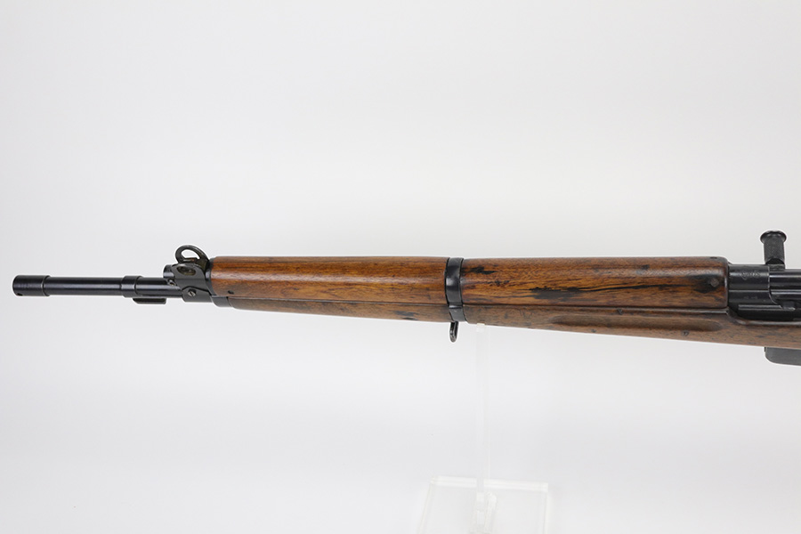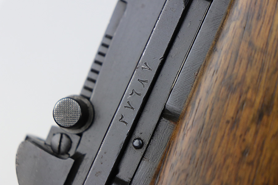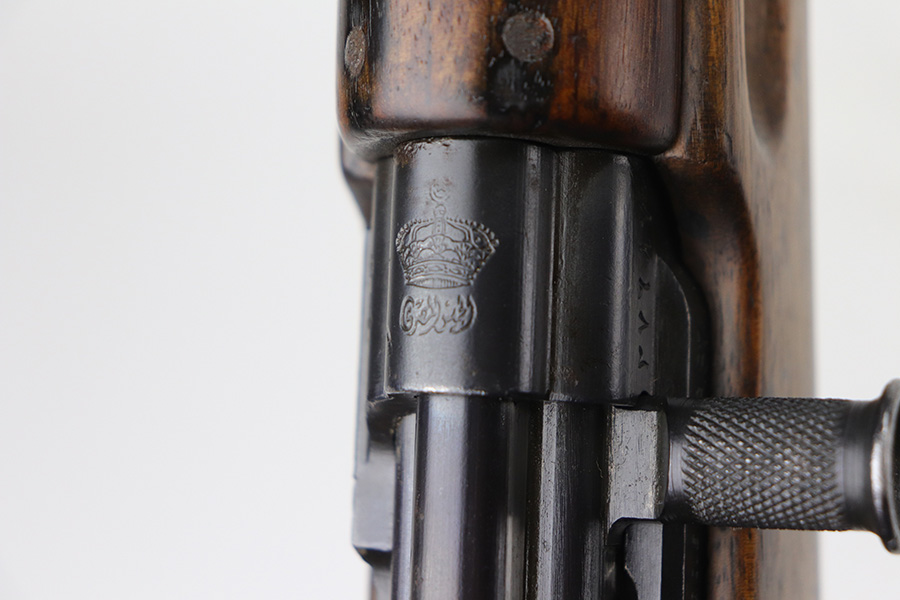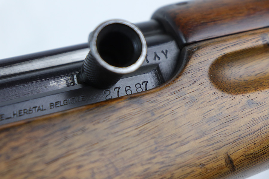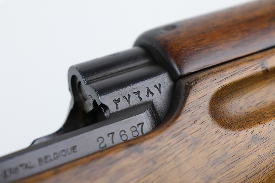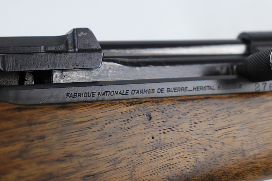 11/23/21 – This is an excellent example of an FN Model 1949 rifle that was part of an Egyptian military contract. There’s minimal bluing loss aside from the magazine, which also has some pitting. There’s also an import mark on the barrel. The FN49 was designed by the Belgian manufacturer Fabrique Nationale before WWII; however, plans to produce the semi-automatic rifle were abandoned when the Germans occupied Belgium. Many FN engineers fled to England during the war and returned to Belgium when it was liberated by the allies in 1944. With their return to Belgium these engineers revitalized their plans for what would eventually become the FN49 (also known as the SAFN short for “semi-automatic FN”). While the FN49 was high quality in its time, it saw limited production and use because it did not come into production until after WWII and it eventually had to compete with the popular HK G3 and FN FAL rifles which utilized more modern technology. The FN49 was produced for 8 primary contracts. This particular rifle was produced for the second contract which brought 37,641 FN49 rifles to Egypt in 1949. Many rifles in this contract were used in Suez Crisis in 1956. As with all Egyptian contract FN49s, this rifle is chambered for 7.92x57mm Mauser. The receiver, stock and barrel are matching serials in Arabic numerals (see photos). Markings, including the Egyptian crest, are sharp and clear on the receiver. The stock is in good condition, with original stock disk present. Not many dings and no cracks. Bore is shiny with strong rifling but does have some frost and freckling in the grooves.