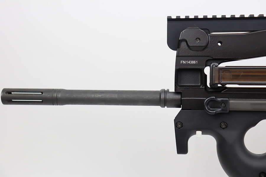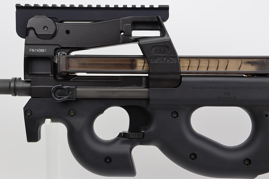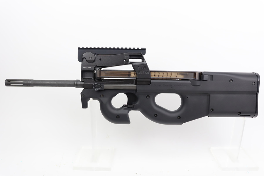9/29/23 – This is an excellent FN Model PS90, chambered in 5.7x28mm. Fitted with a scope rail and comes with one magazine. Very little sign of wear except for some light scuffing along the barrel. Mint bore.
