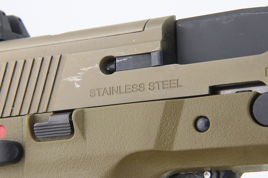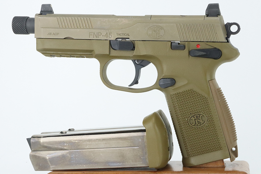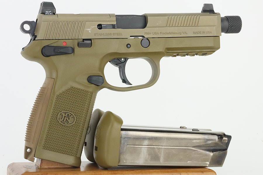 05/22/2024 – For sale is a nice FNX-45 handgun made by FN Herstal. This handgun is an overall 94% as there are spots of wear throughout the slide and the top of the barrel from use. The handgun has a bright bore but has carbon buildup within the grooves. The handgun is suppressor-ready with a threaded barrel and suppressor height sights and it comes with 3 magazines.