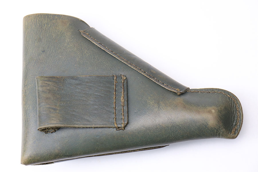 5/13/21 – This is an original WW2 era holster with greenish colored leather often associated with the German “forestry police”. The holster is typically paired with a Walther PP but could be used with most 7.65mm axis pistols. No markings or stamps. The leather has some mild fading of the green finish and normal signs of use / aging but no major issues. Excellent, all original stitching.