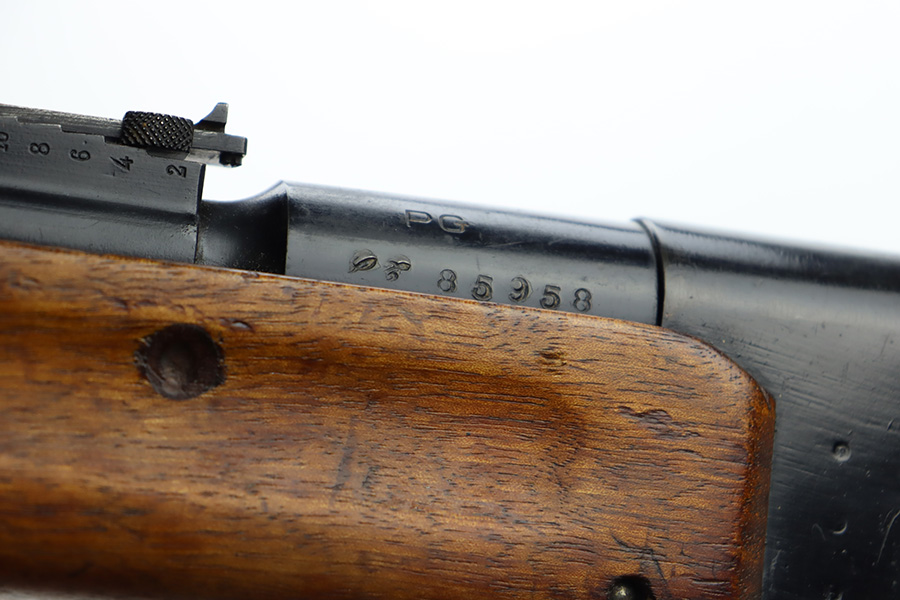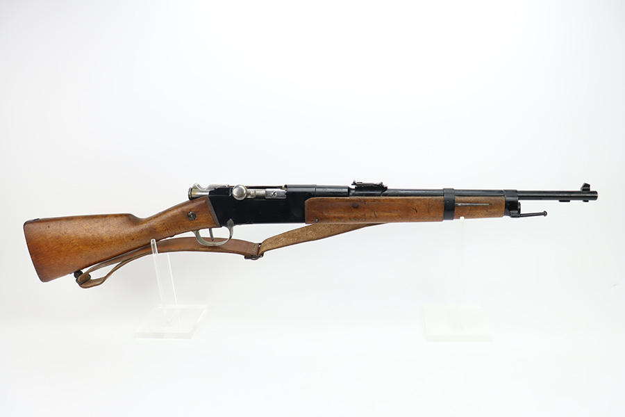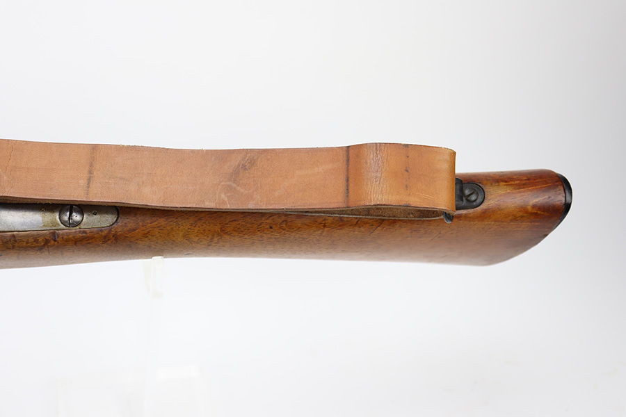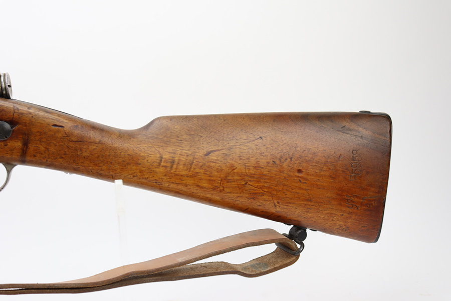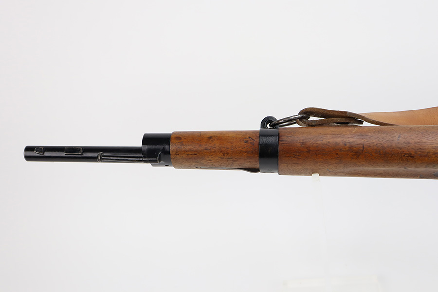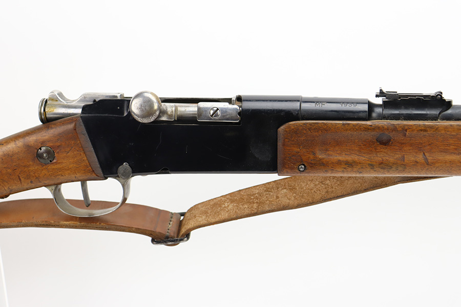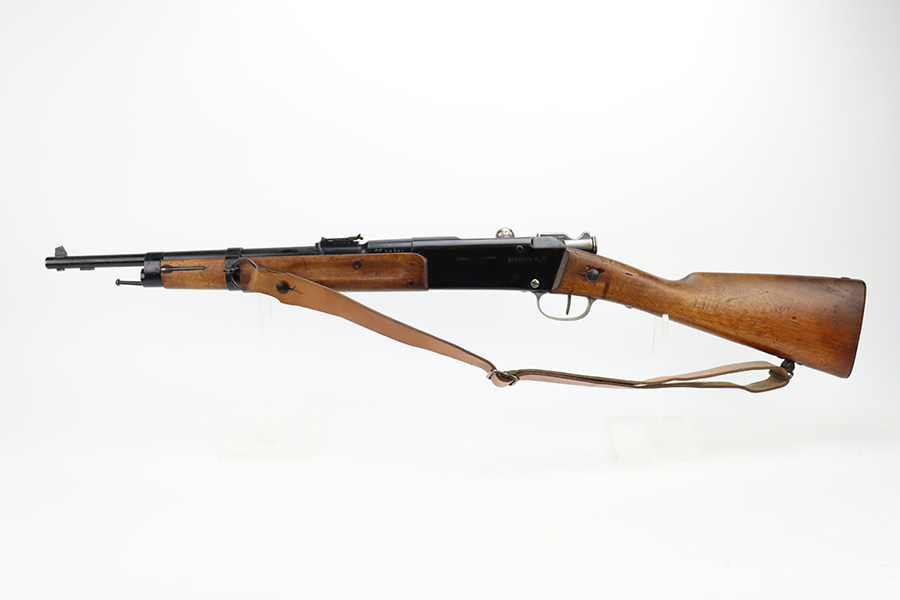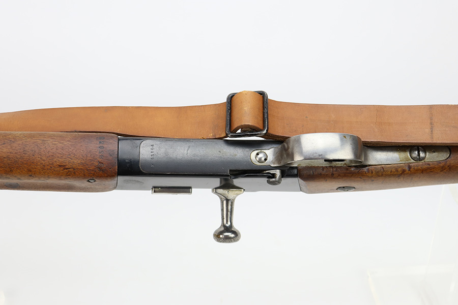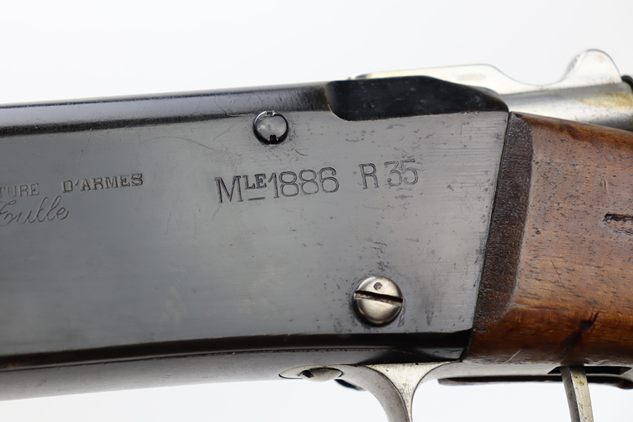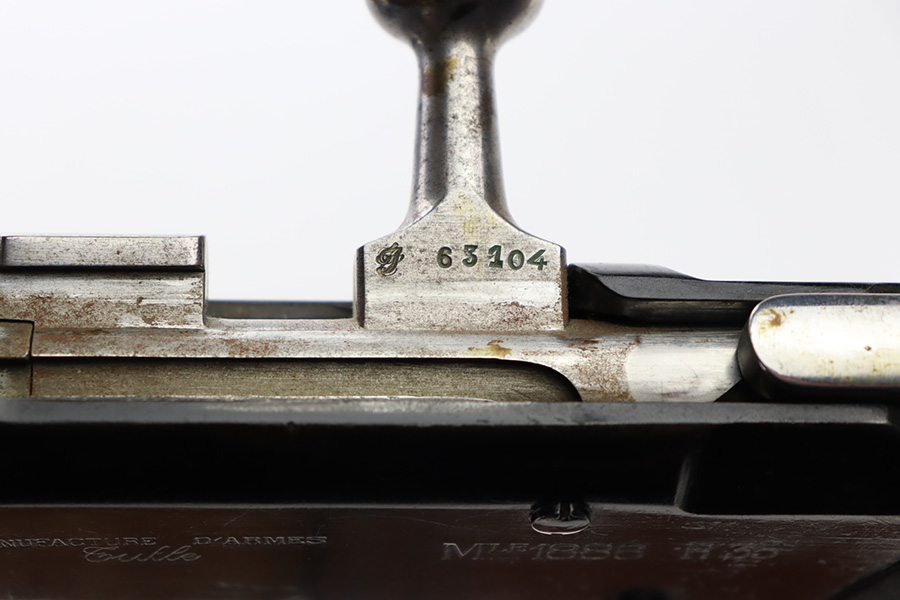 12/4/23 – This is a clean example of a French R35 made in 1939 for the French Army before WW2. The R35s were produced as shortened Lebel 1886 as rear-echelon rifles. The rifle retains majority of its original finish but the wood furniture looks to have been lightly sanded. The rifle has matching serial numbers on the barrel, stock, and handguard. The bolt and floor plate have different serial numbers but match themselves. The bore is very bright with great rifling. The stacking rod is slightly bent. Comes with one MAS36 style leather sling.