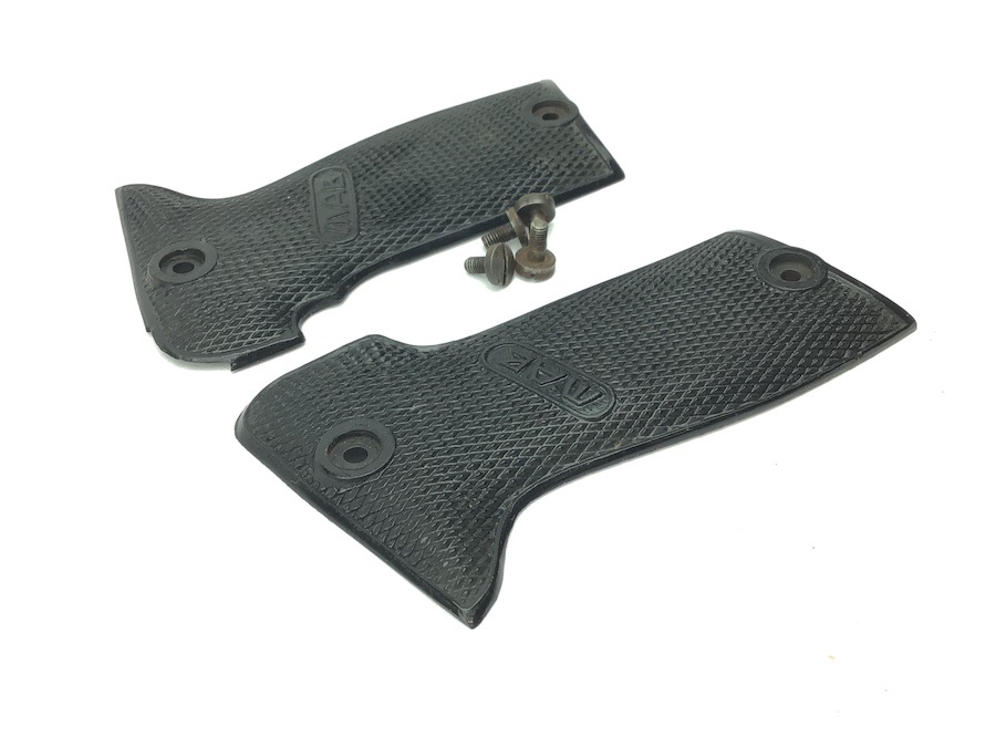 4/22/22 – Original and great condition. Grip panels & grips screws for the French MAB Model ‘D’ handgun. No cracks, chips or warpage.
