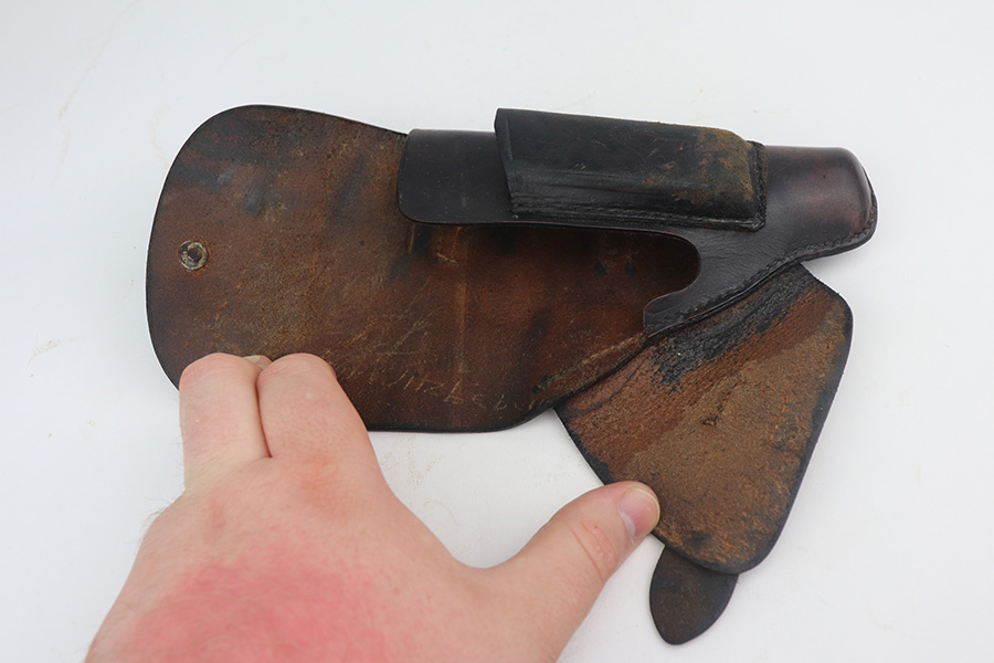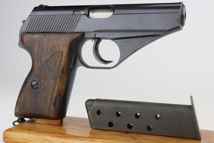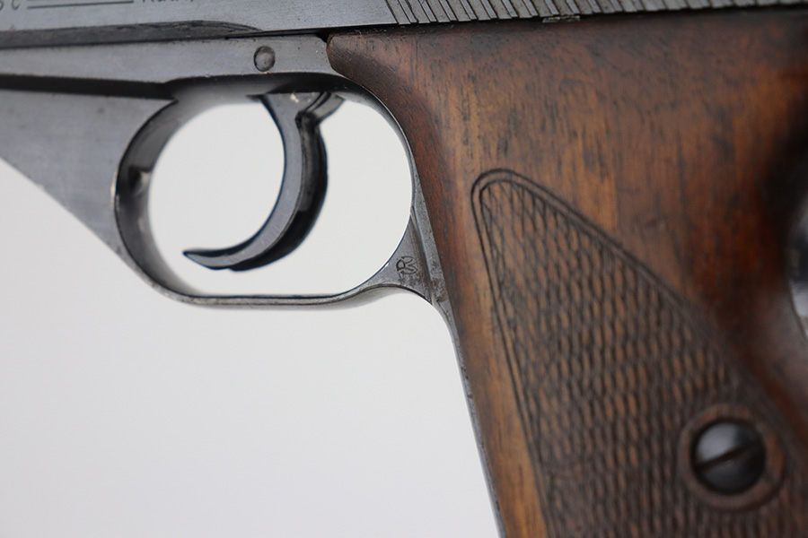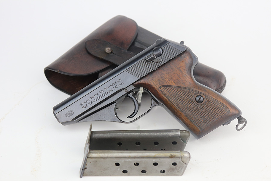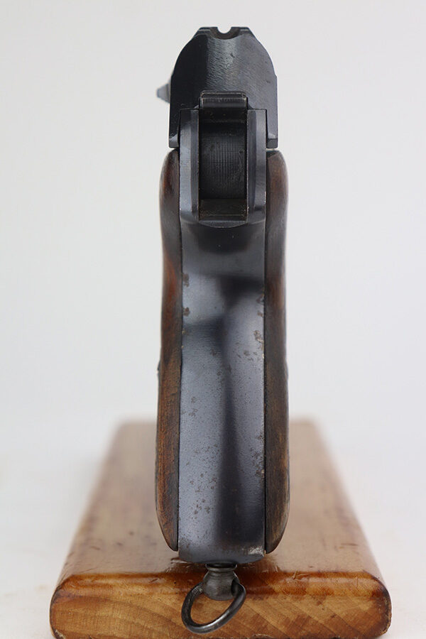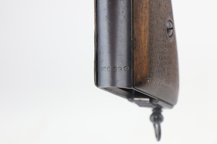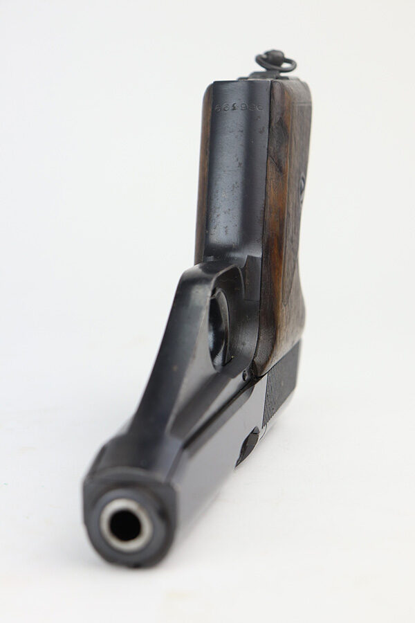 6/7/21 – This is a near-mint example of a French Mauser rig, manufactured immediately after WW2. The gun is matching and has a French proof on the trigger guard. The slide has an “Eagle N” proof, indicating they were using Nazi-era parts. There is a lanyard ring, which could mean it went to a police force – no way to know for sure. The rig comes with two-WW2 era magazines and a nice WW2-era unmarked holster. The gun has retained more than 98% of its finish. Just a hint of wear around the muzzle and freckling on the straps. Mint bore.