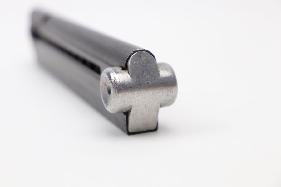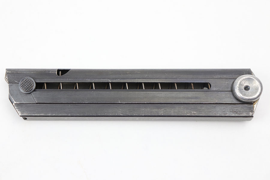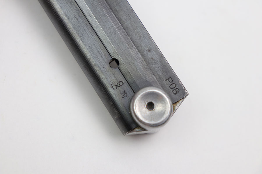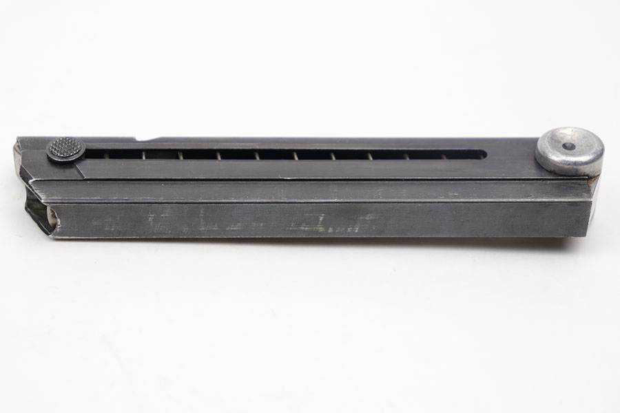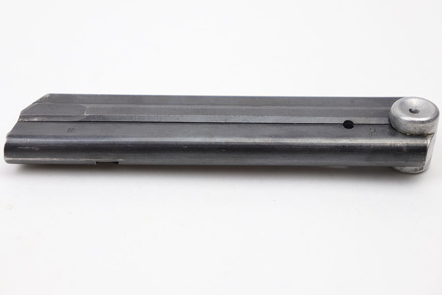 11/30/20 – This is an original Haenel Luger magazine with a blank aluminum base. Very desirable and in excellent condition. The tube is fxo stamped with two eagle/37 proofs. Strong and fully functional spring. No rust or pitting.