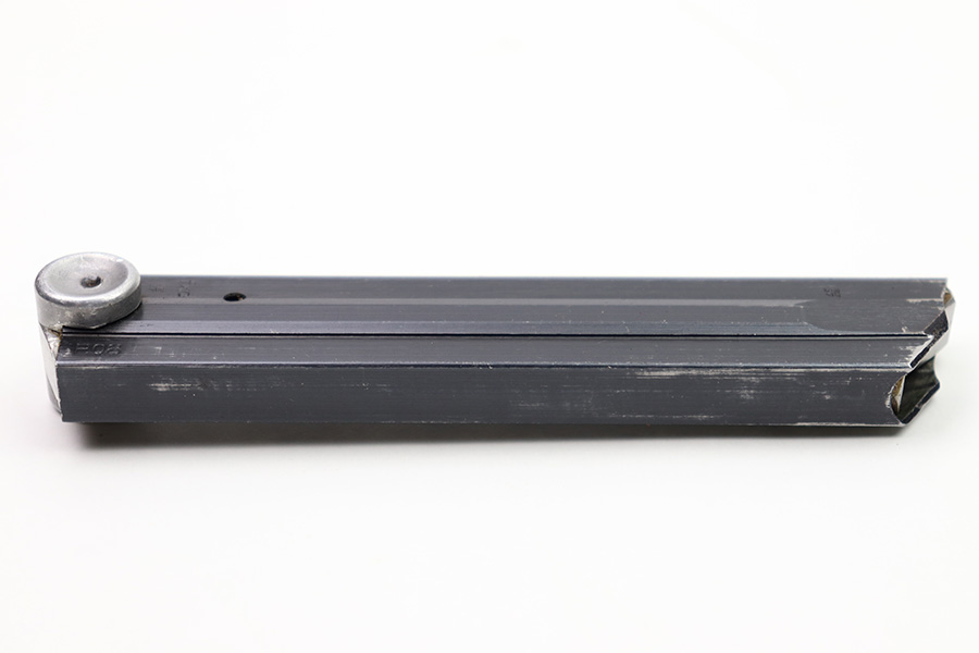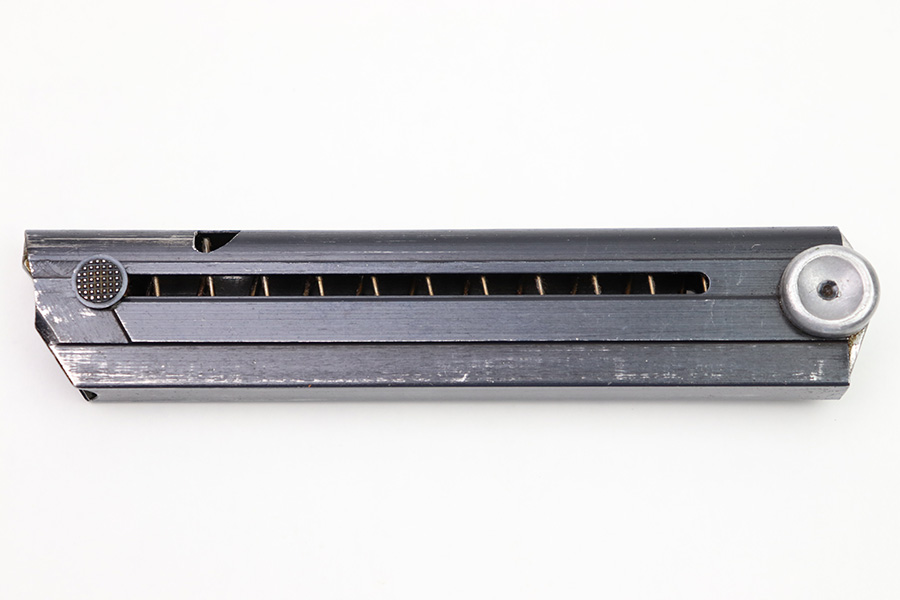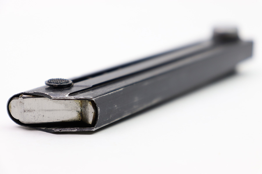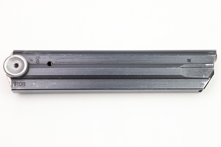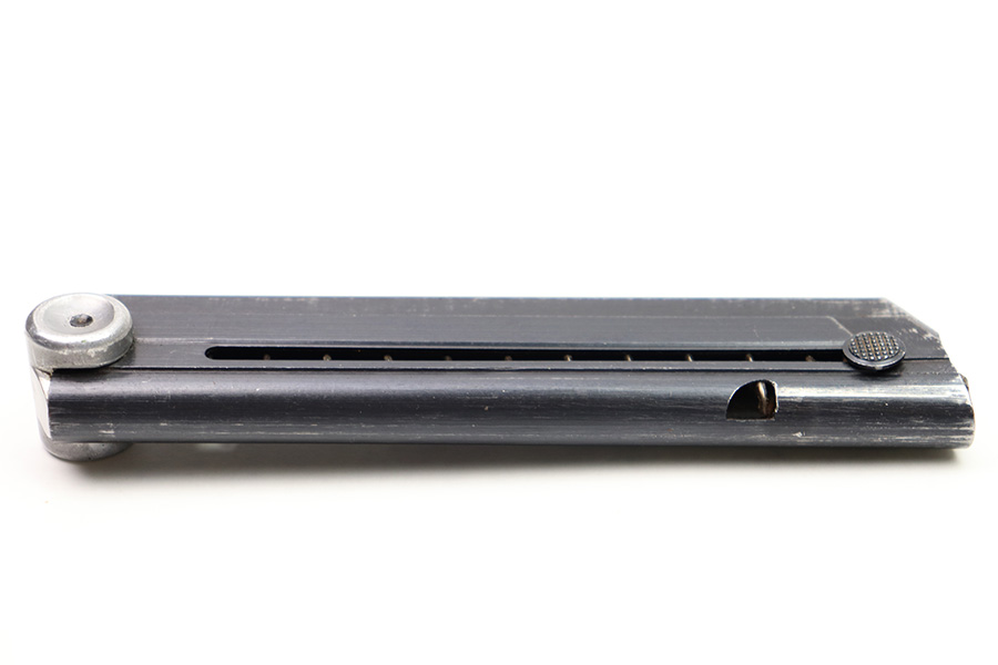 9/1/22 – This is an original Luger magazine made by Haenel during WW2. The magazine is in excellent overall condition with a blued tube and aluminum base. The base is blank and has no evidence of grinding or buffing. The tube is fxo stamped with two eagle/37 proof stamps. Strong, functional spring.