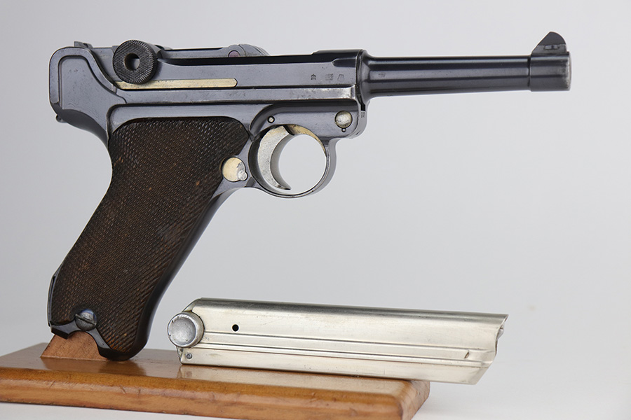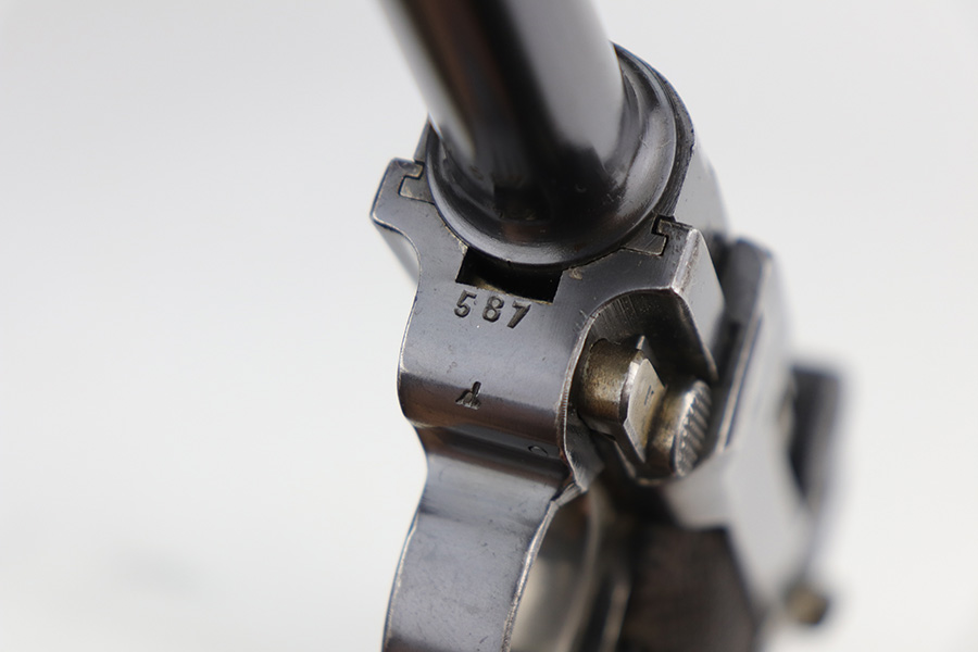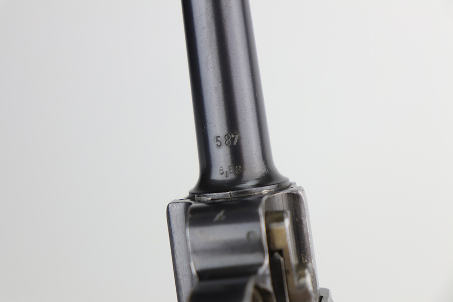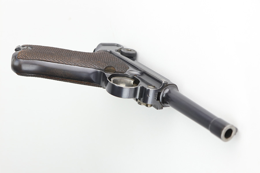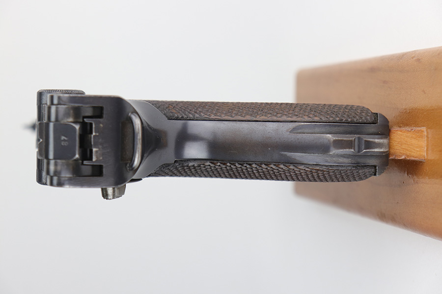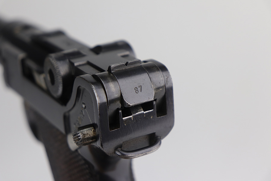 10/28/21 – This is an all matching and original Mauser Luger from 1935 with “G” date code on receiver, along with military acceptance proofs. These were made at a time when Germany was still trying to hide military arms production, so dates were coded with the letter G in 1935. It has about 92-93% of the original blue remaining, with edge wear on sideplate, left side of barrel, right side rail and bottom of front strap. Original straw rates at about 60%. Strong, shiny bore with minor signs of age and use. Nice, unmarked grips. WW2 original but mismatched magazine.
