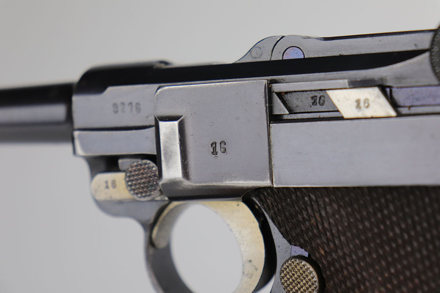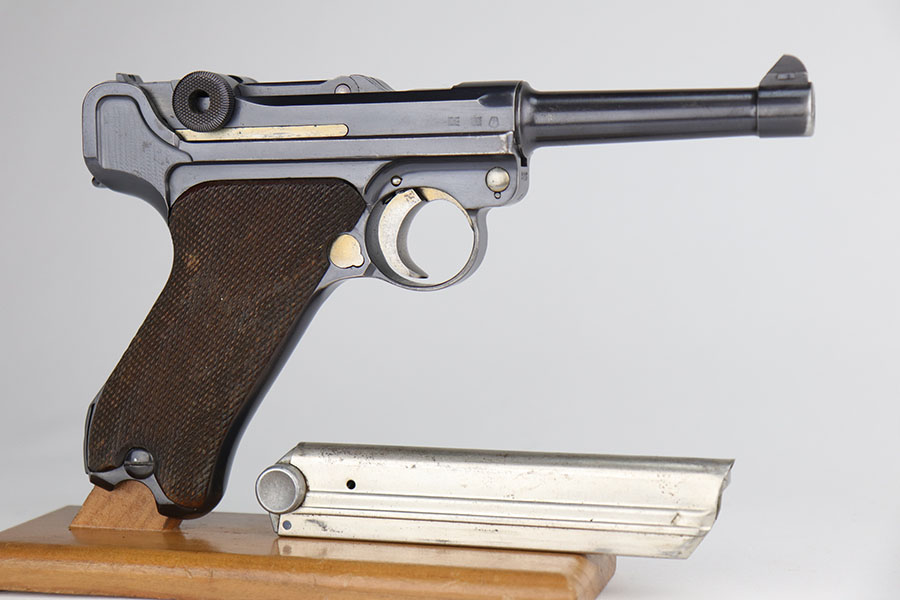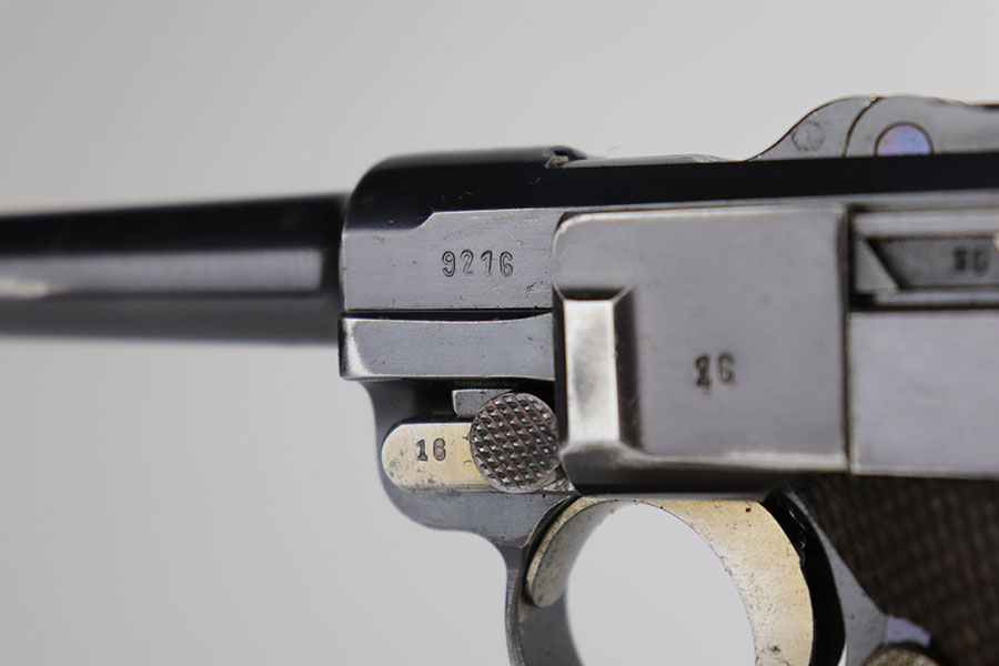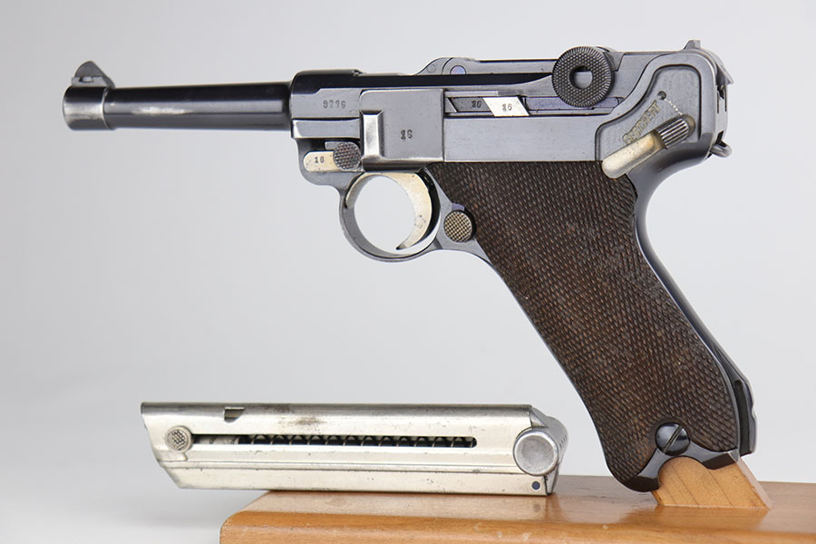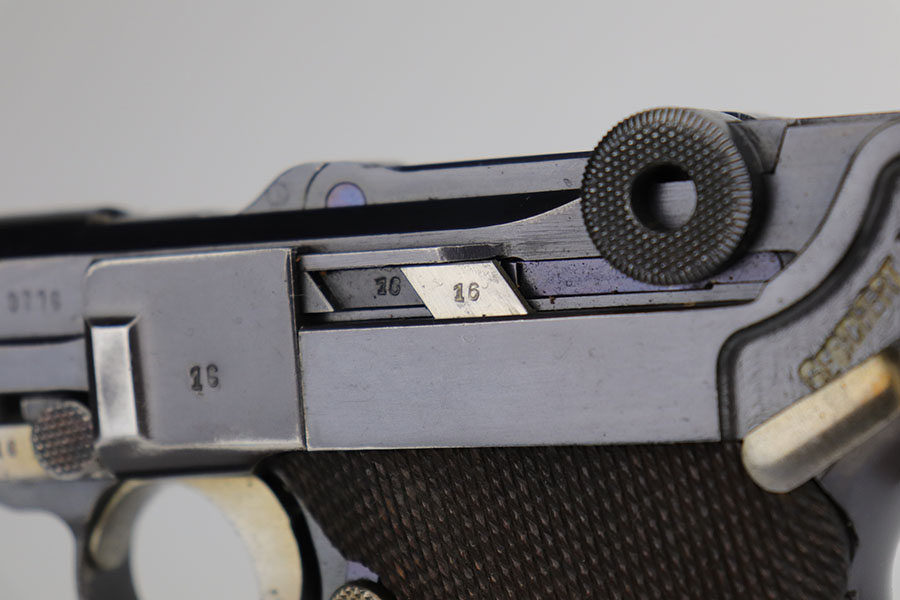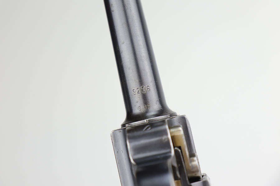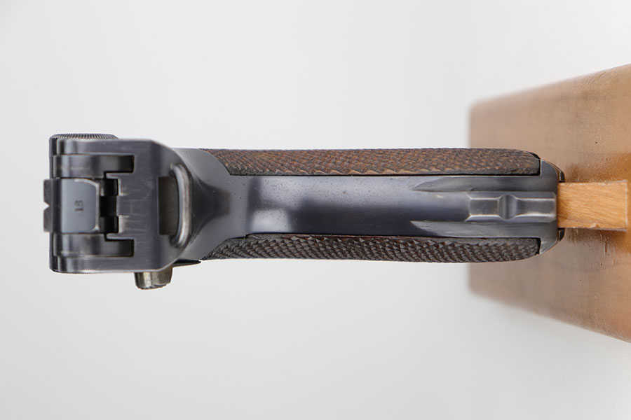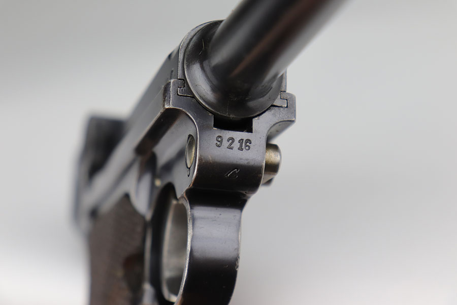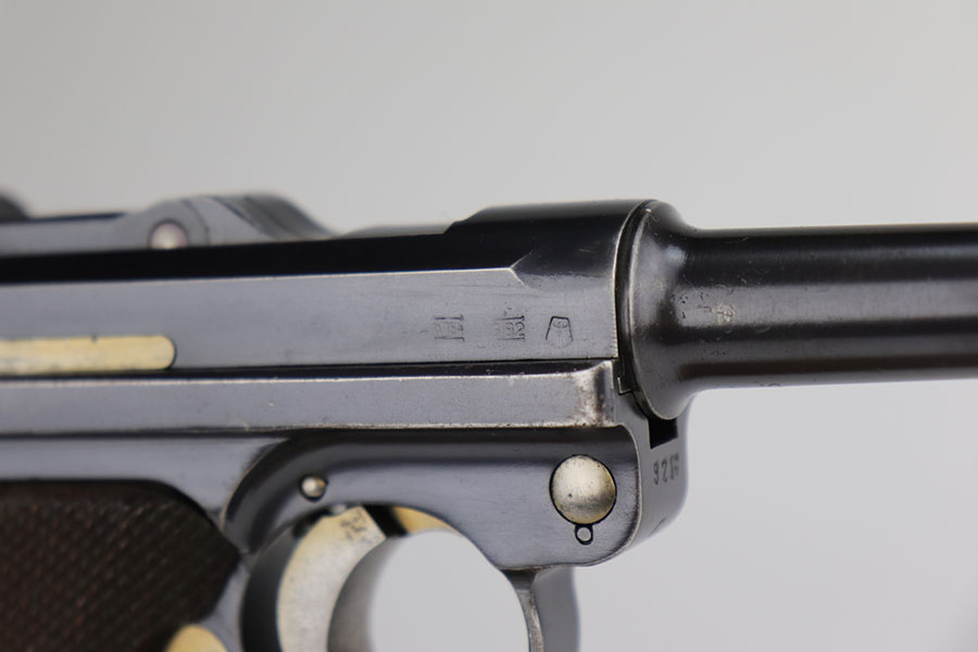 11/3/20 – This is a very nice example of a G Date Mauser Luger with original, matching magazine. It has 93-94% of the original blue with most of the wear on the sideplate and left side of barrel. Excellent, unmarked grips that have the last name ‘Bonneville’ written lightly inside with pencil. Strong, shiny bore.