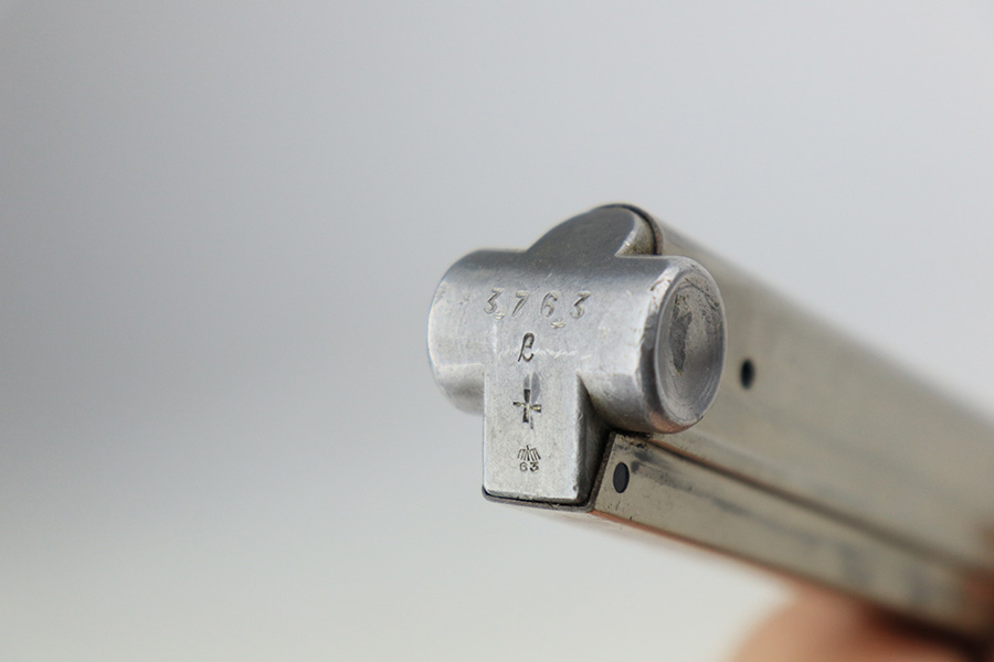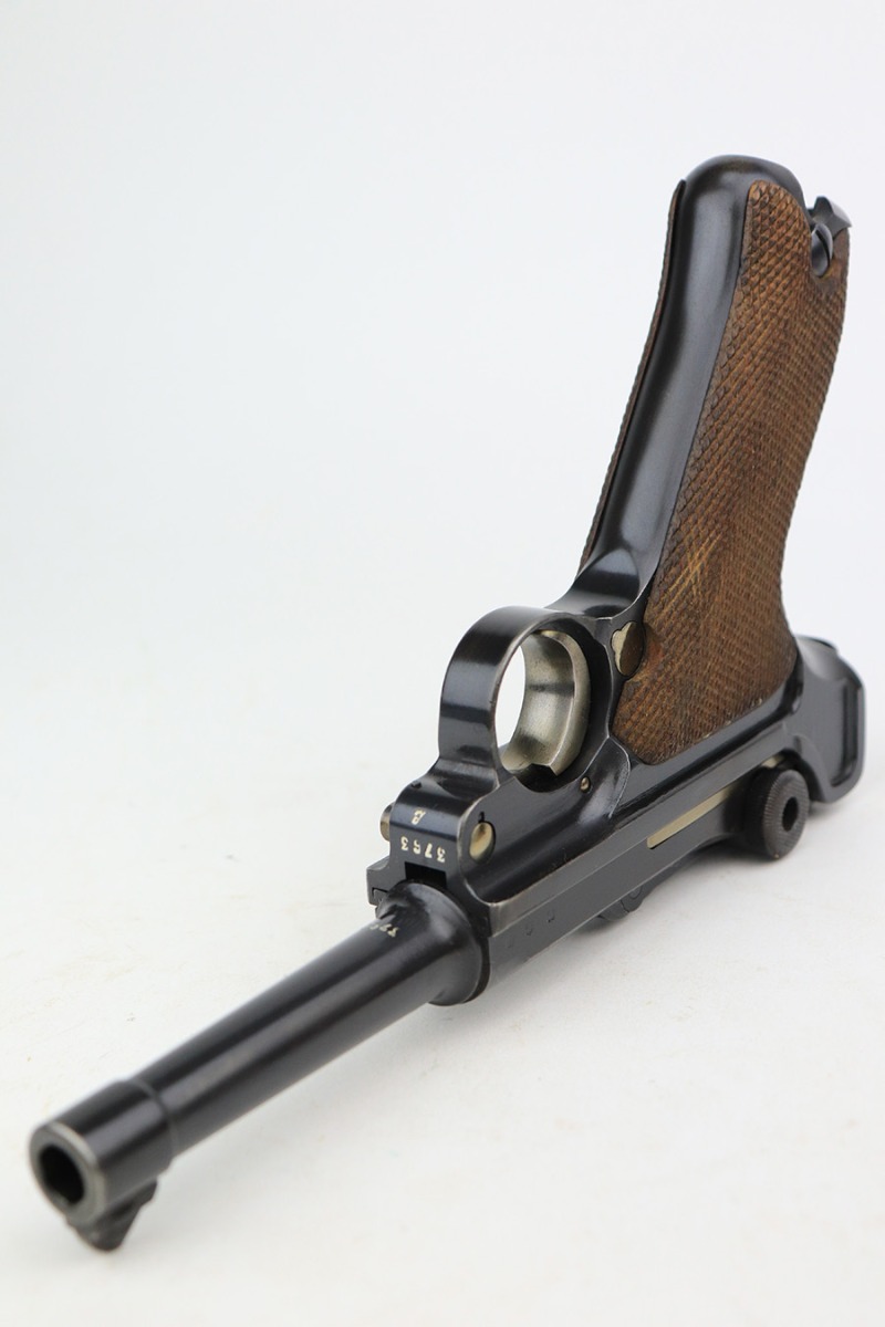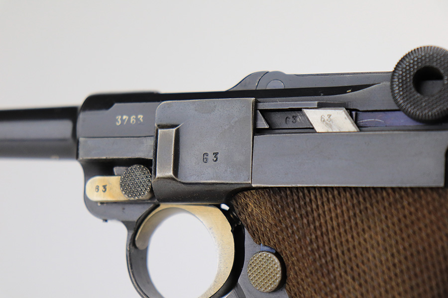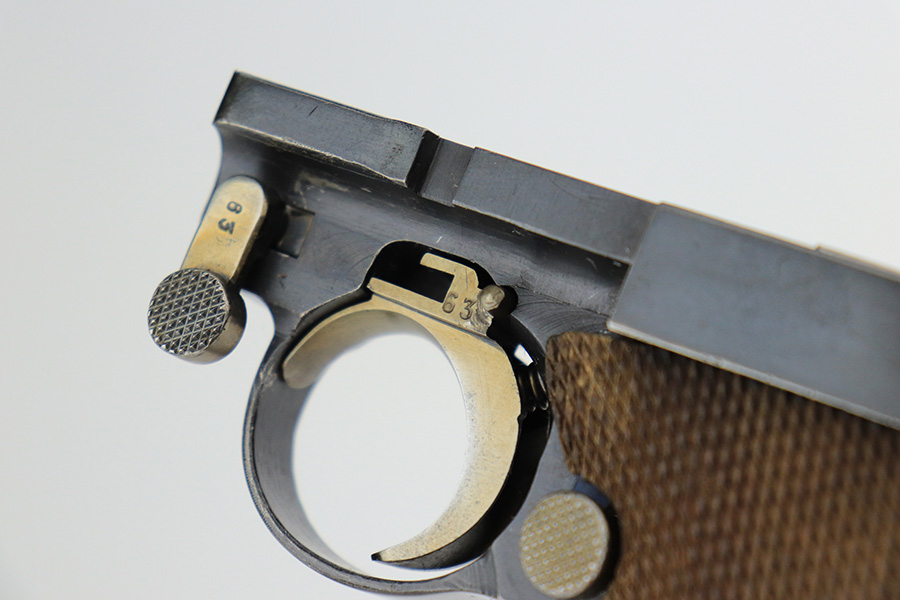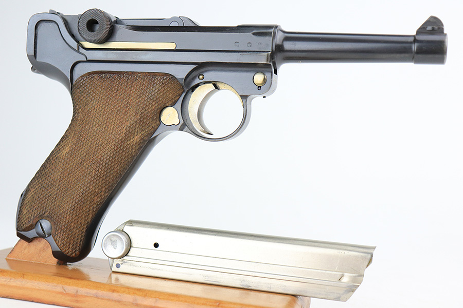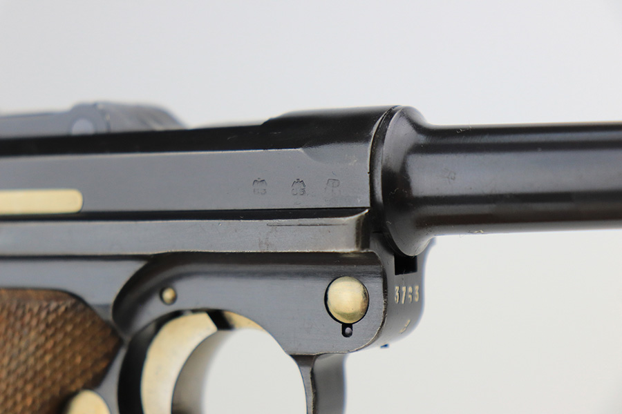 6/7/22 – This is a beautiful example of a matching and original G Date Mauser Luger with one of the original magazines. It has about 97-98% of the original blue with no major finish loss to point out, just a little on the sideplate and muzzle. Excellent bore, just a hint of frost. Sharply checkered, unmarked grips. Factory numbered matching magazine.