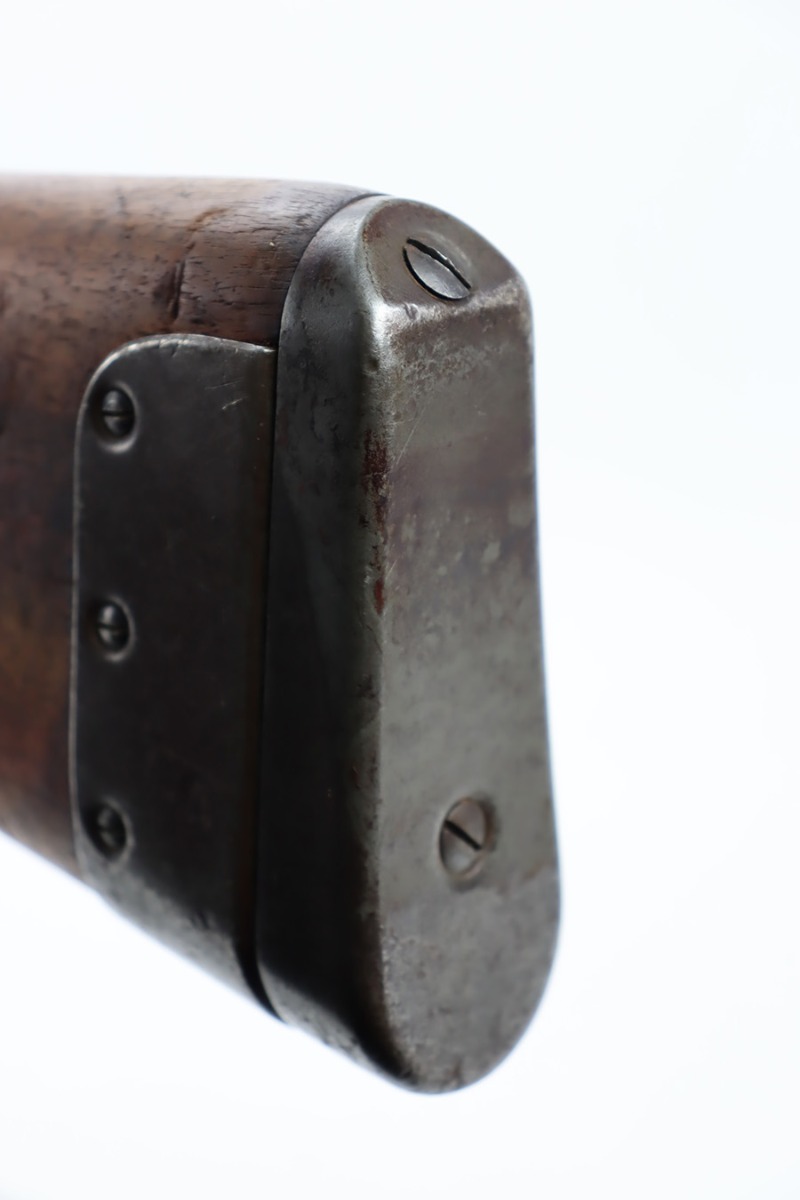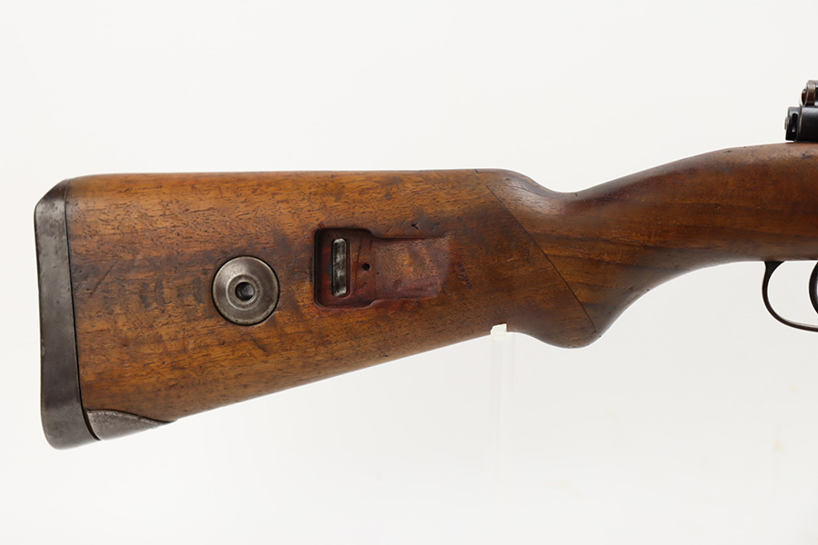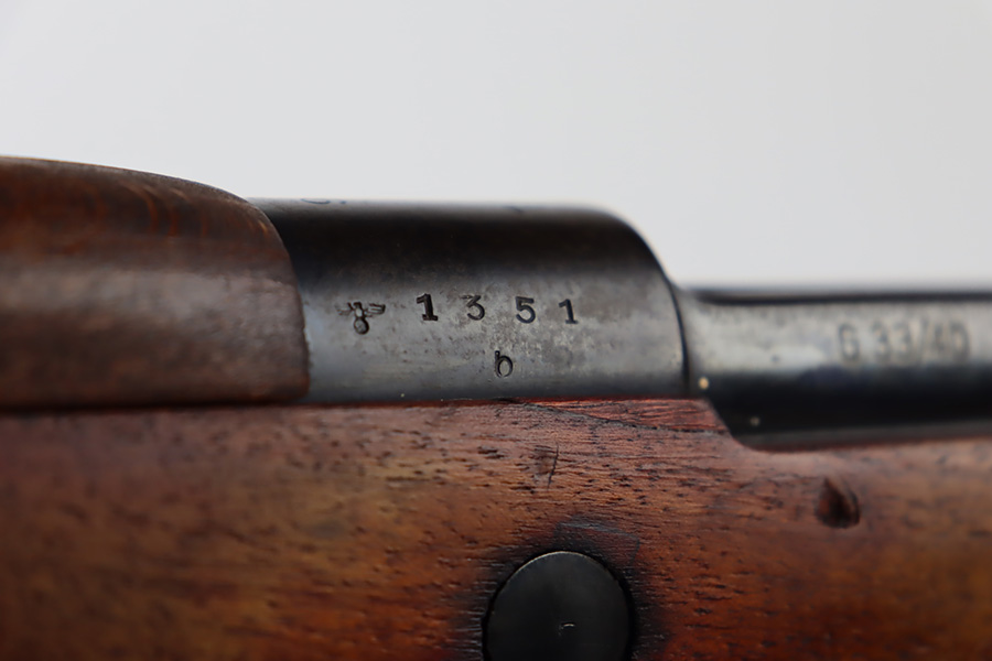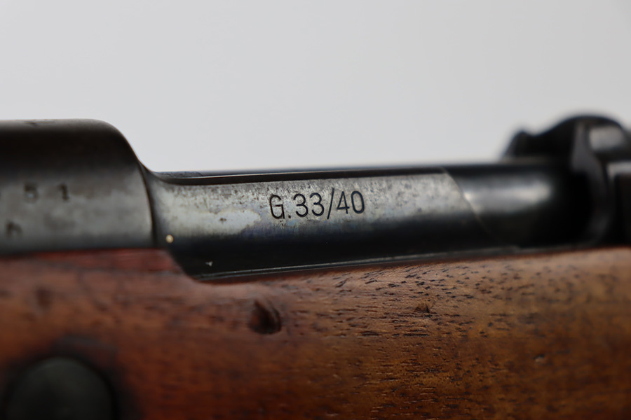 10/30/23 – Up for sale is a Czech made G33/40 issued to the German in 1940. Before the annexation of Czechoslovakia, the Czech government issued the Vz.33 carbine to their Border Guards and Gendemerie. After Germany’s takeover, these handy carbines received a steel reinforcement plate to the stock and were issued as mountain carbines. This example has gone through some rebuilds as seen by the stock. The stock has 2 splices on the front half and rear section of the stock. The barrel bands and the bolt look to have been refinished. The bolt is matching to the receiver. There is a number stamped on the rear splice of the stock that does not correlate with the serial number. The bore is frosted over with a hint of brightness under it and has good rifling.