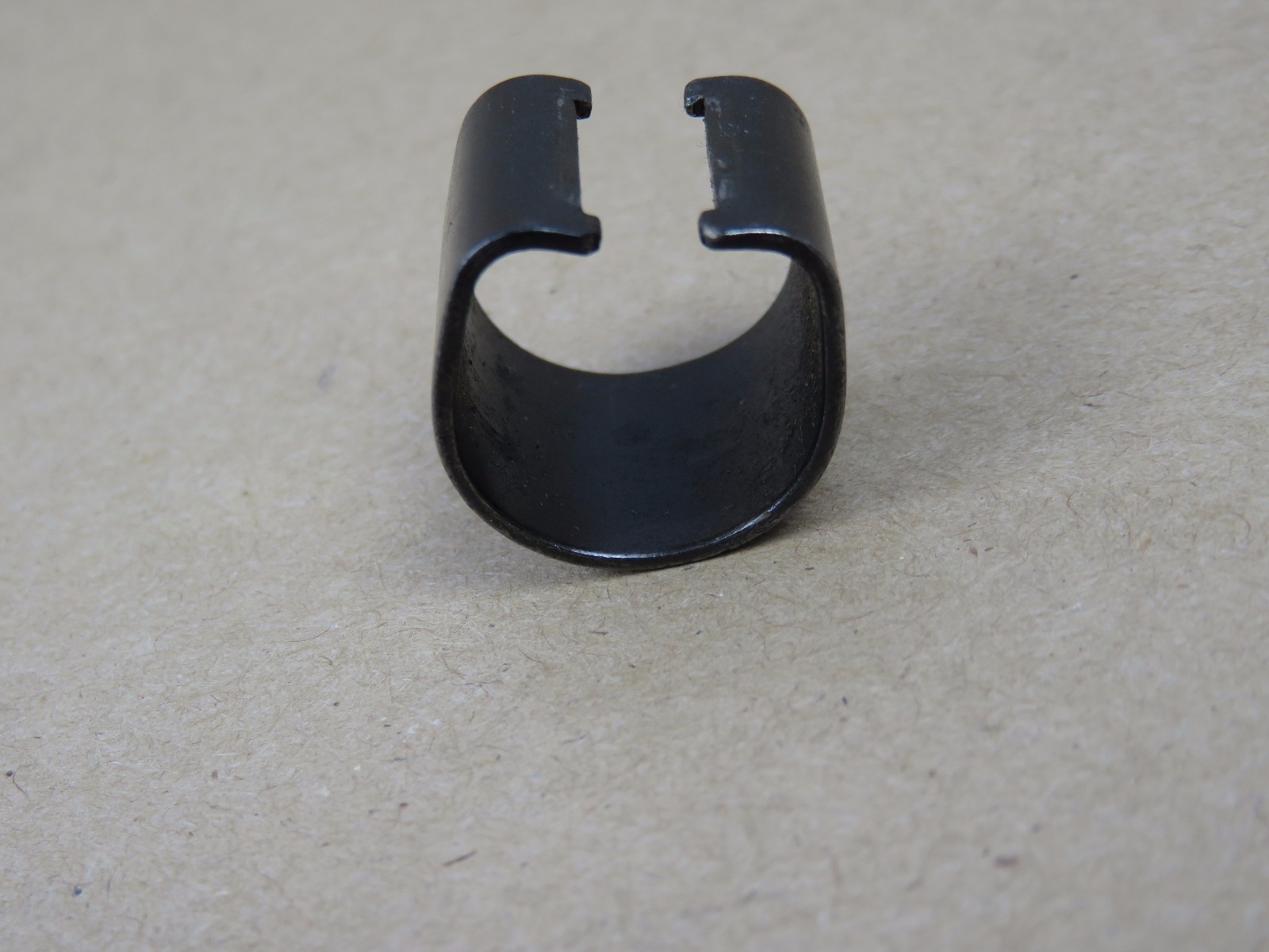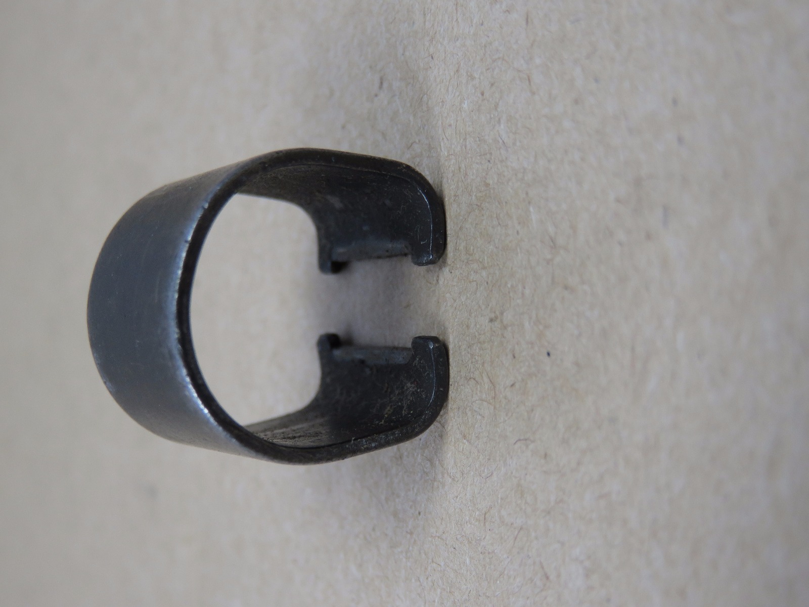 6/1/17 – This is an original WW2 production, rare variation front sight dust cover/hood. The sight cap is specifically for the G33/40 carbine model and not the K98. Notice the edging on the base of the hood. Guaranteed original and authentic and in excellent condition.