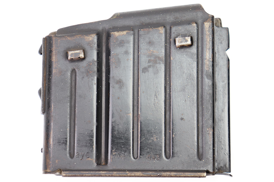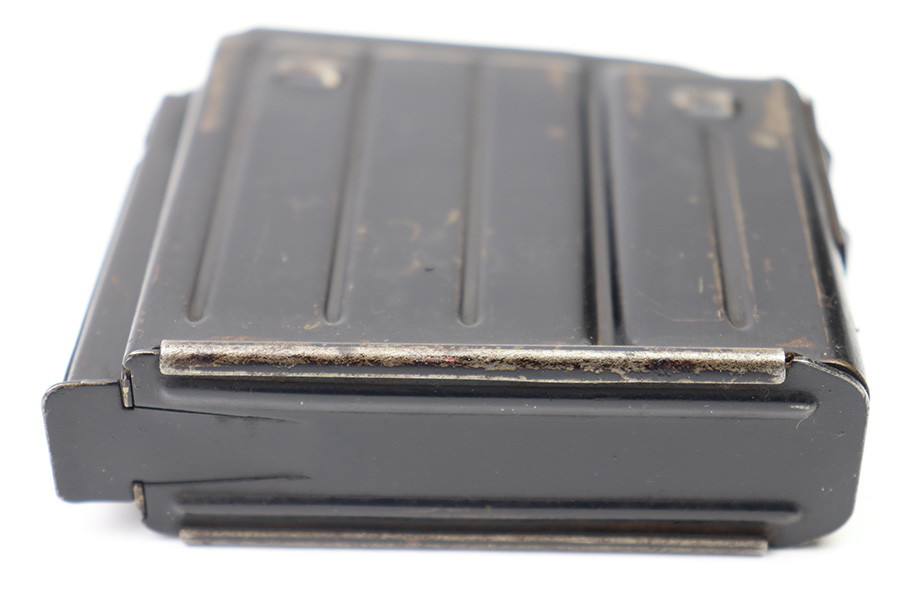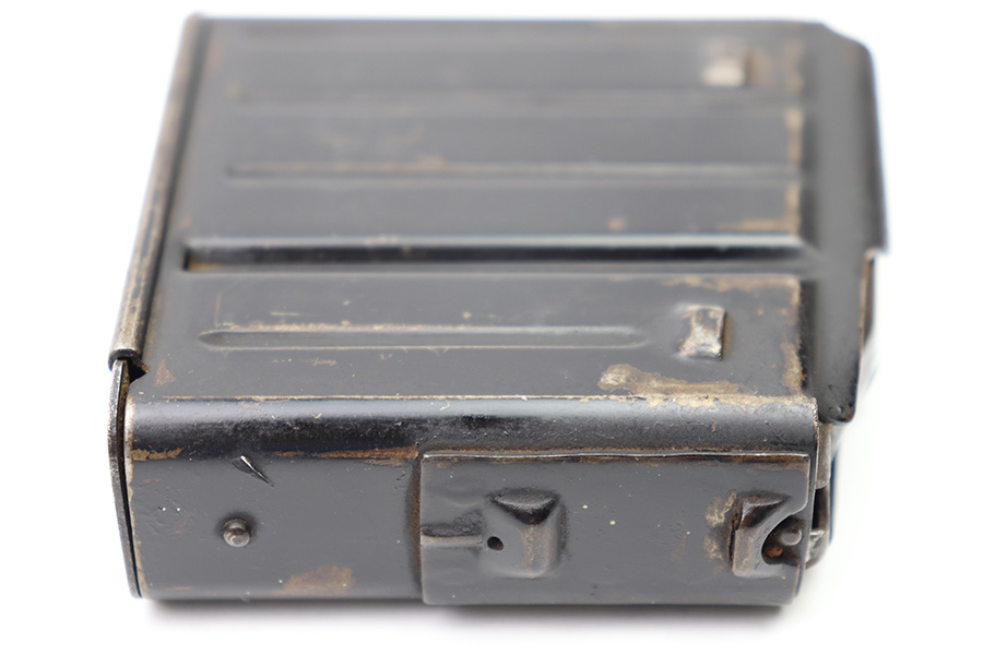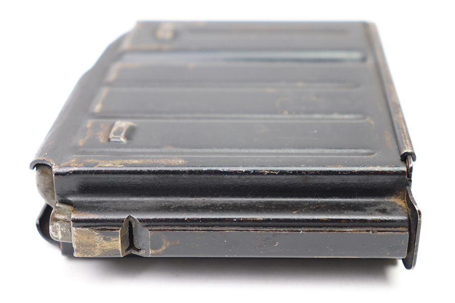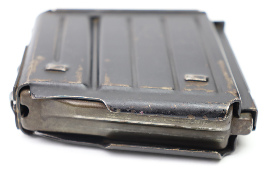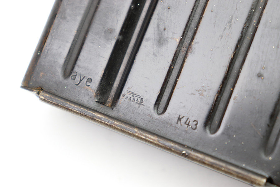 10/14/22 – This is an original WW2 K43 / G43 magazine. The magazine is in great overall condition with some mild edge wear and finish loss as well as some natural patina from aging. The spring is strong and functional. The left side of the magazine is maker stamped, waffen proofed, and K43 stamped.