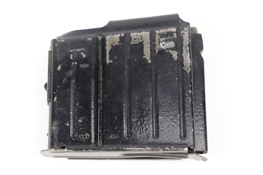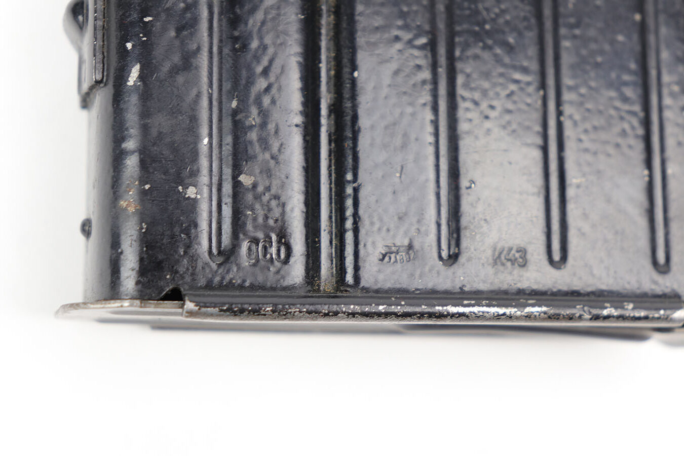 10/15/20 – This is an original WW2 G43 / K43 magazine. Fully functional spring. “GCB” maker stamped with two waffen stamps on one side. Appears to have been repainted. Priced accordingly.