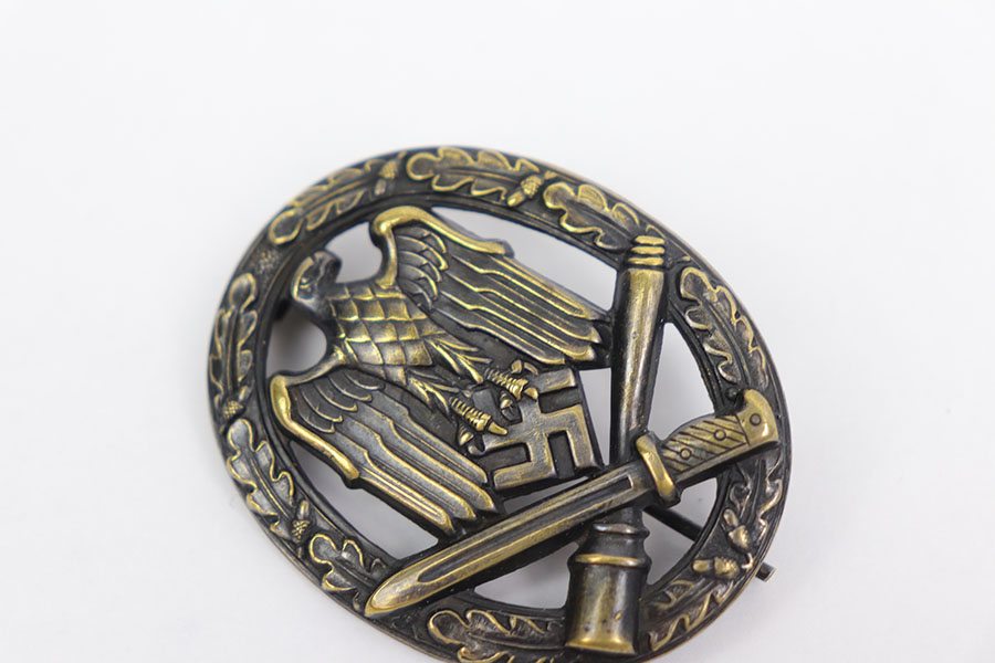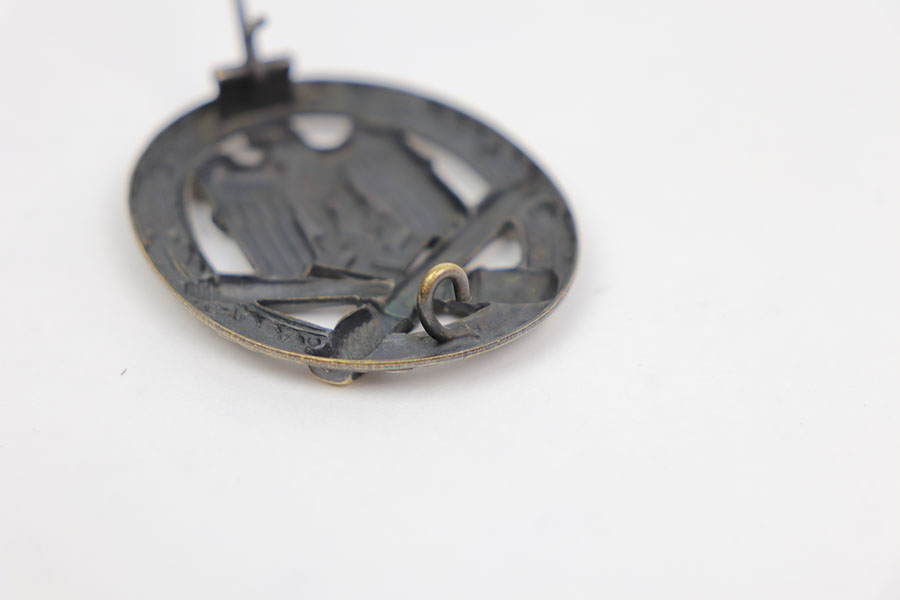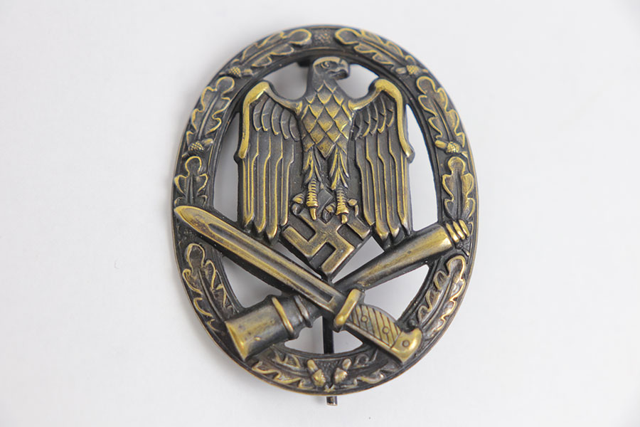 12/30/20 – This is a Nazi General Assault Badge from WW2. Original and in great condition with some light surface patina. No maker stamp on the reverse. Original pin is in tact.